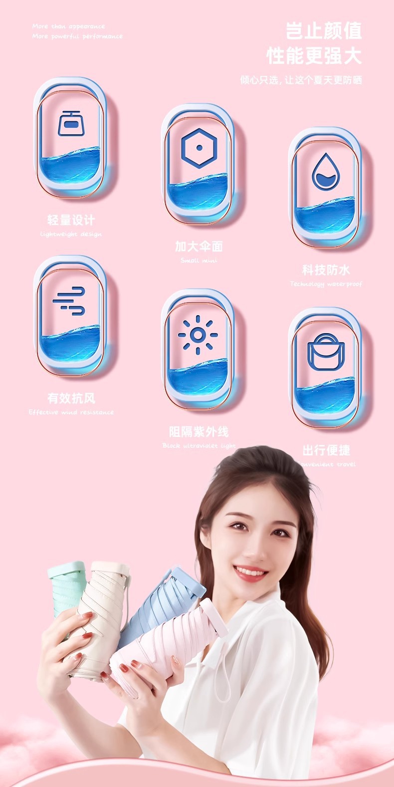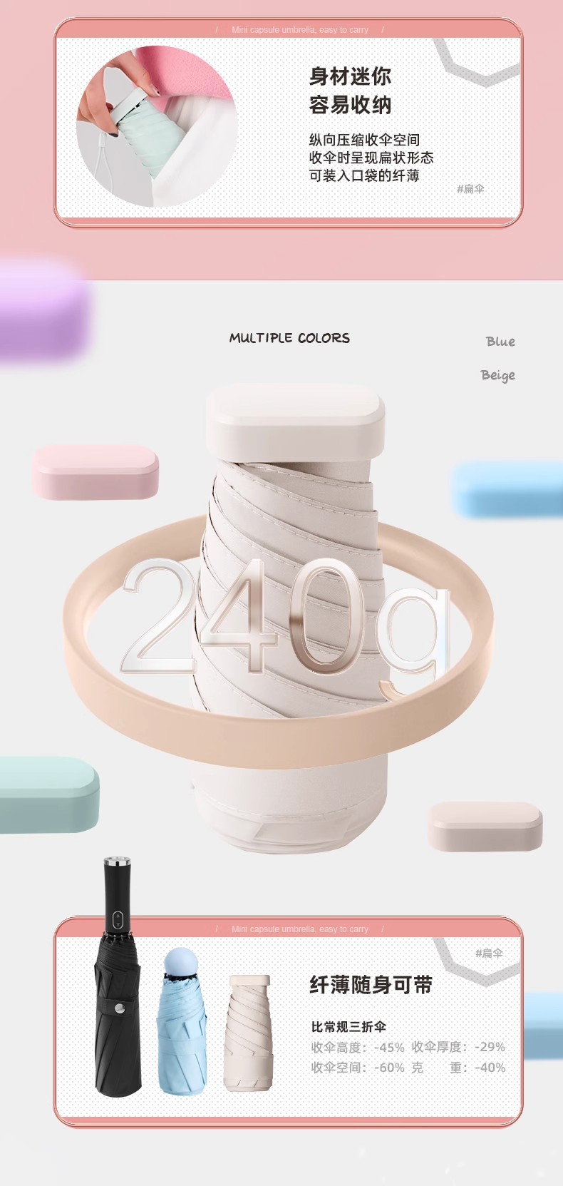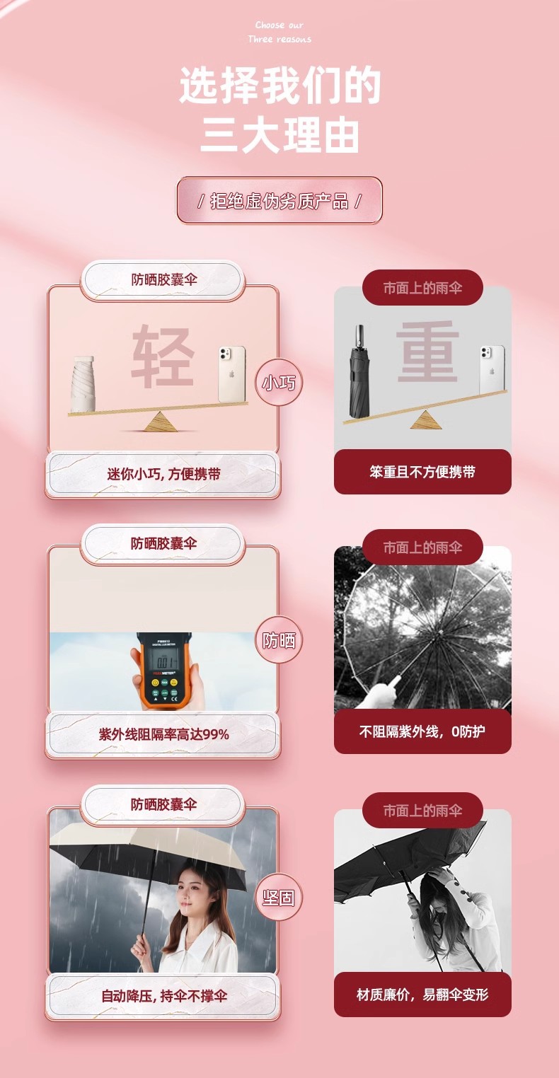 【福利❗️超轻超mini晴雨伞】科学防水涂层,荷叶拒水,拒水伞面,呵护你雨下安然!六折环扣太阳伞女防晒防紫外线折叠口袋伞遮阳