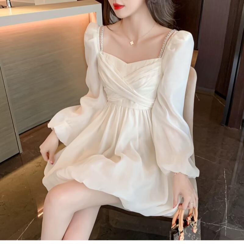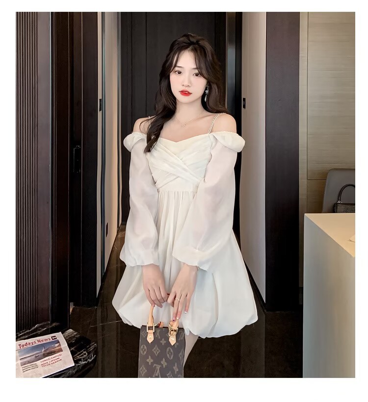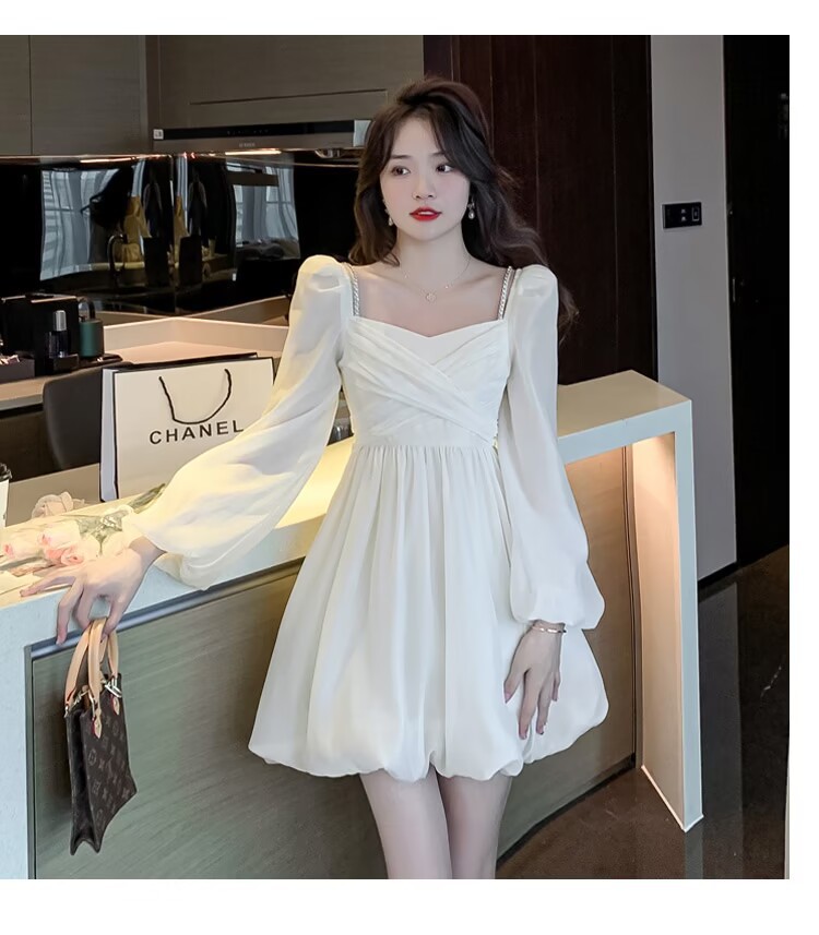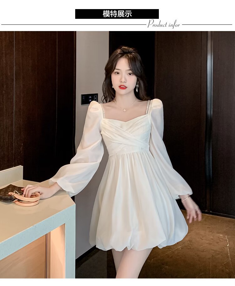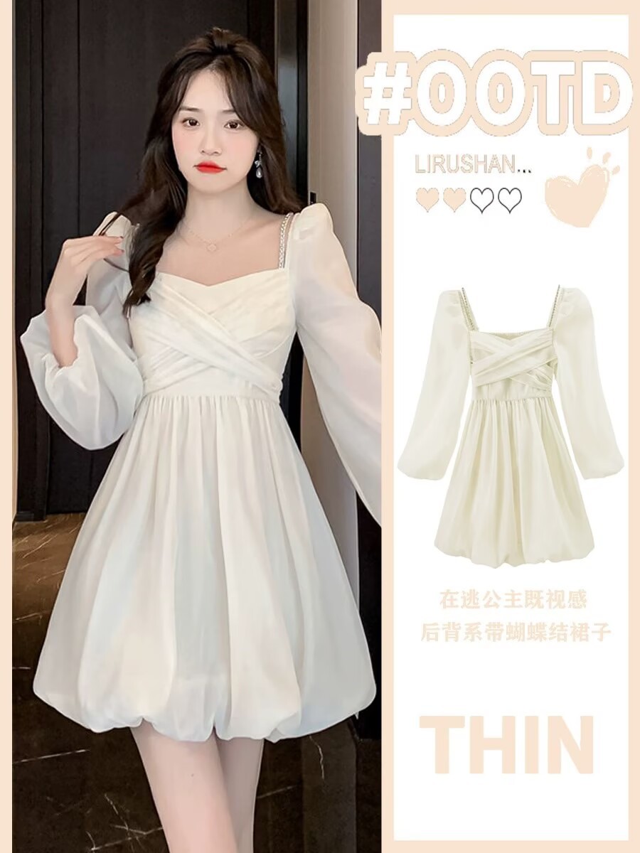 雪纺连衣裙子女春秋冬季2023年新款长袖法式内搭温柔白色