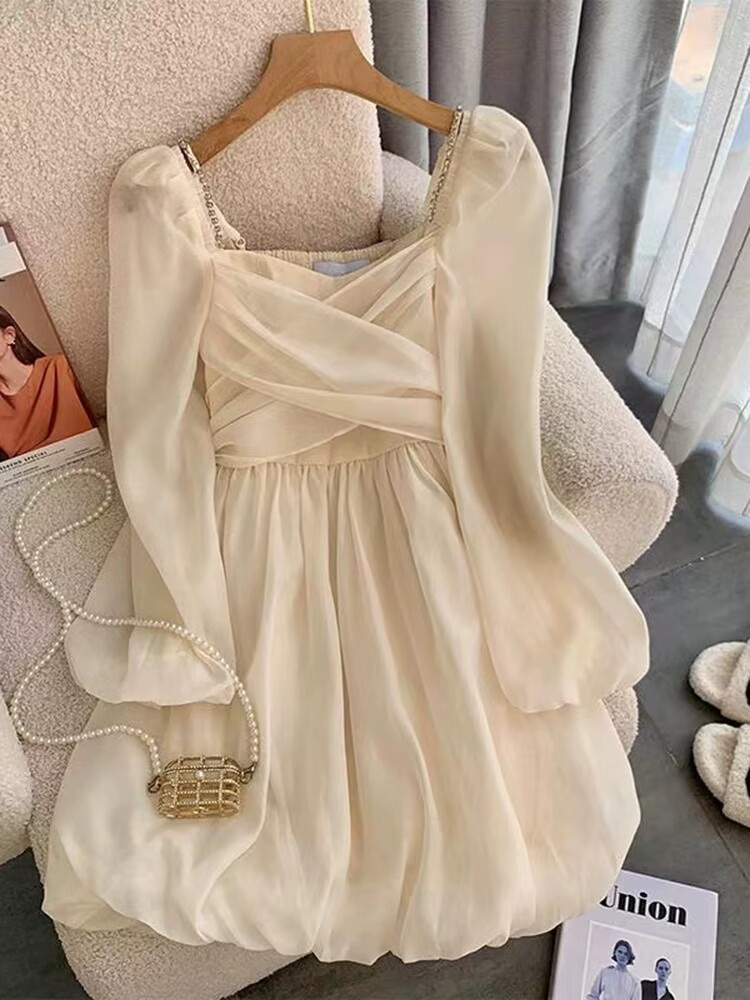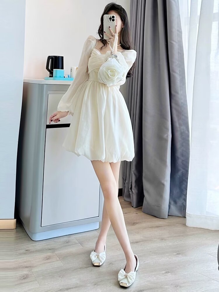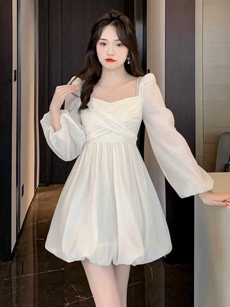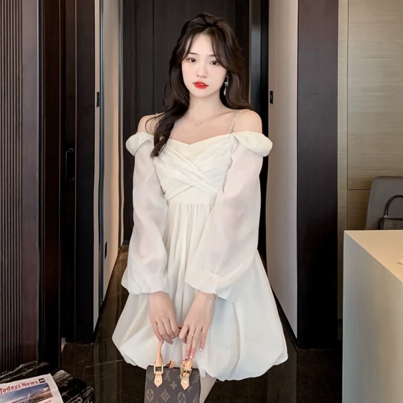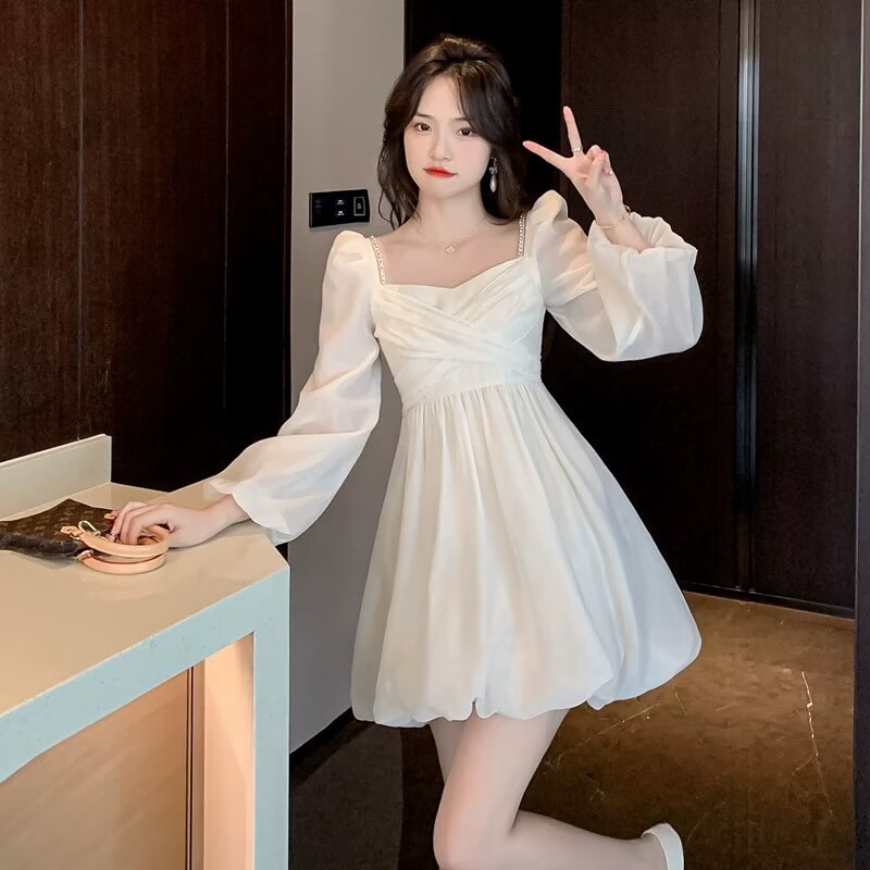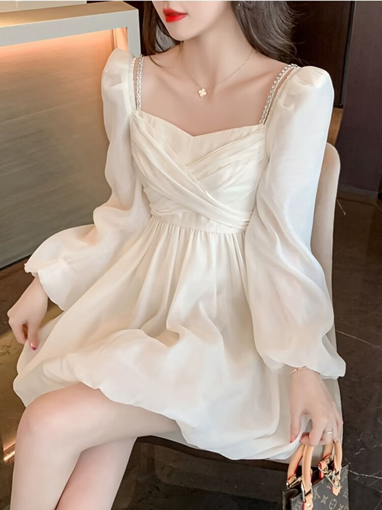 雪纺连衣裙子女春秋冬季2023年新款长袖法式内搭温柔白色