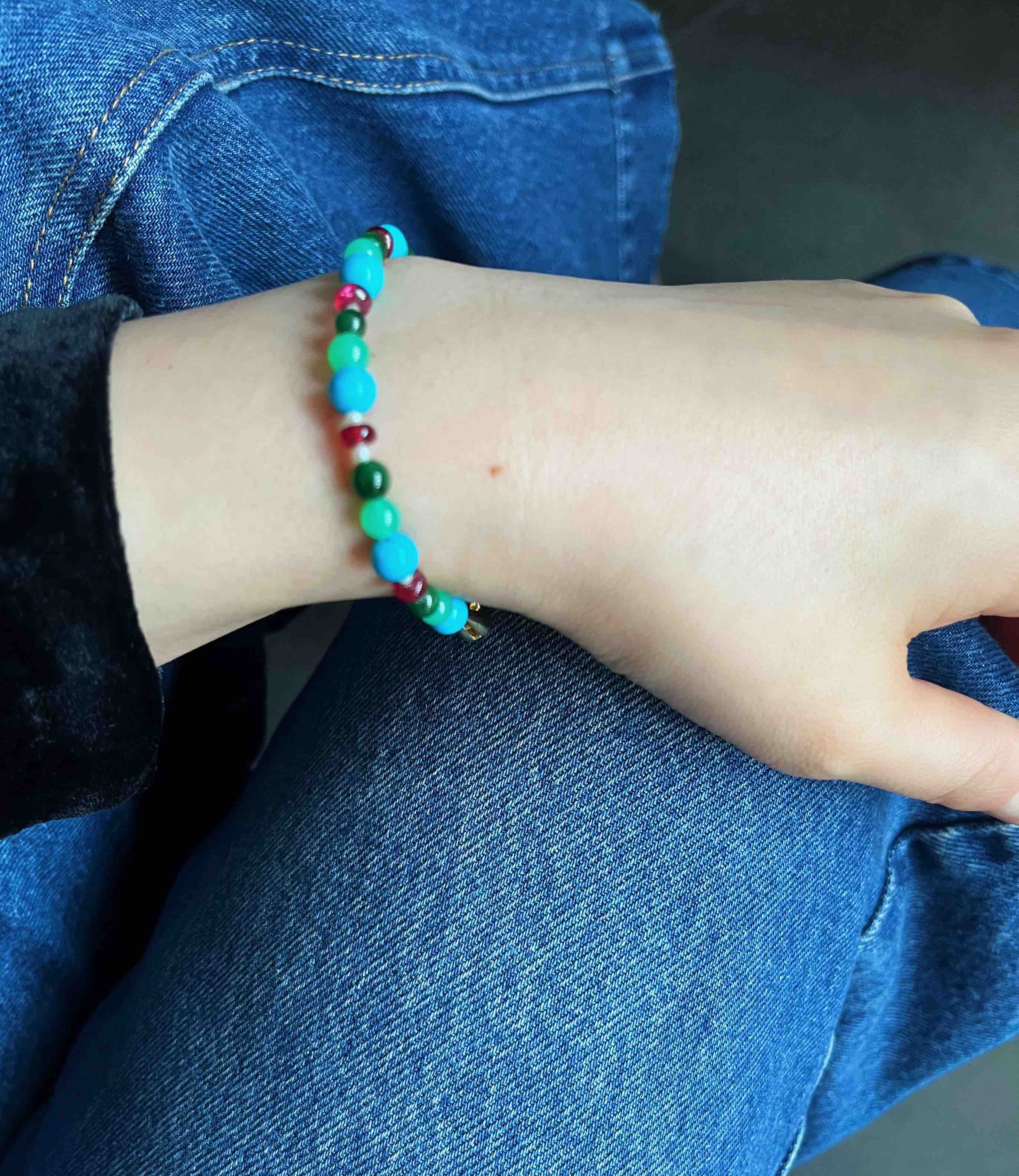 BY EVITA系列 六合同春 18K镶天然松石、翡翠、绿玉髓、尖晶石和珍珠 手链