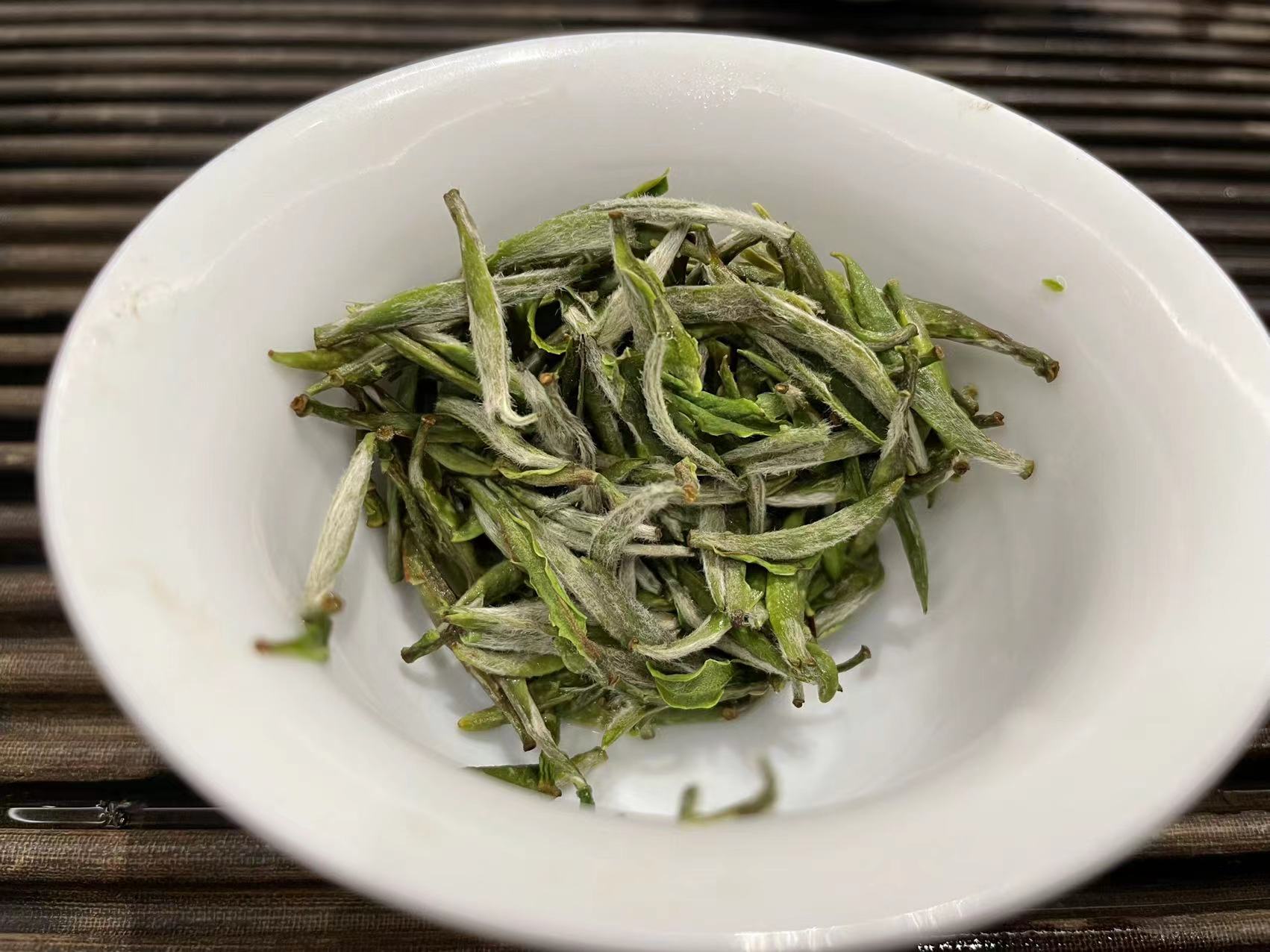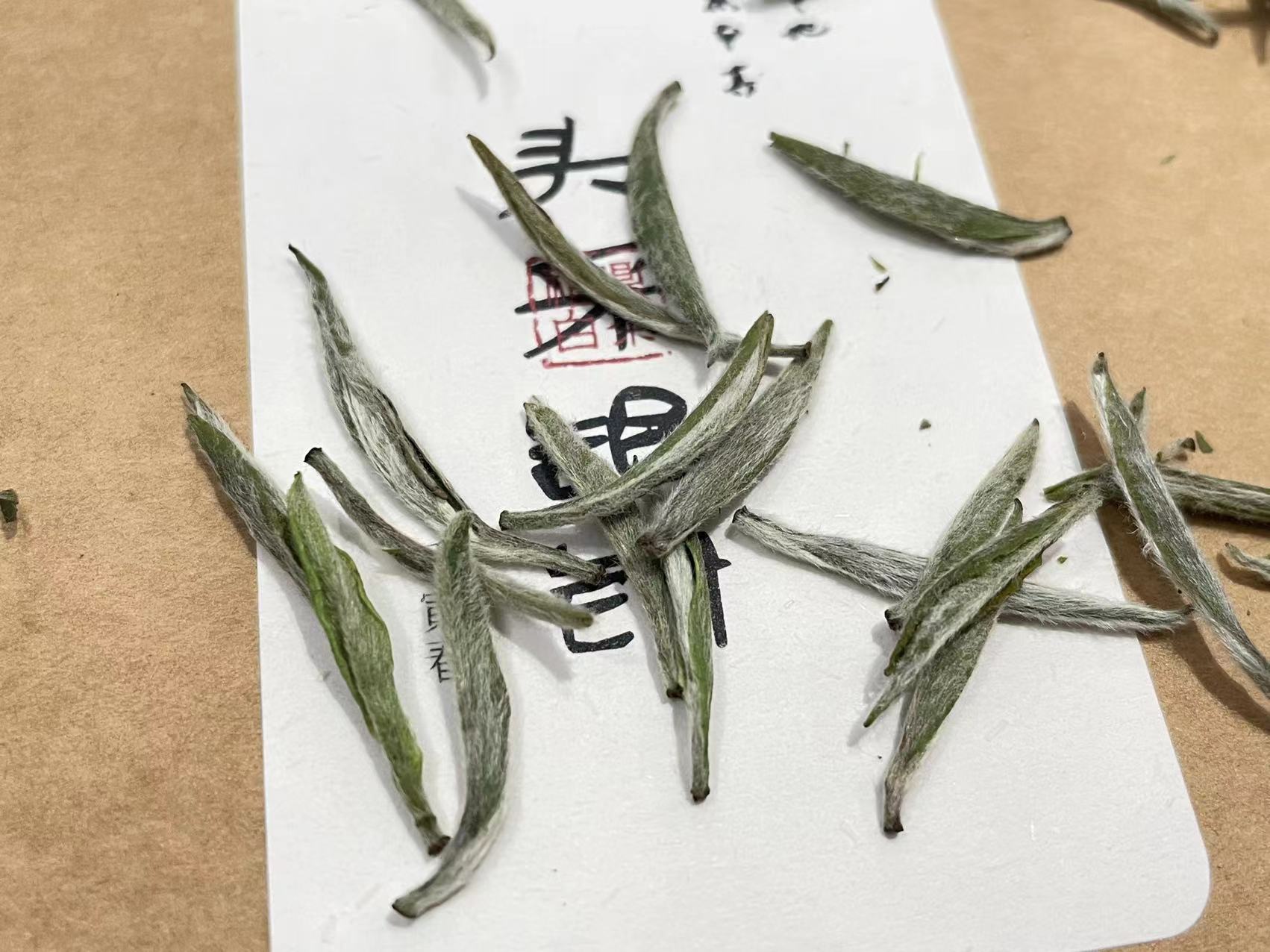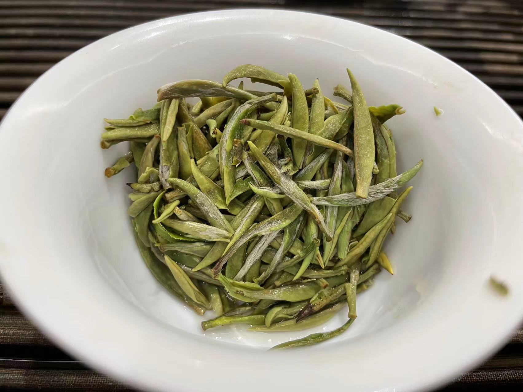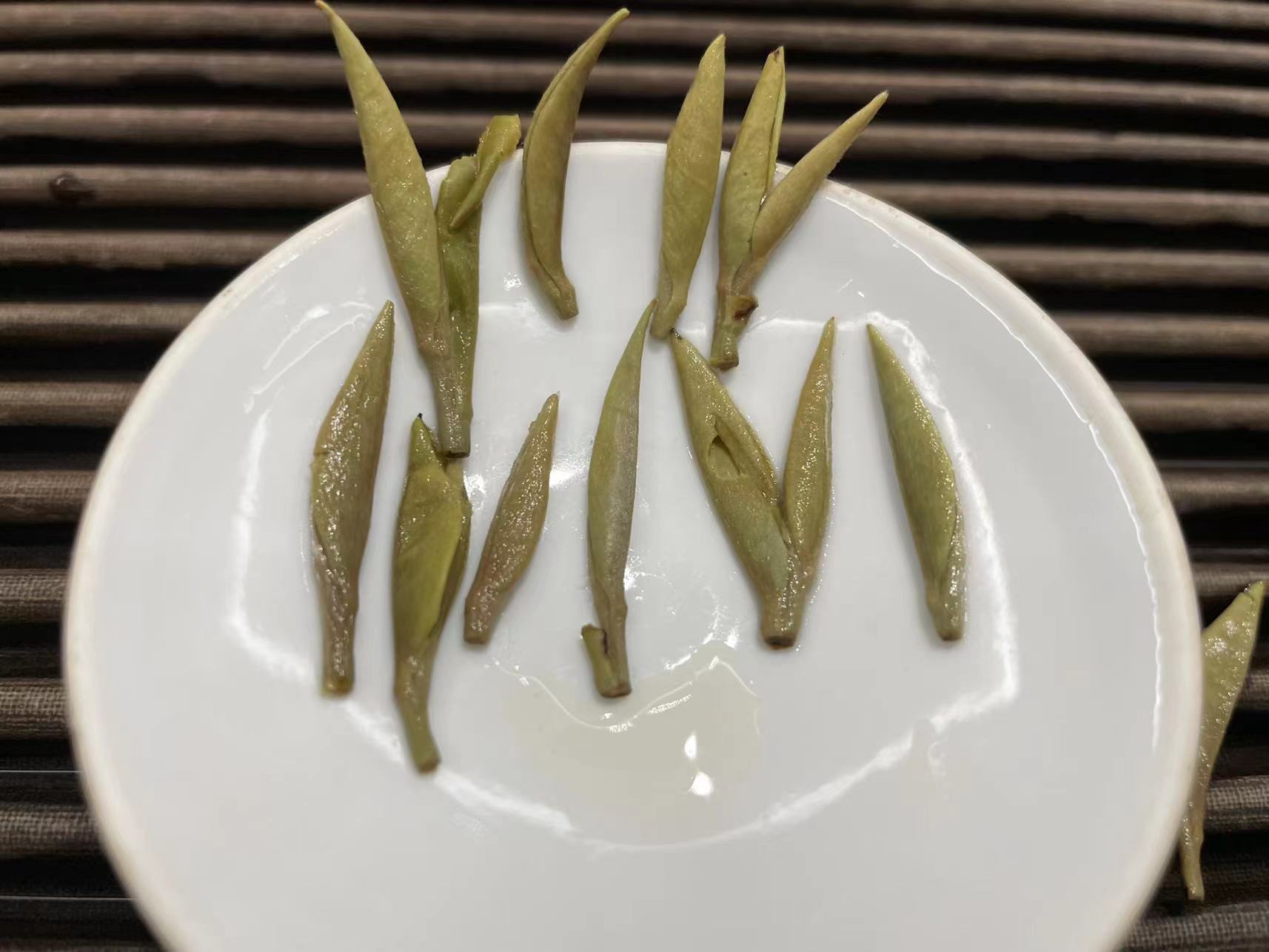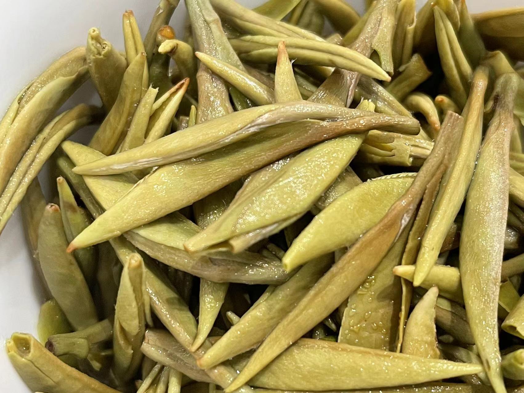 第四道,通过俯拍,我们可以清晰的看出来芽头的长短以及头采芽该有的形状。
