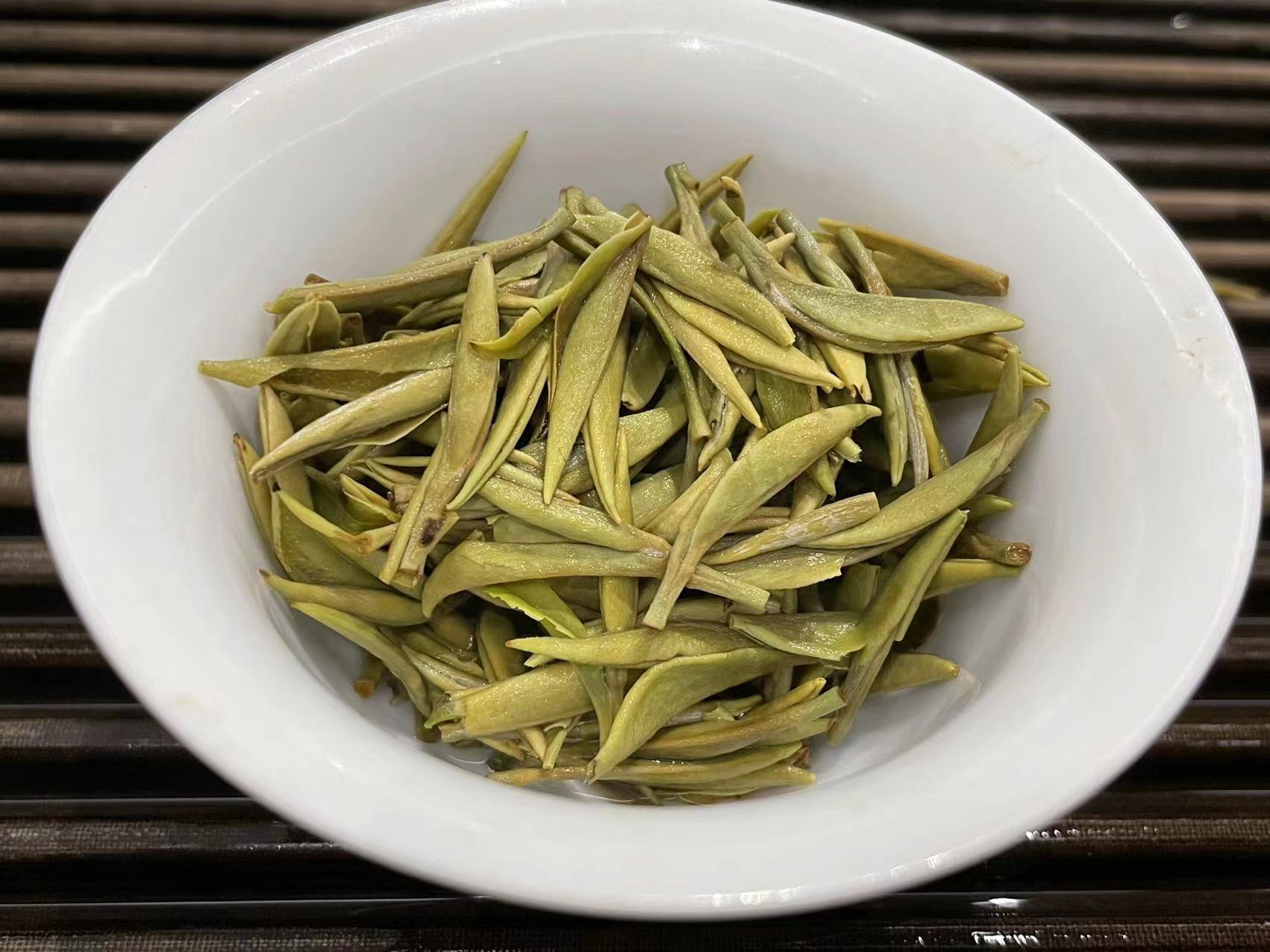 第二道:从叶底的转黄程度可以看出来,工艺把控合理,鲜叶在萎凋的时候走水顺畅。(今年由于气温低,很多人头采银针做废了)