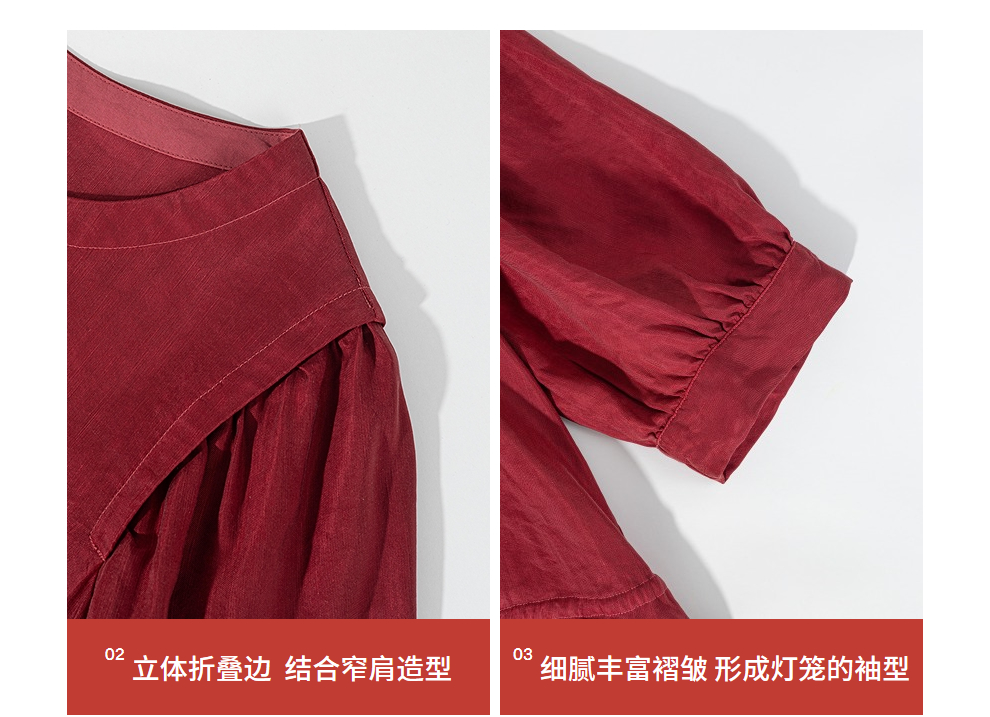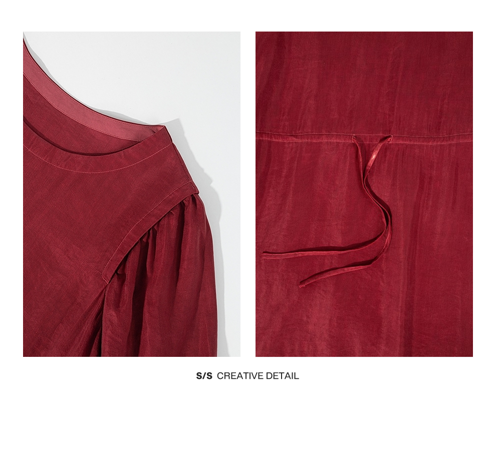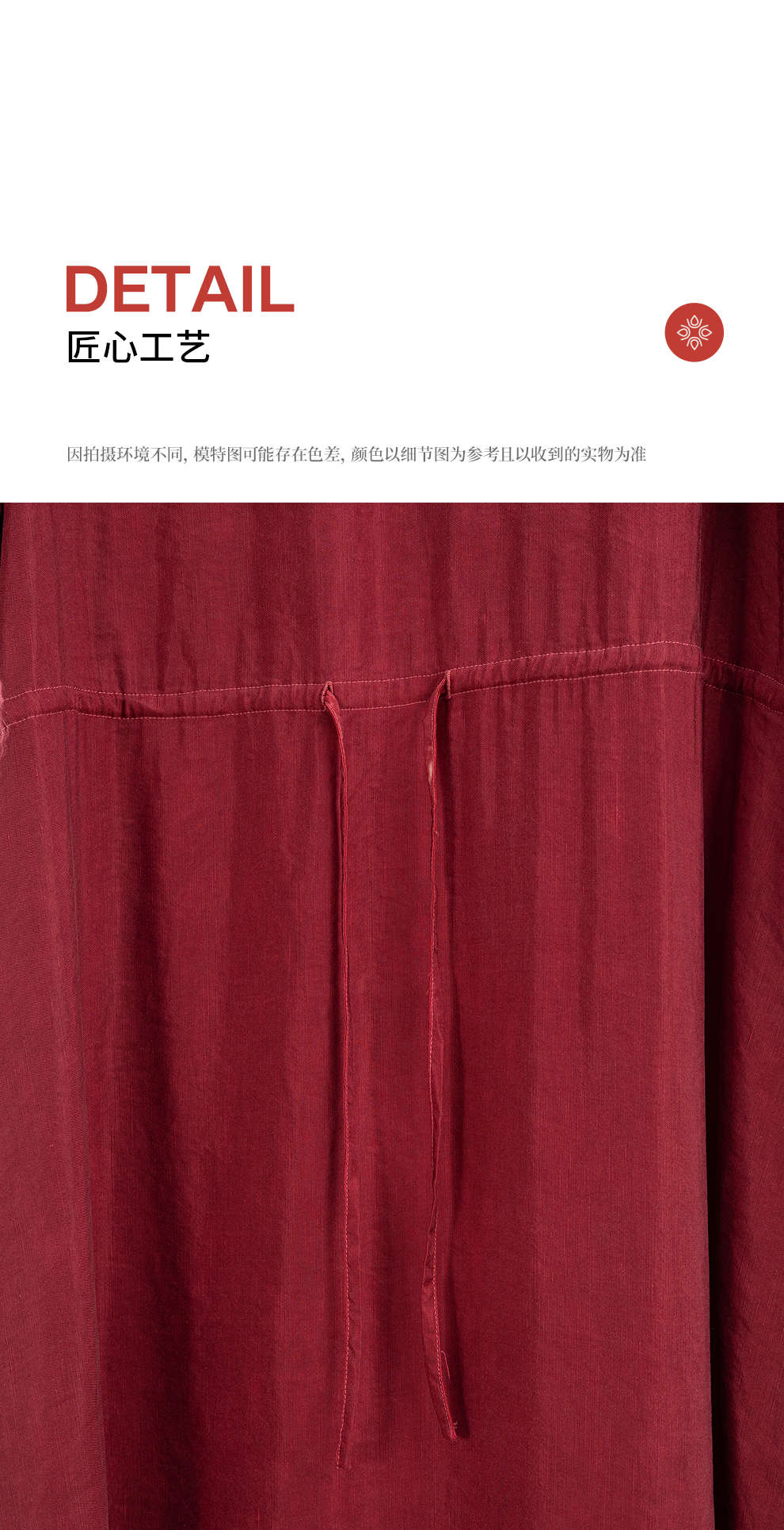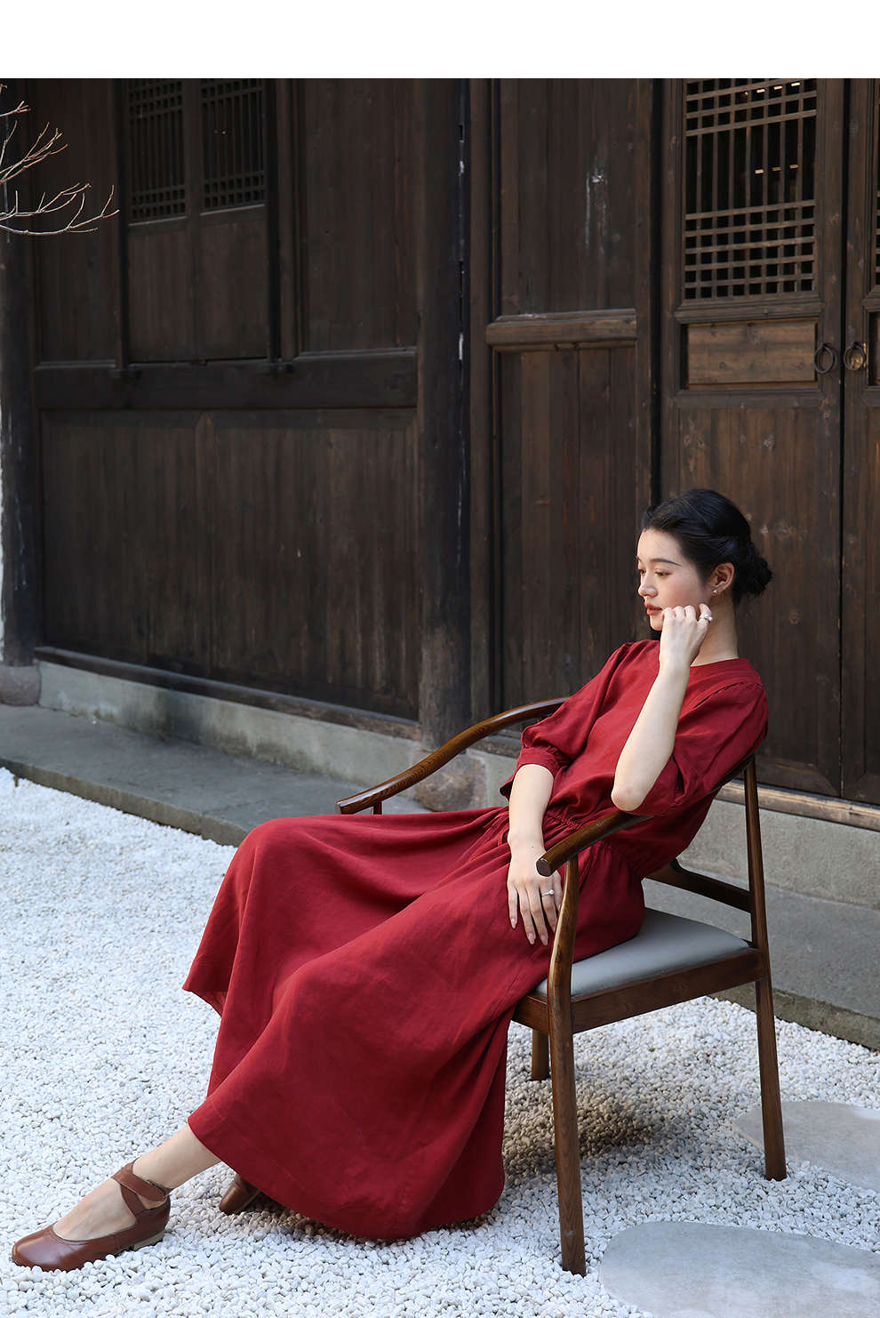 绽放旅行女装261朵/铜氨天丝亚麻灯笼袖通带系带七八分袖连衣裙子