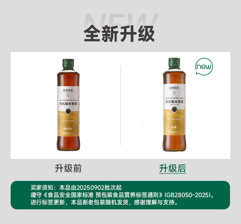 有机调味品玉兔应物有机糙米醋500ml 酿造食醋包邮
