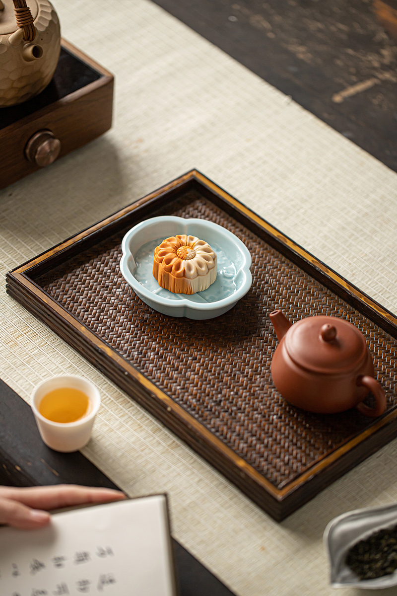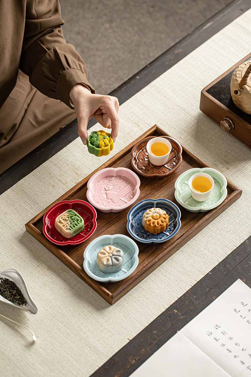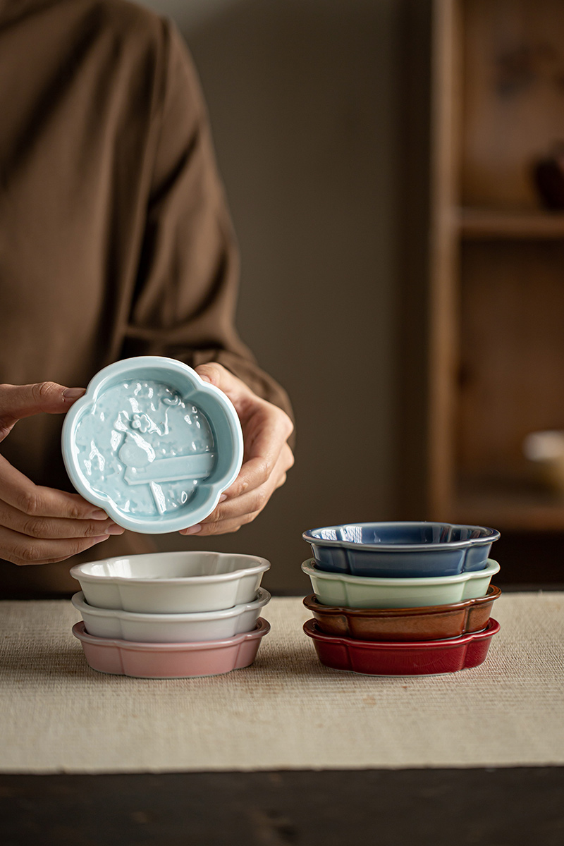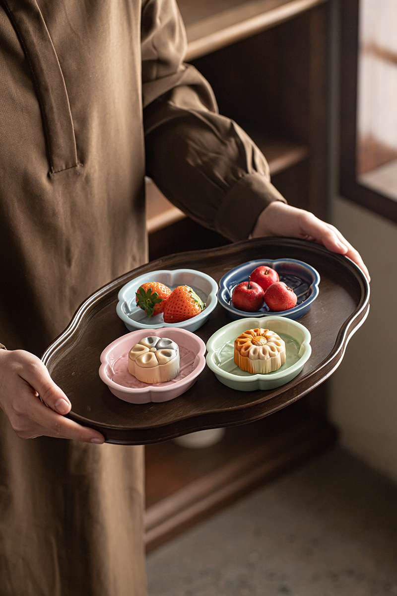【海棠无香小碟】中式复古陶瓷高脚水果盘茶点盘家用点心碟子禅意干果盘零食糕点盘