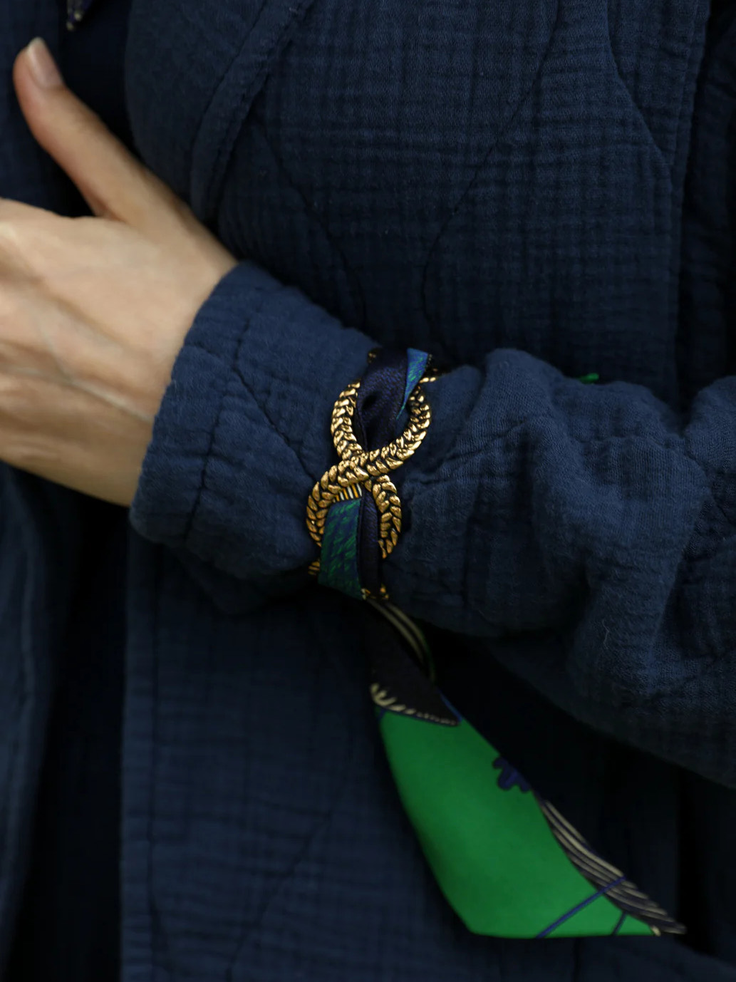 订购14周到|AN-NEE-TRESSE-绿调 波西米亚 复古金色 4cm 丝巾手镯[法国设计师]