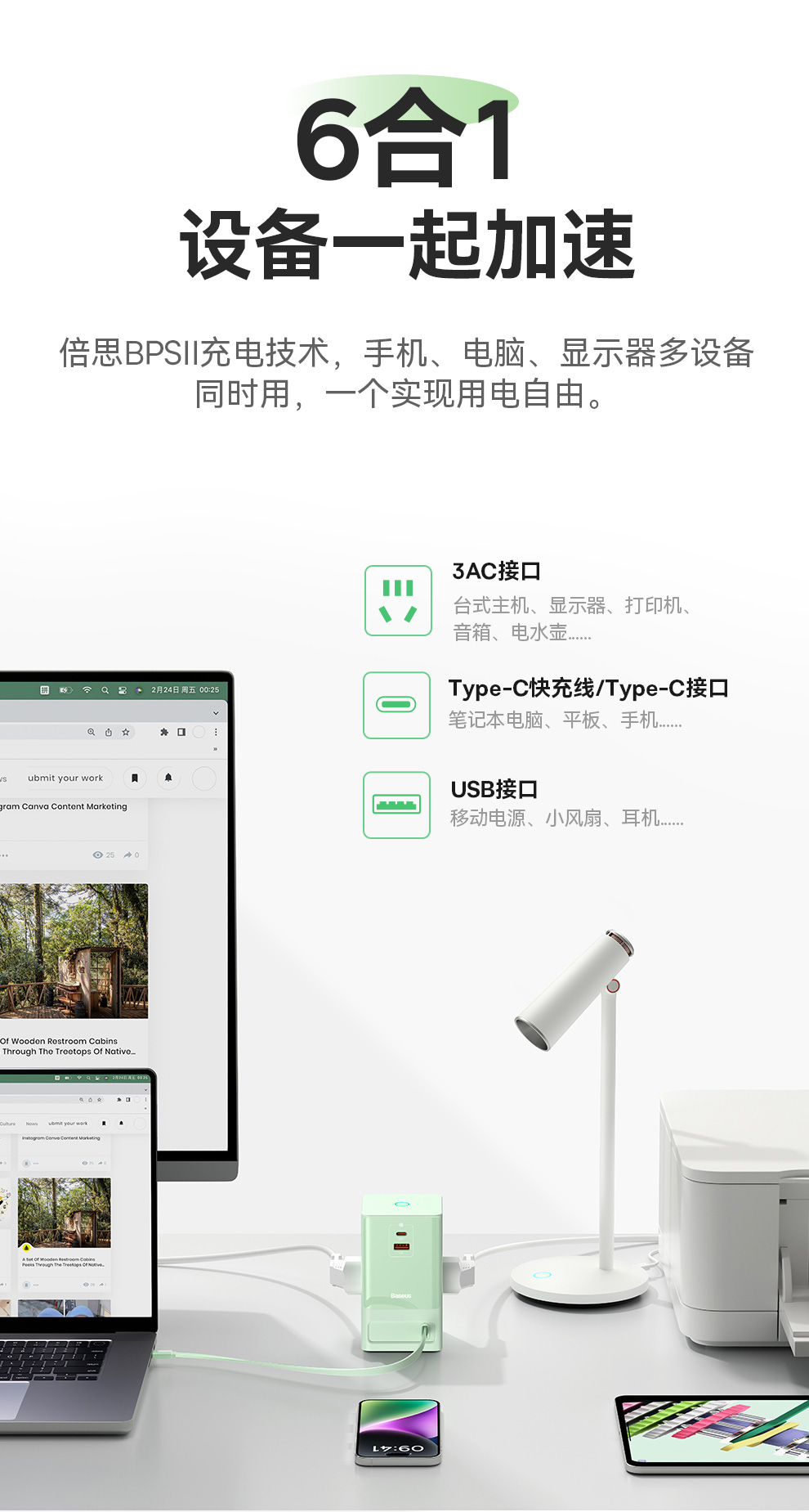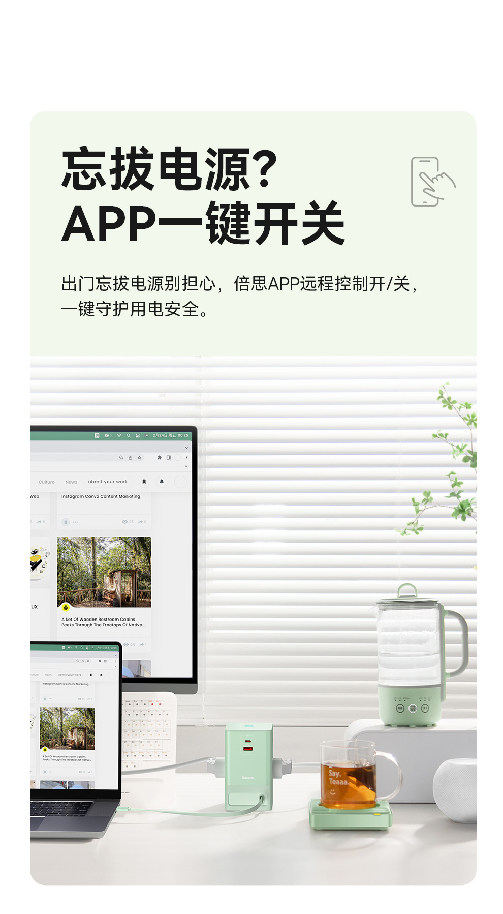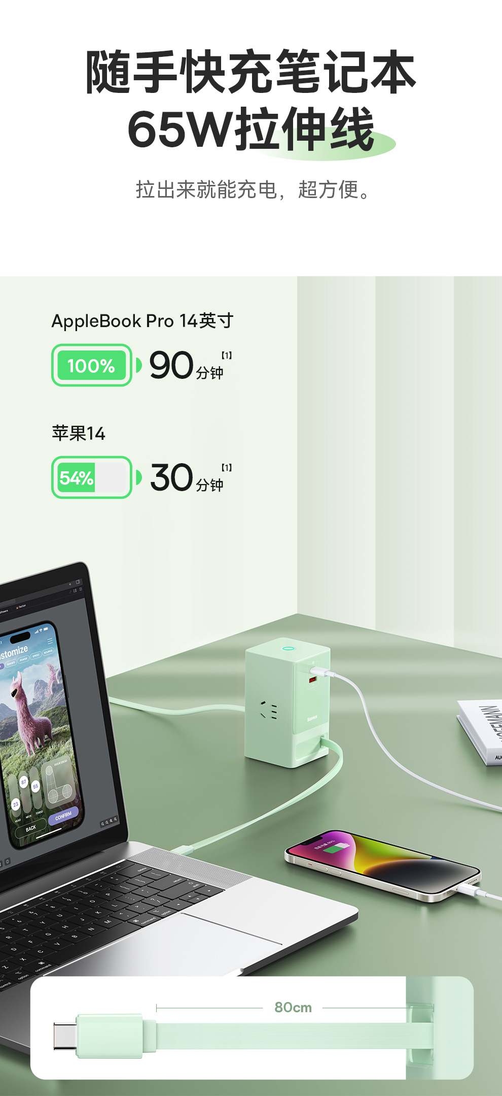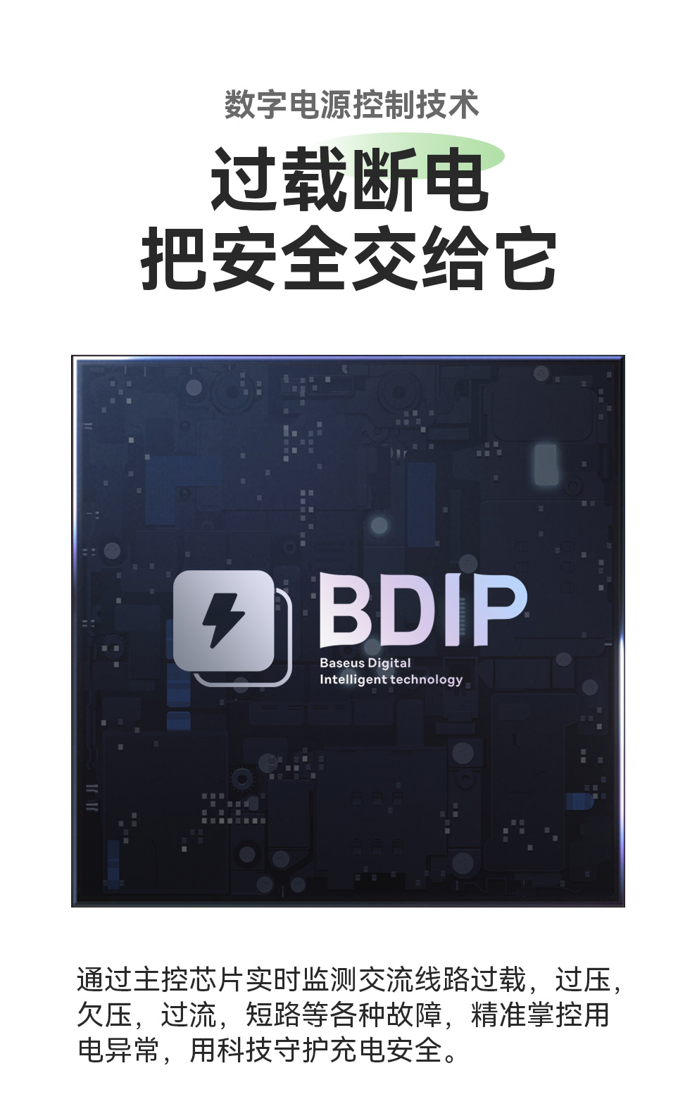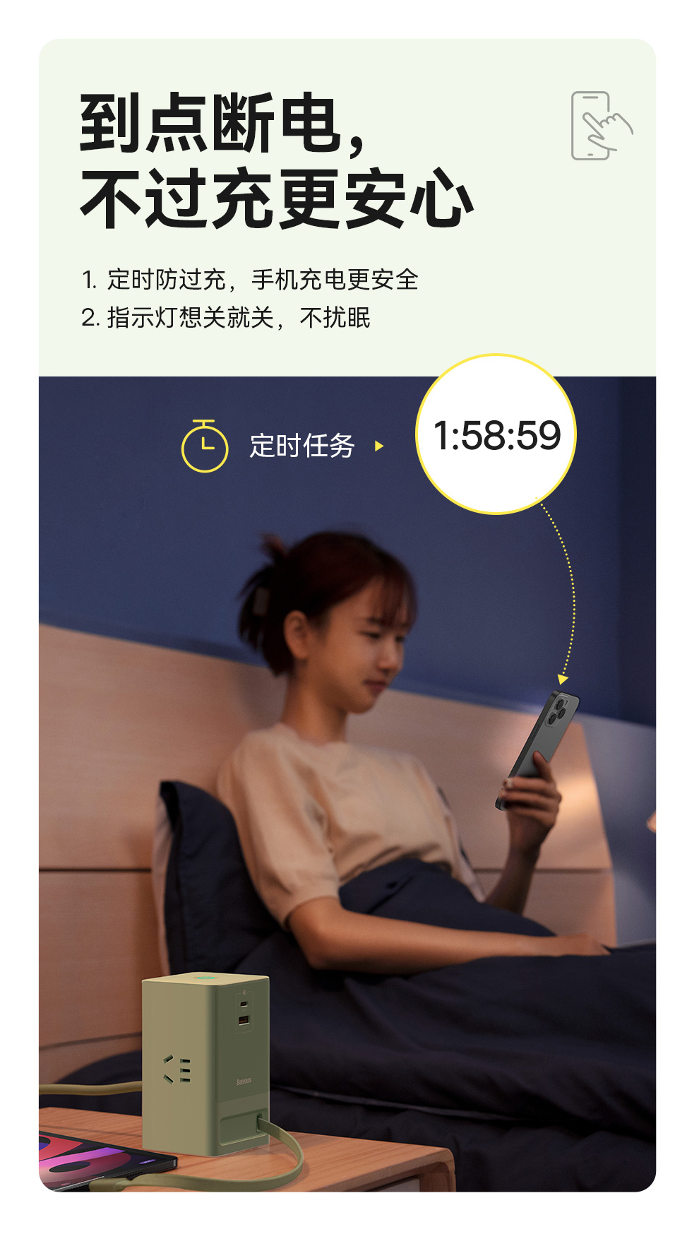 倍思 灵睿系列 数字式插线板 3AC+1U+1C+拉伸线C 65W 智能版 1.5m电源线