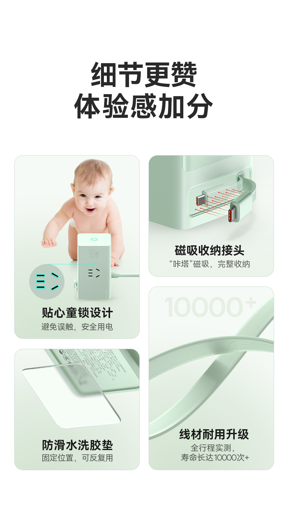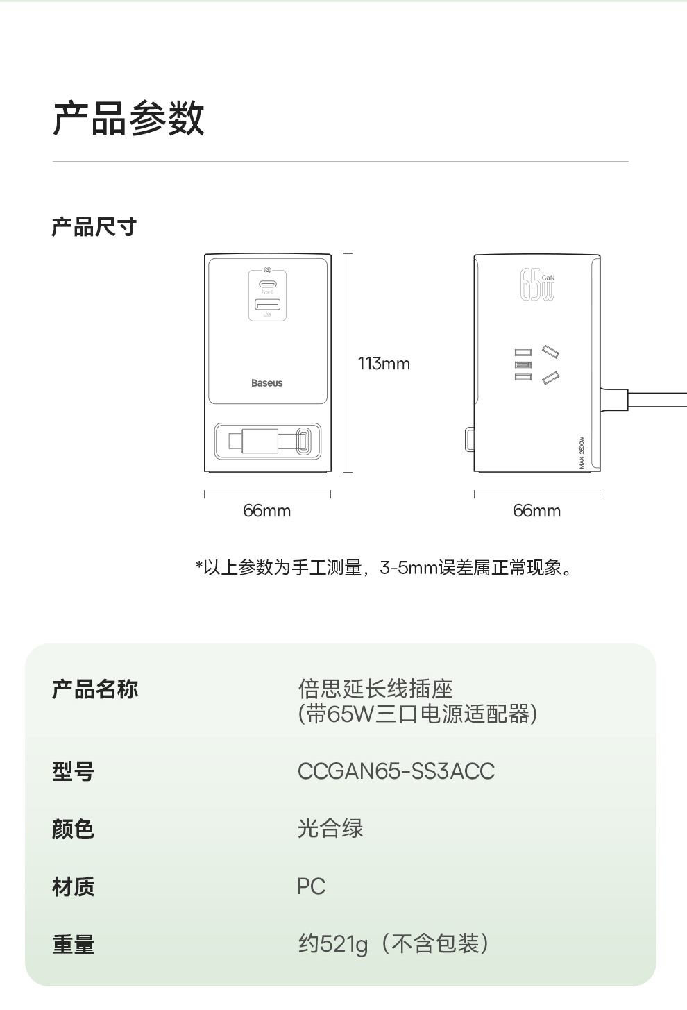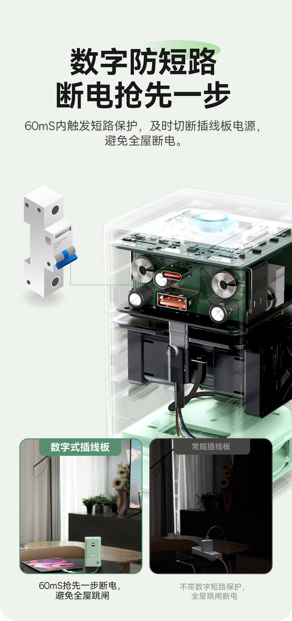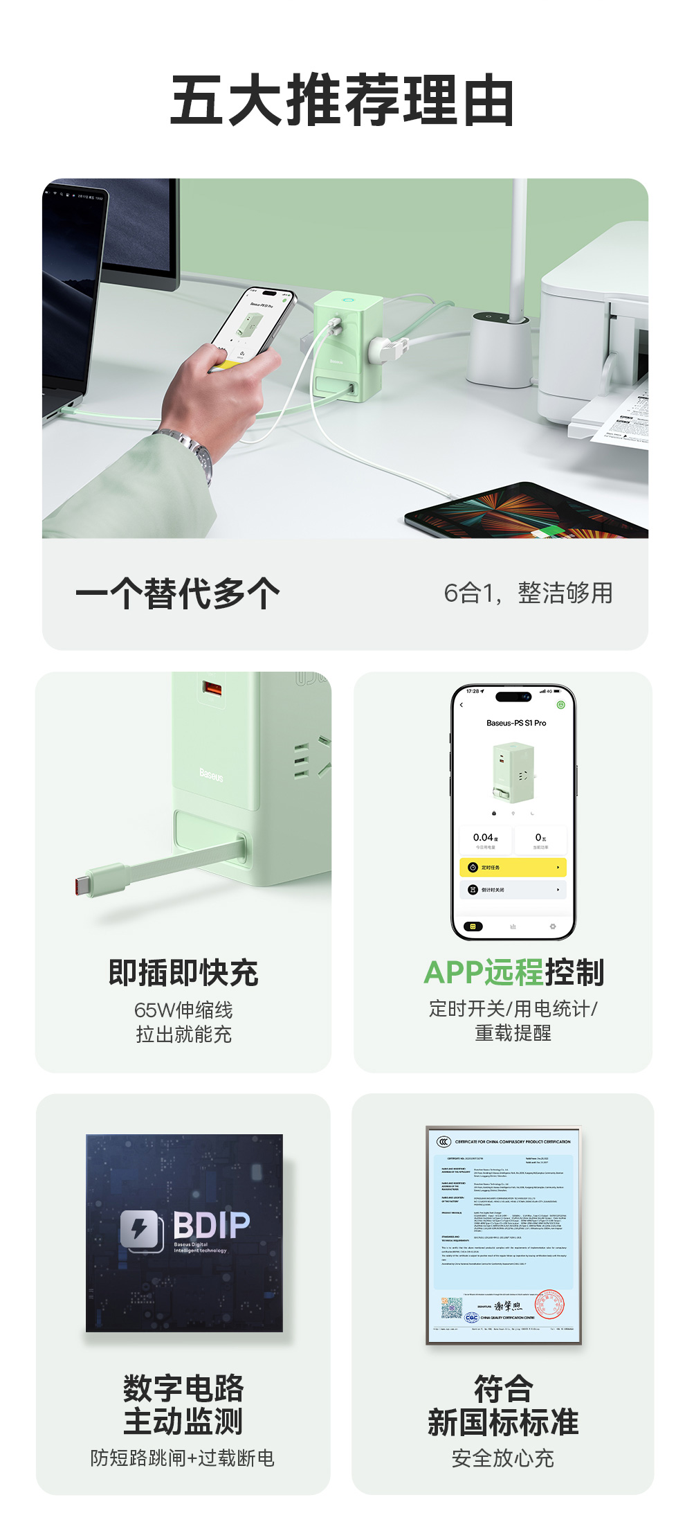 倍思 灵睿系列 数字式插线板 3AC+1U+1C+拉伸线C 65W 智能版 1.5m电源线