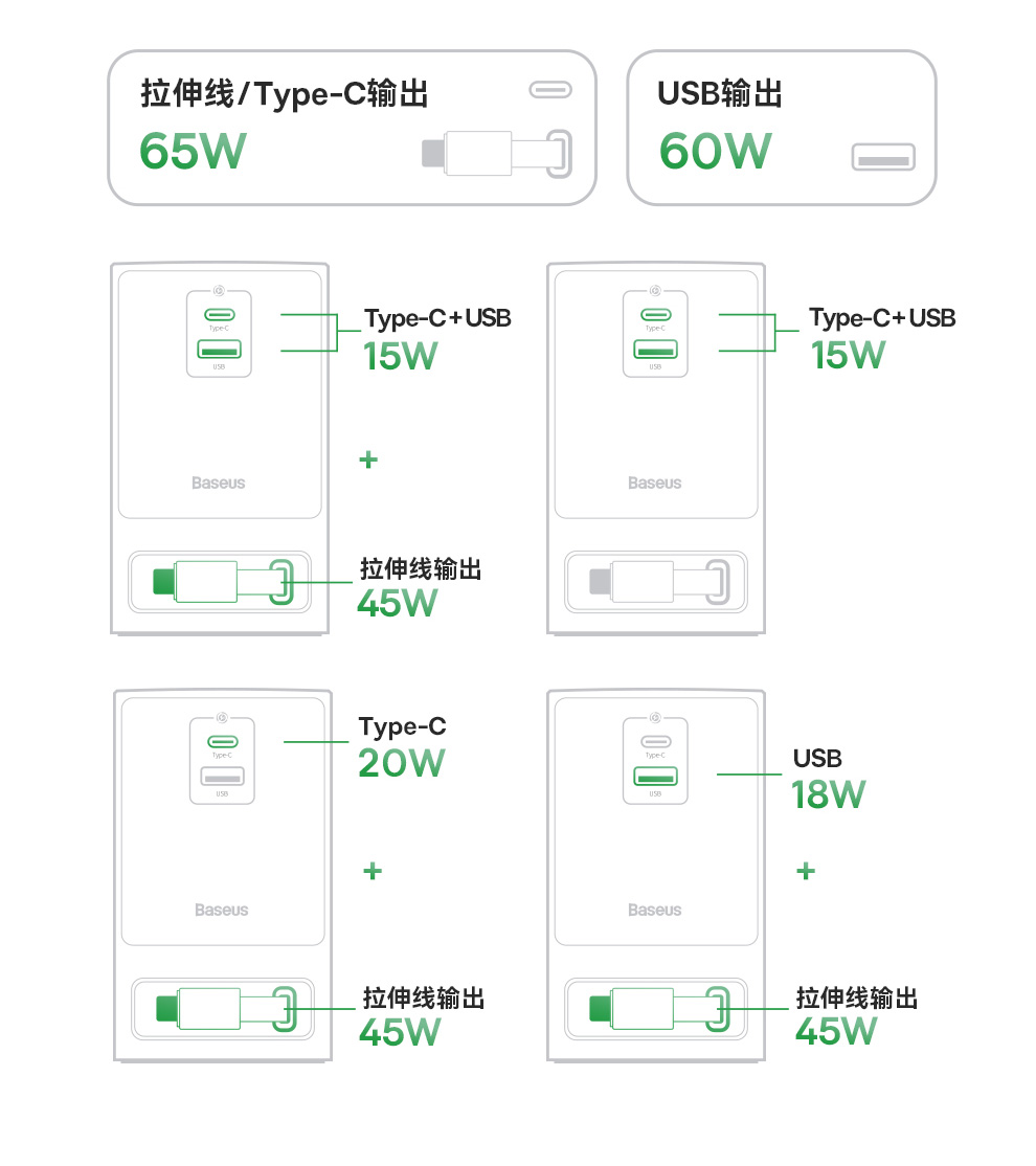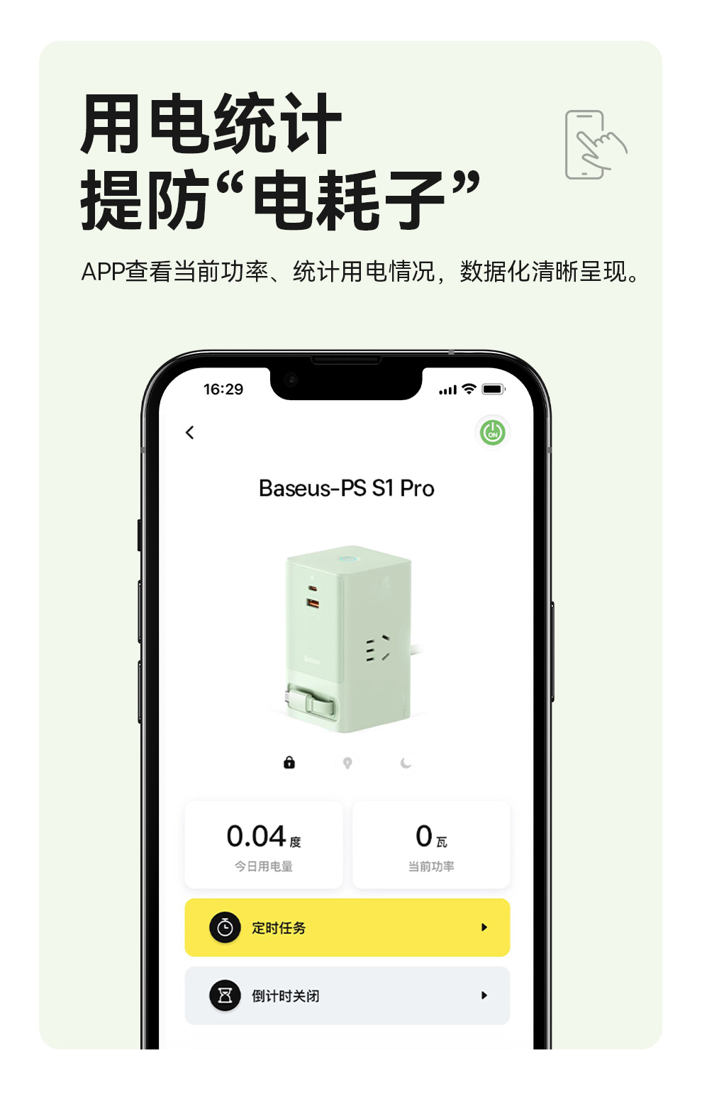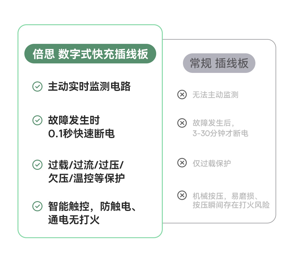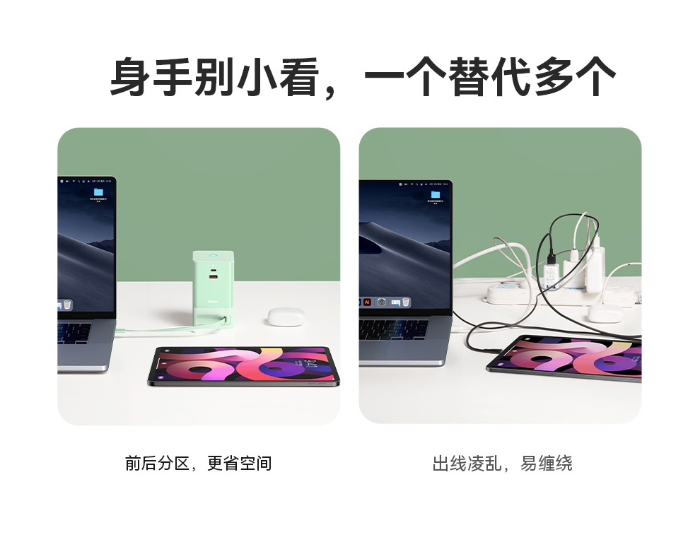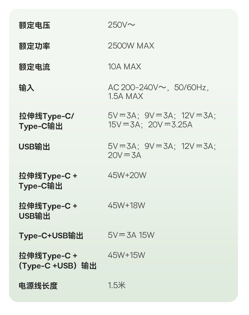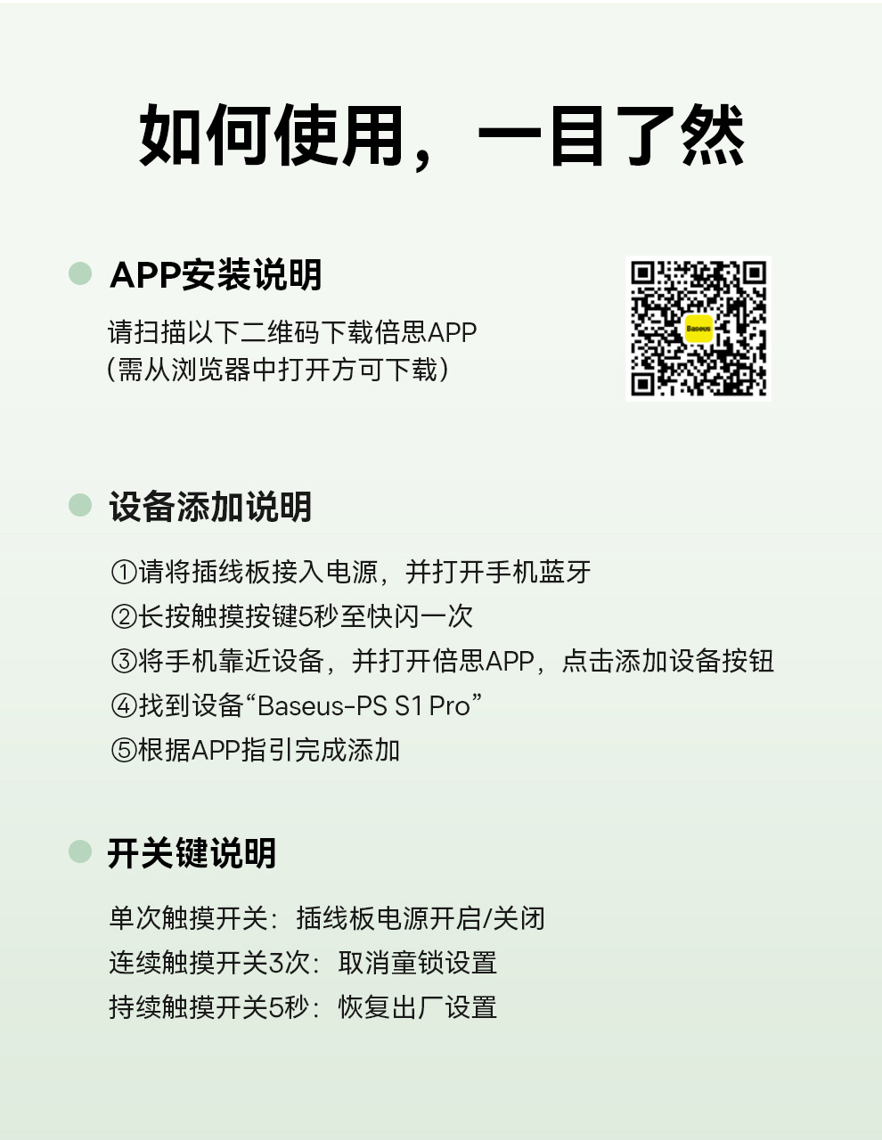 倍思 灵睿系列 数字式插线板 3AC+1U+1C+拉伸线C 65W 智能版 1.5m电源线