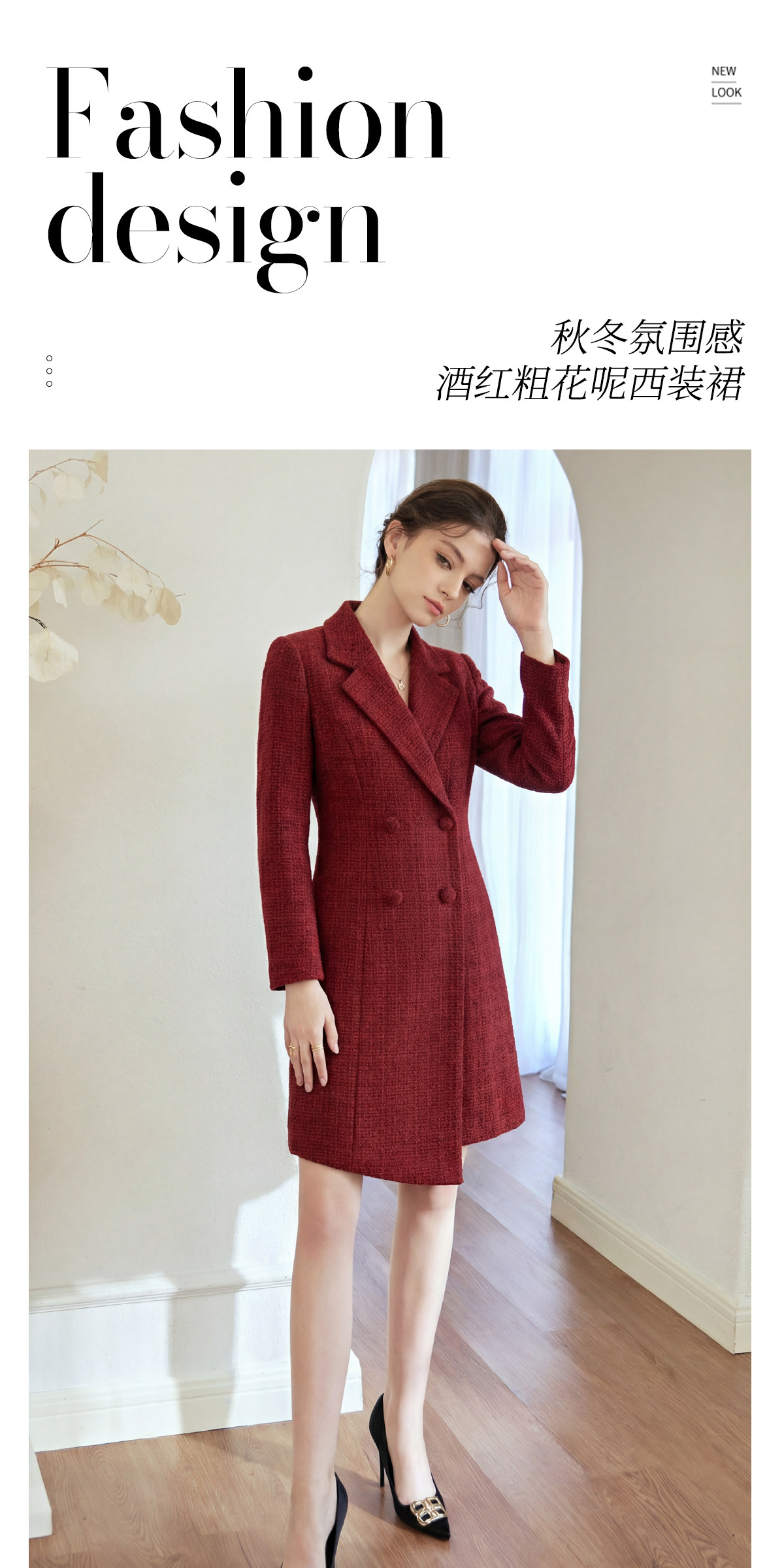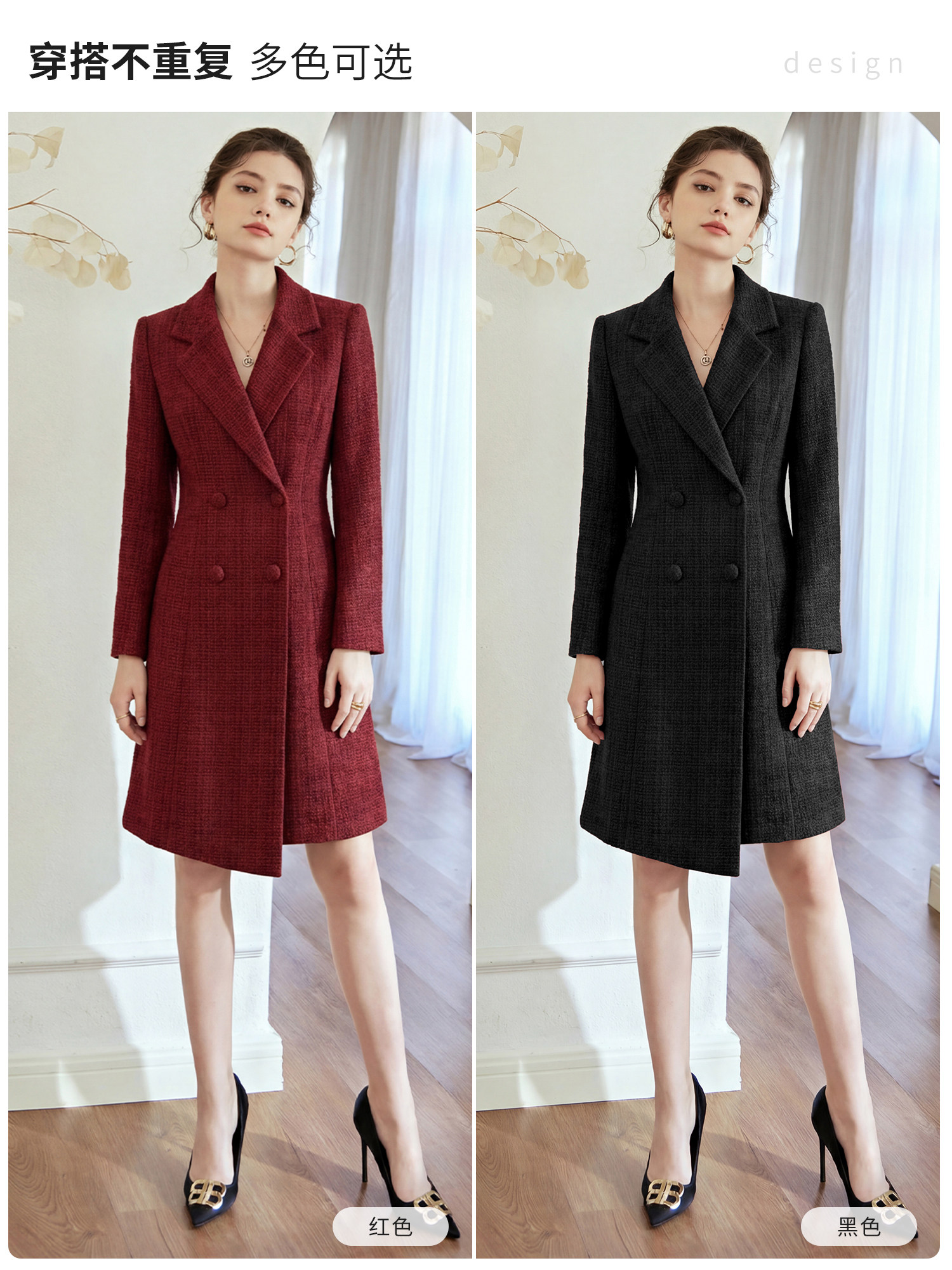 艾尚臣妈妈婚宴装毛呢西装领连衣裙女双排扣收腰显瘦喜婆婆礼服厚