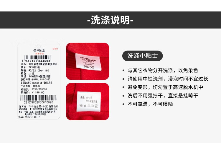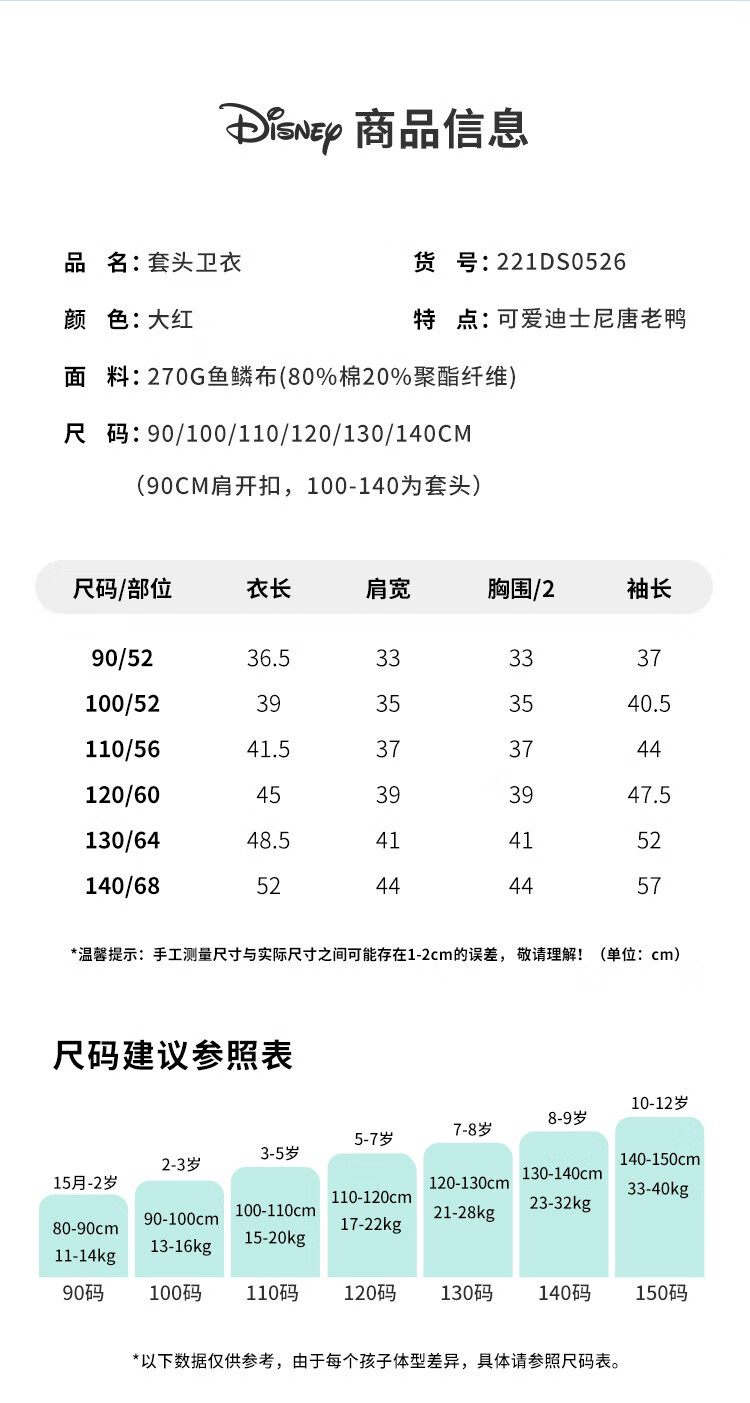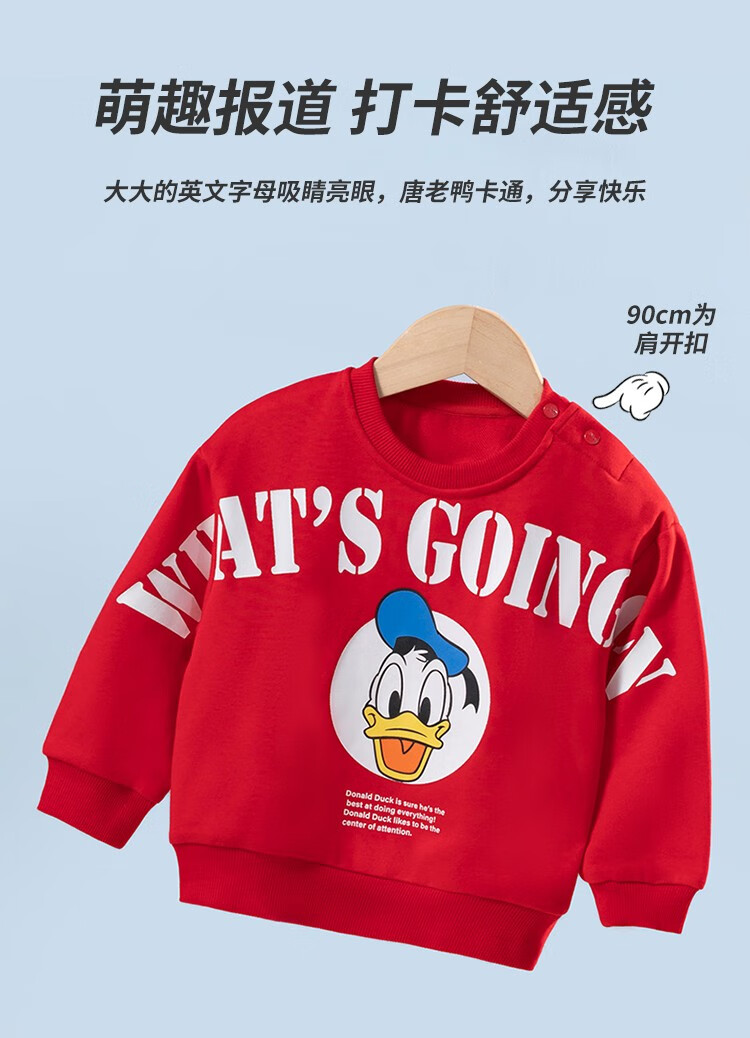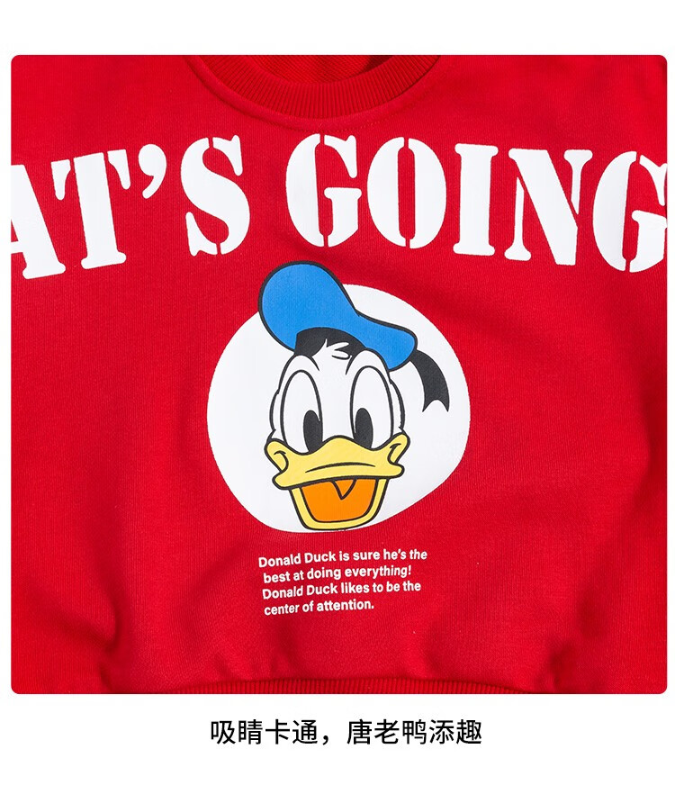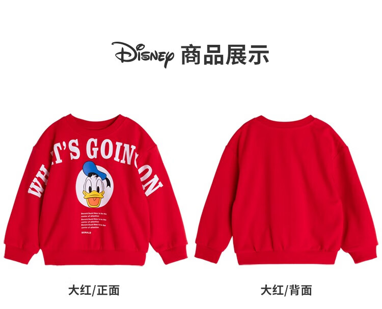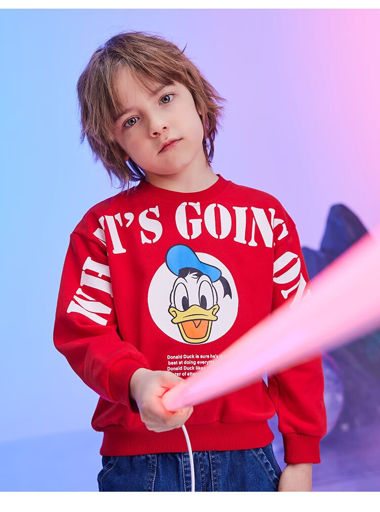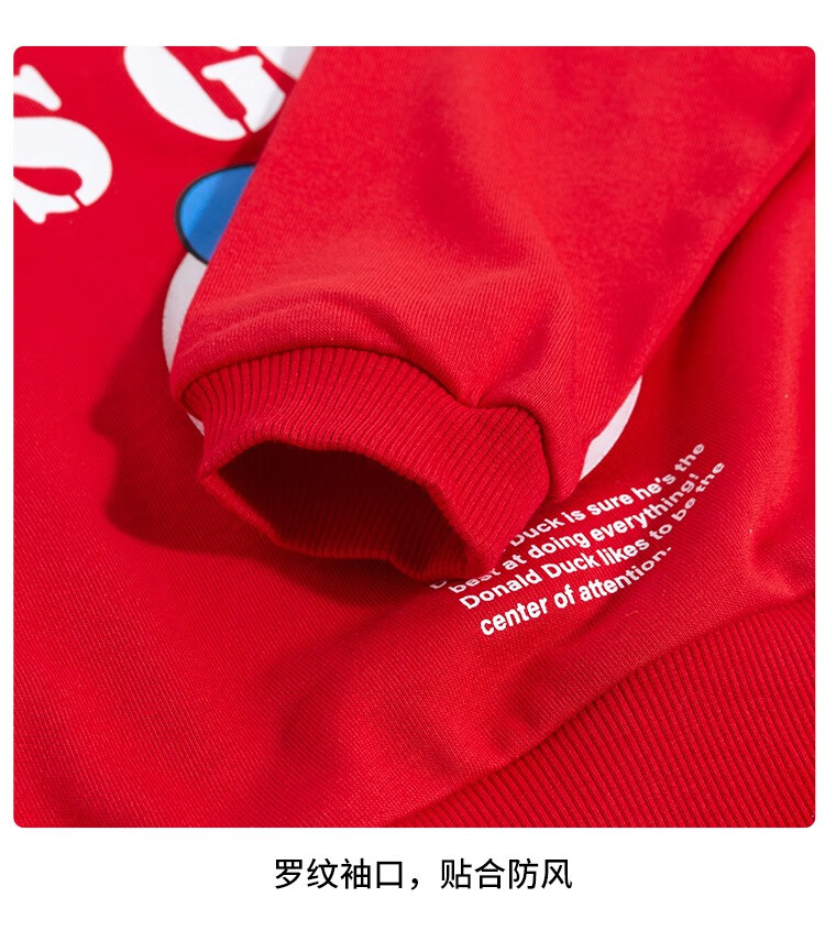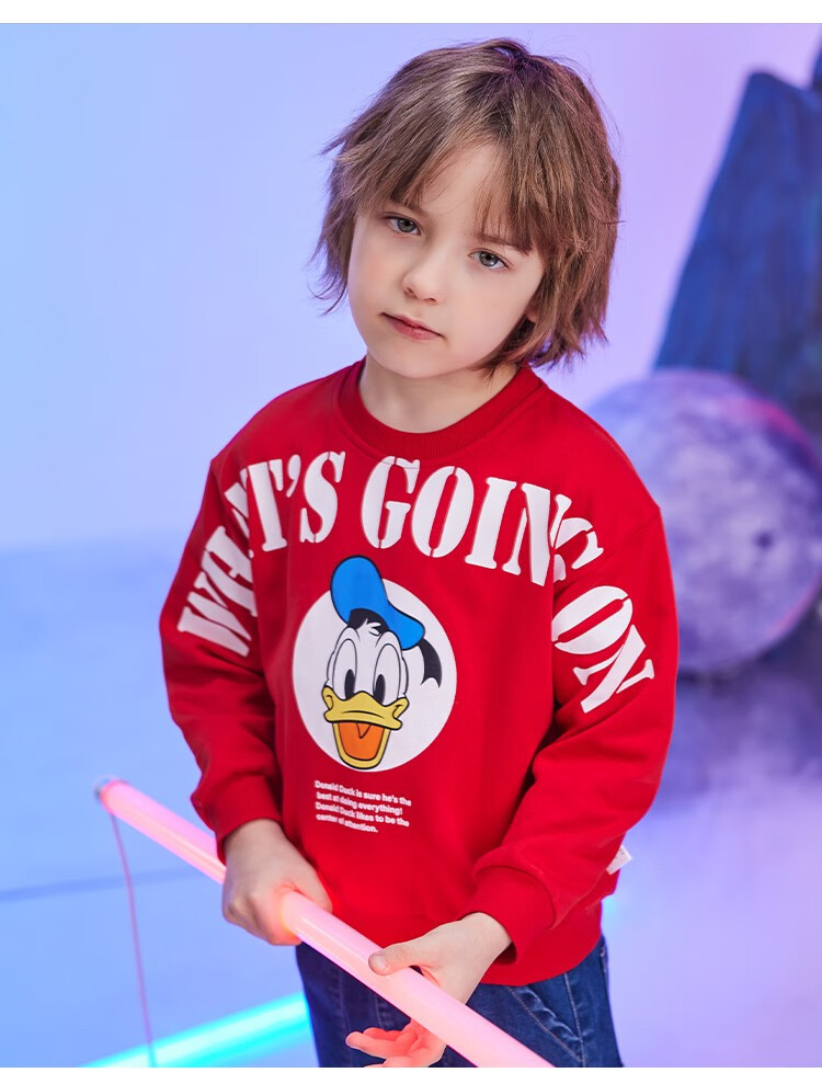 迪士尼童装春秋新品男童时尚唐老鸭卫衣红色时尚长袖