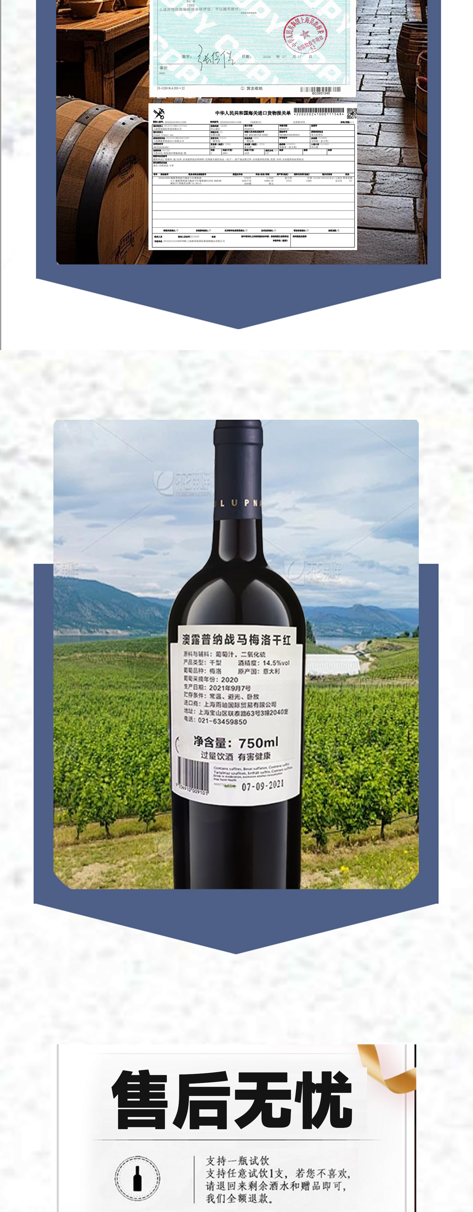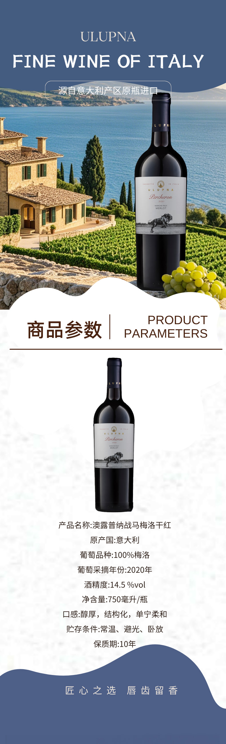 【2瓶399元】澳露普纳(ULUPNA)战马红酒 750ml/瓶 意大利马尔凯产区 100%梅洛 口感醇厚 优雅平衡 单宁柔和