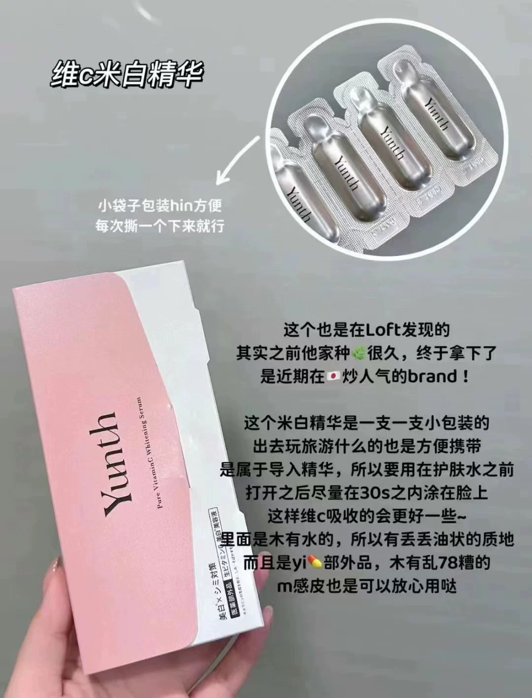 【亮透嫩】日本yunth28天美白精华yunth精华10%原型vc次抛精华1ml×28支 亮白肌肤