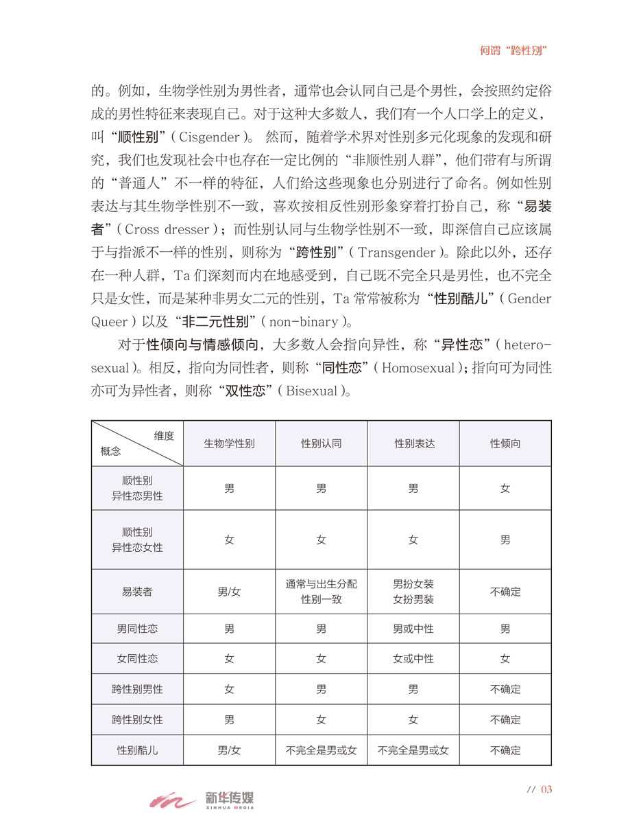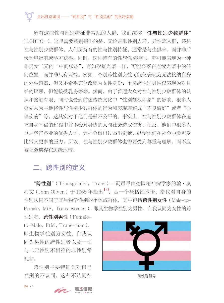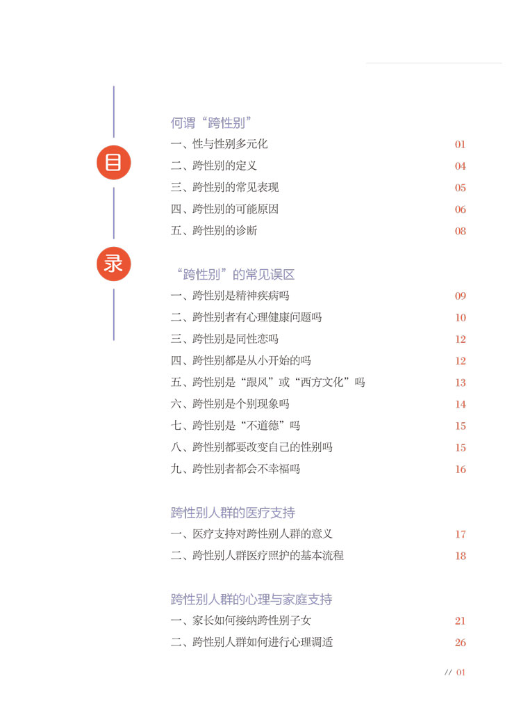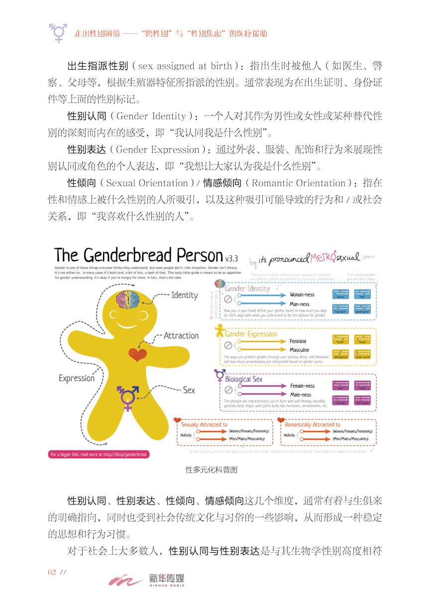 本书依照目前世界跨性别健康专业协会有关跨性别医疗照护的最新指南,详细介绍了跨性别的概念、定义、临床表现、诊断与鉴别诊断、可能原因;针对目前社会大众对跨性别理解上的误区进行科普讲解,介绍跨性别人群获得医疗支持的必要性和基本规范,从心理支持、家庭宣教、内分泌治疗、手术治疗、嗓音及生育力保存、常见伴发疾病的防治等详细介绍医疗照护的具体内容,给与性别肯定后融入新生活的指引,同时分享了几个真实生动的患者故事,附录部分摘抄国家有关性别重置手术的管理规范文件等,全书约5万字,配以生动的配图,绝大部分内容尚未出现在现有出版物中。