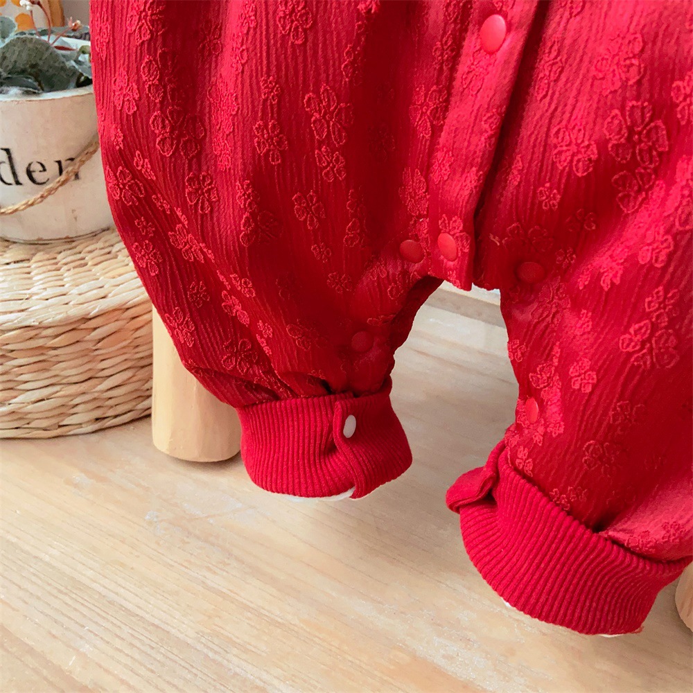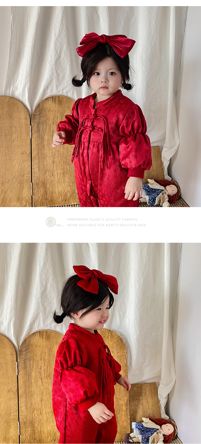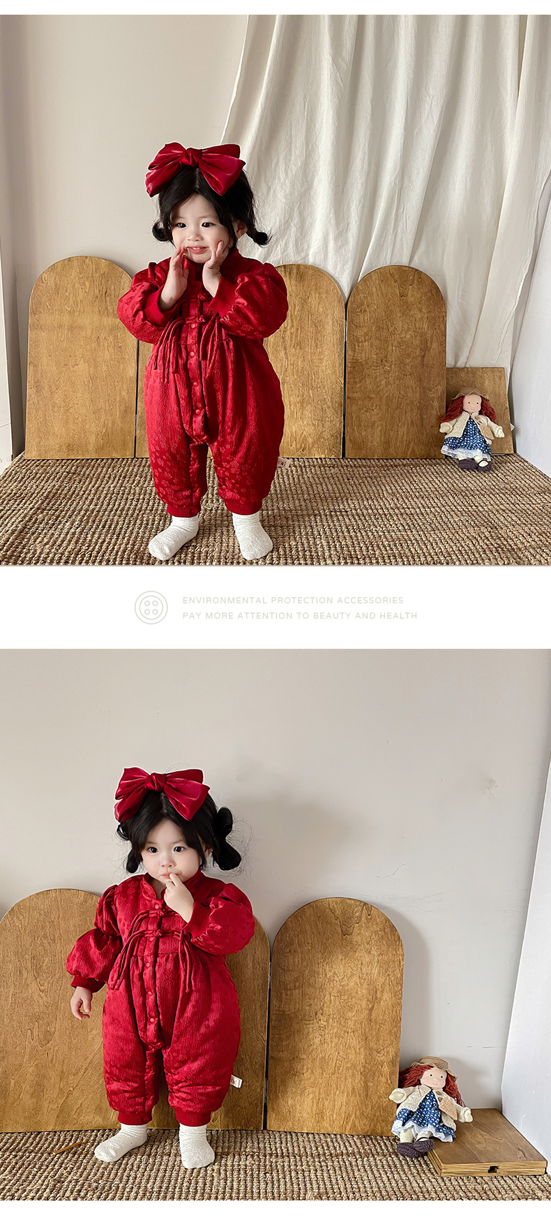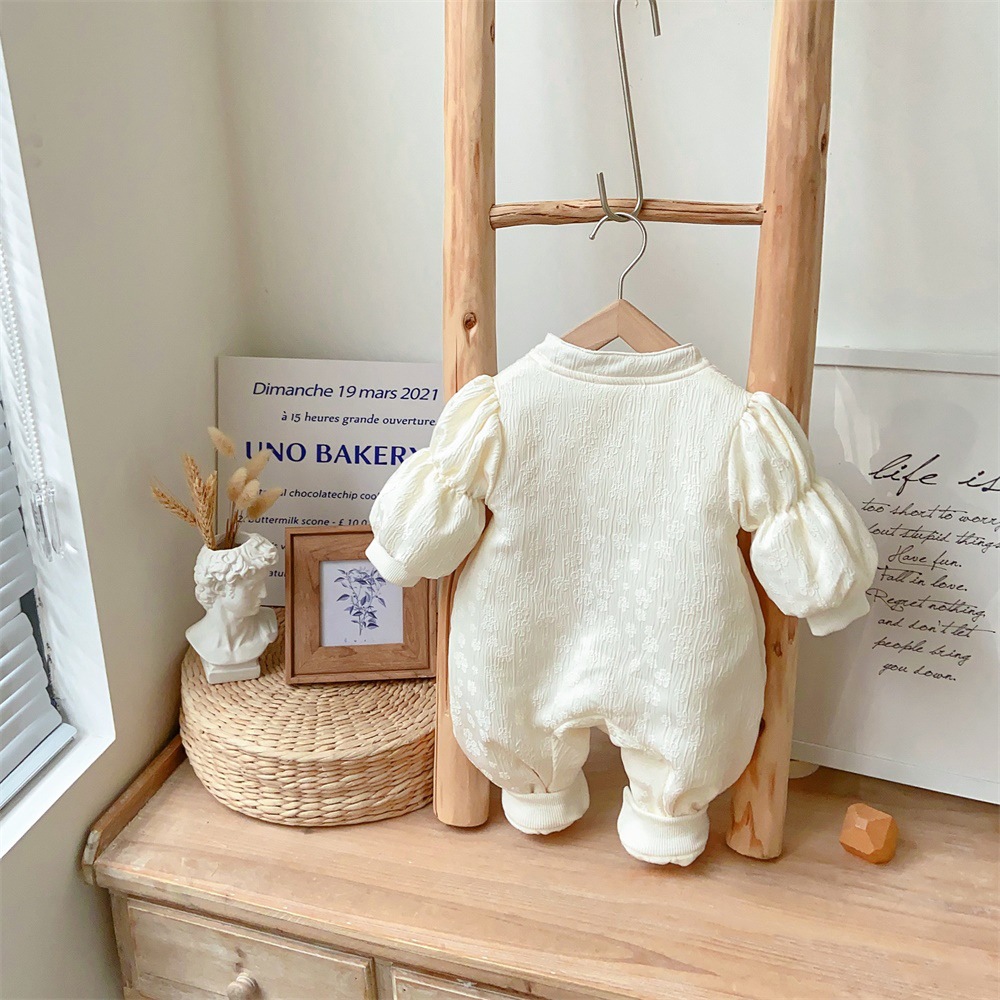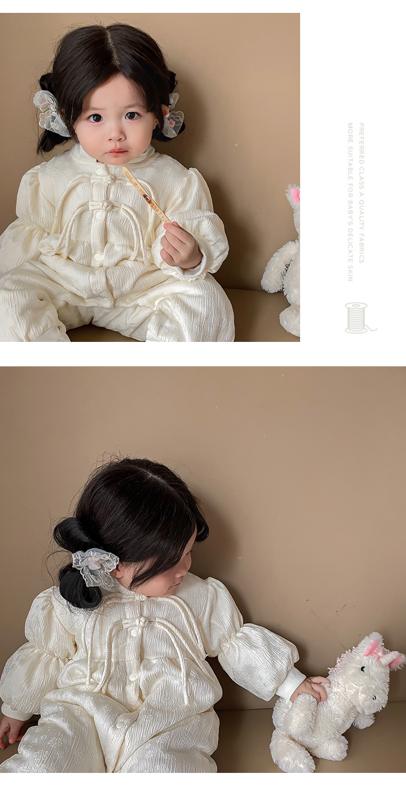 【中国风提花盘扣泡泡袖哈衣】满月婴儿衣服秋冬女宝宝加绒加厚连体衣