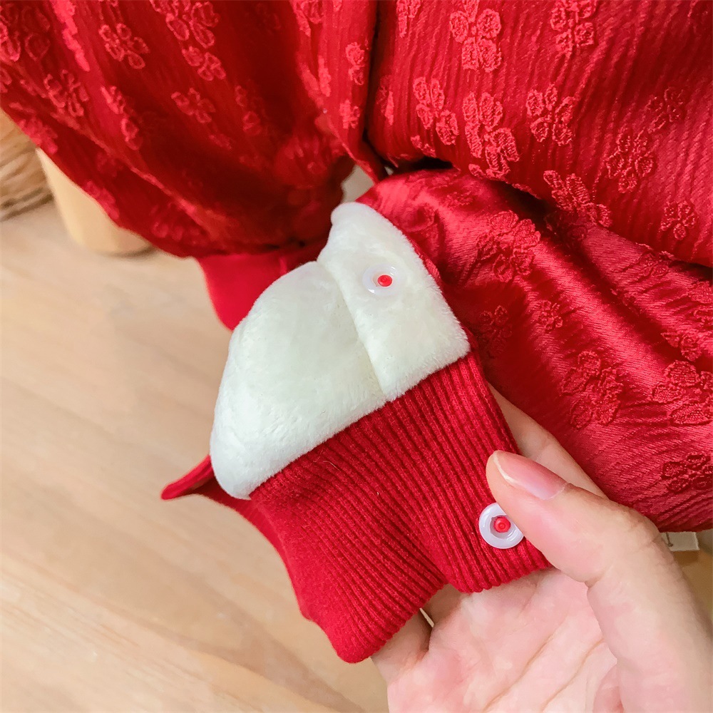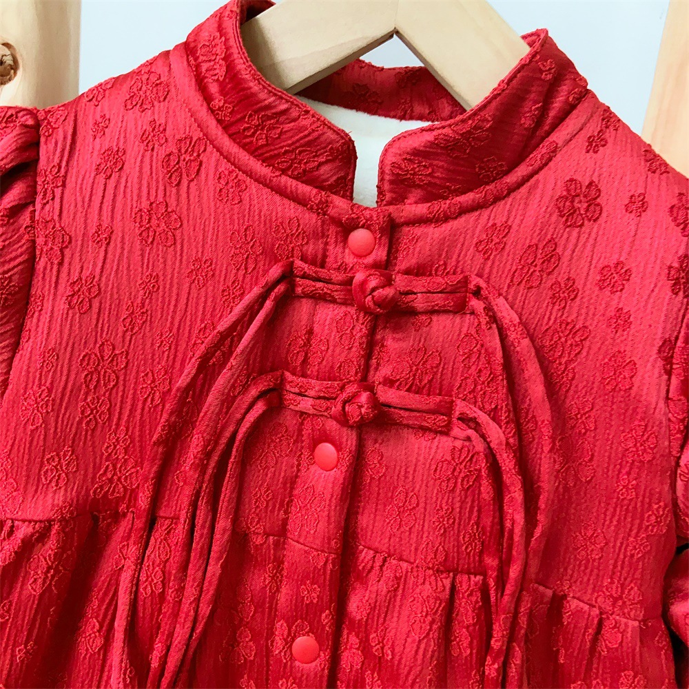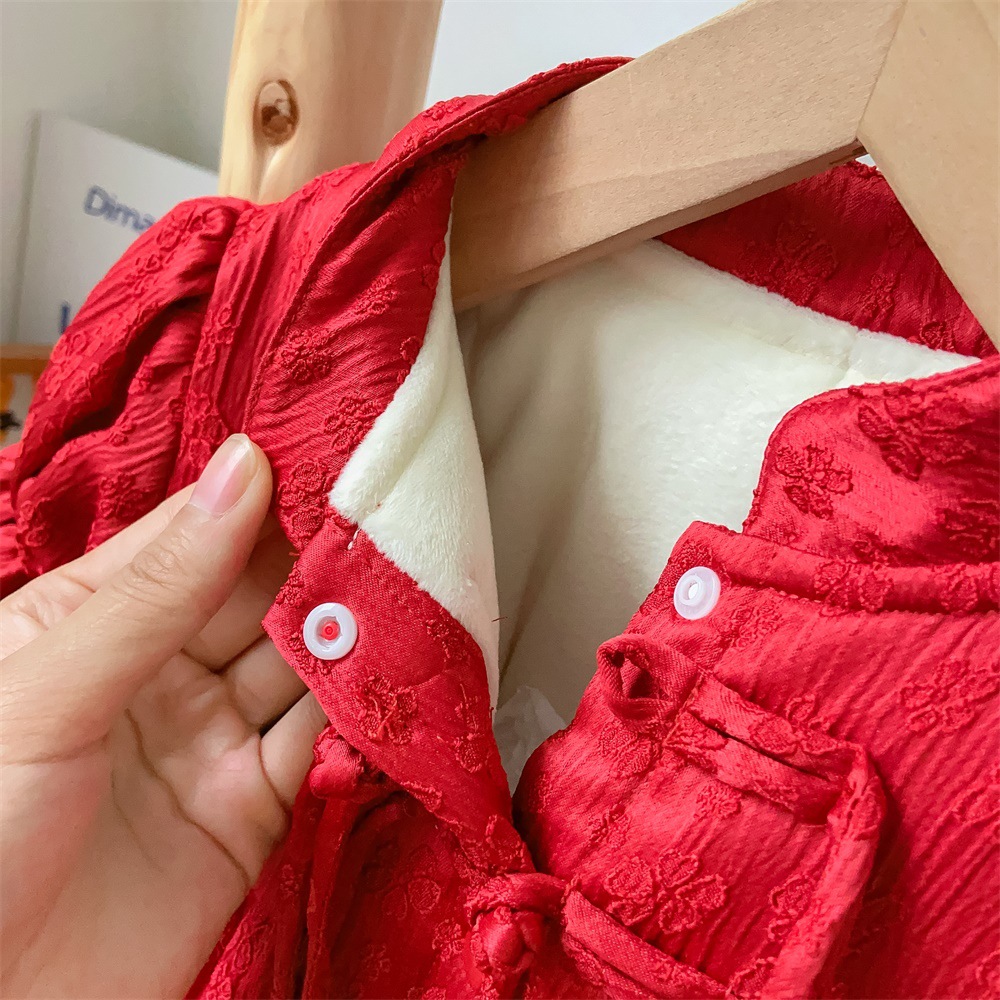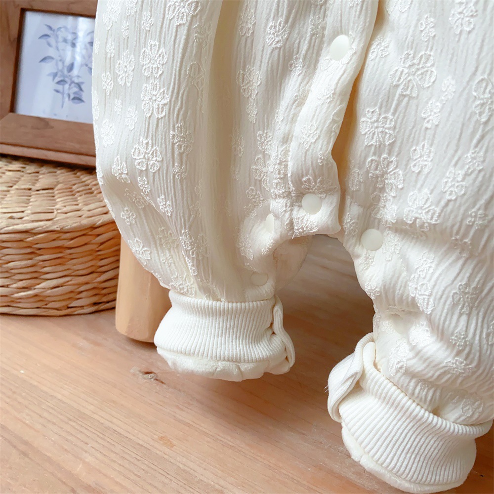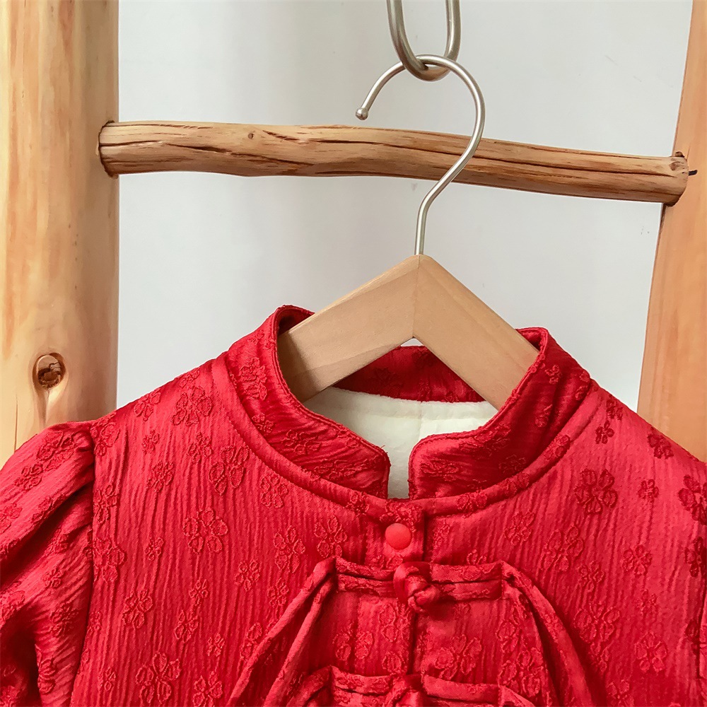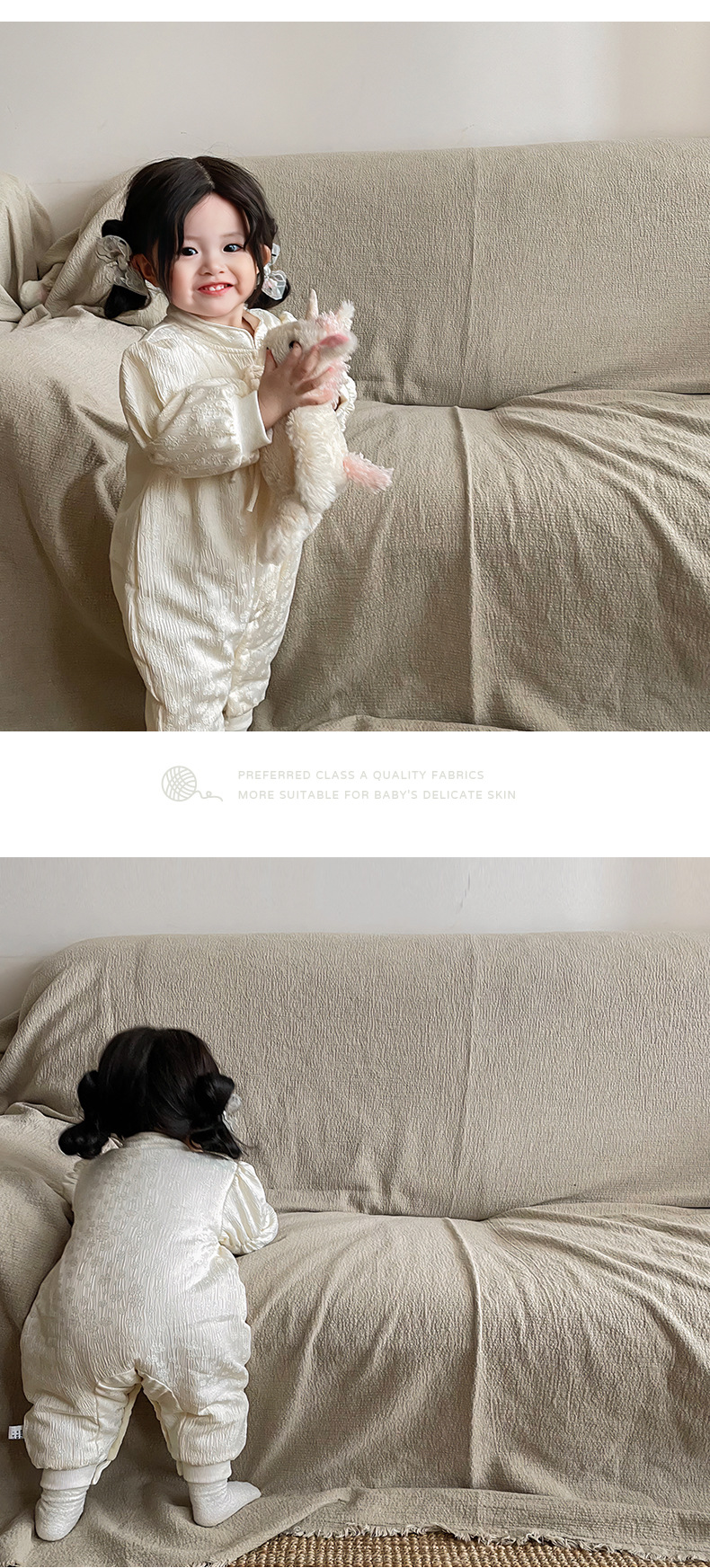 【中国风提花盘扣泡泡袖哈衣】满月婴儿衣服秋冬女宝宝加绒加厚连体衣