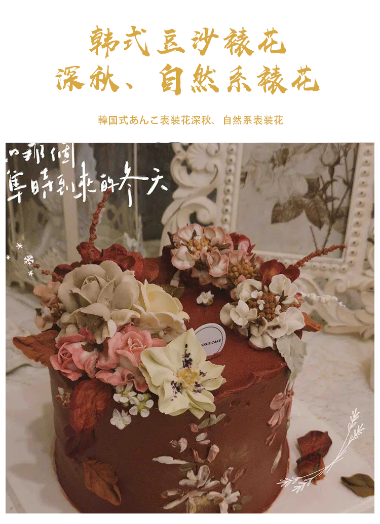 由于这款蛋糕造型比较复杂,我们会使用奶油霜抹面来确保蛋糕的稳定性。