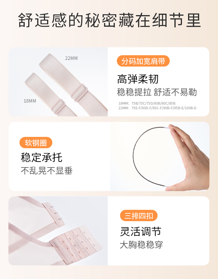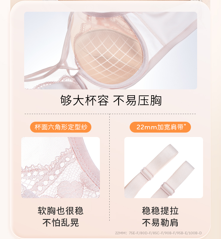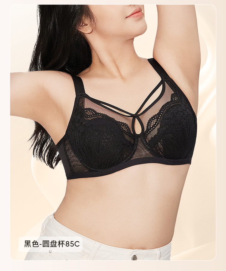 [微甜丰盈款]大胸显小全罩杯性感蕾丝防凸点显瘦软胸大底围内衣女