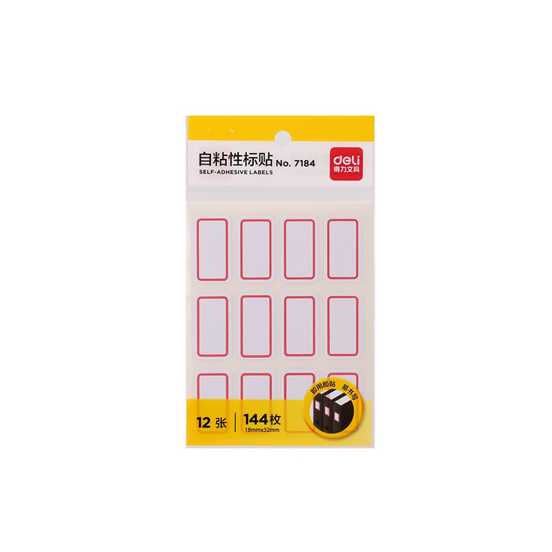 得力标签贴 144枚12张/袋 自粘性标贴签名贴7184便利标18*32mm