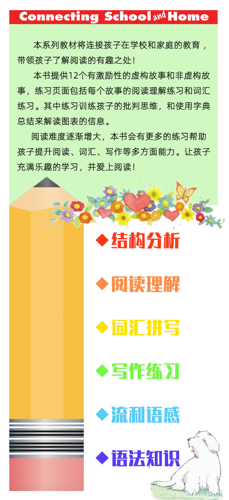 本系列教材将连接孩子在学校和家庭的教育,带领孩子了解阅读的有趣之处!