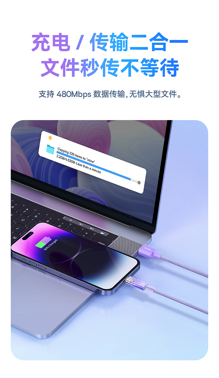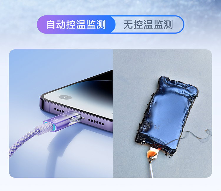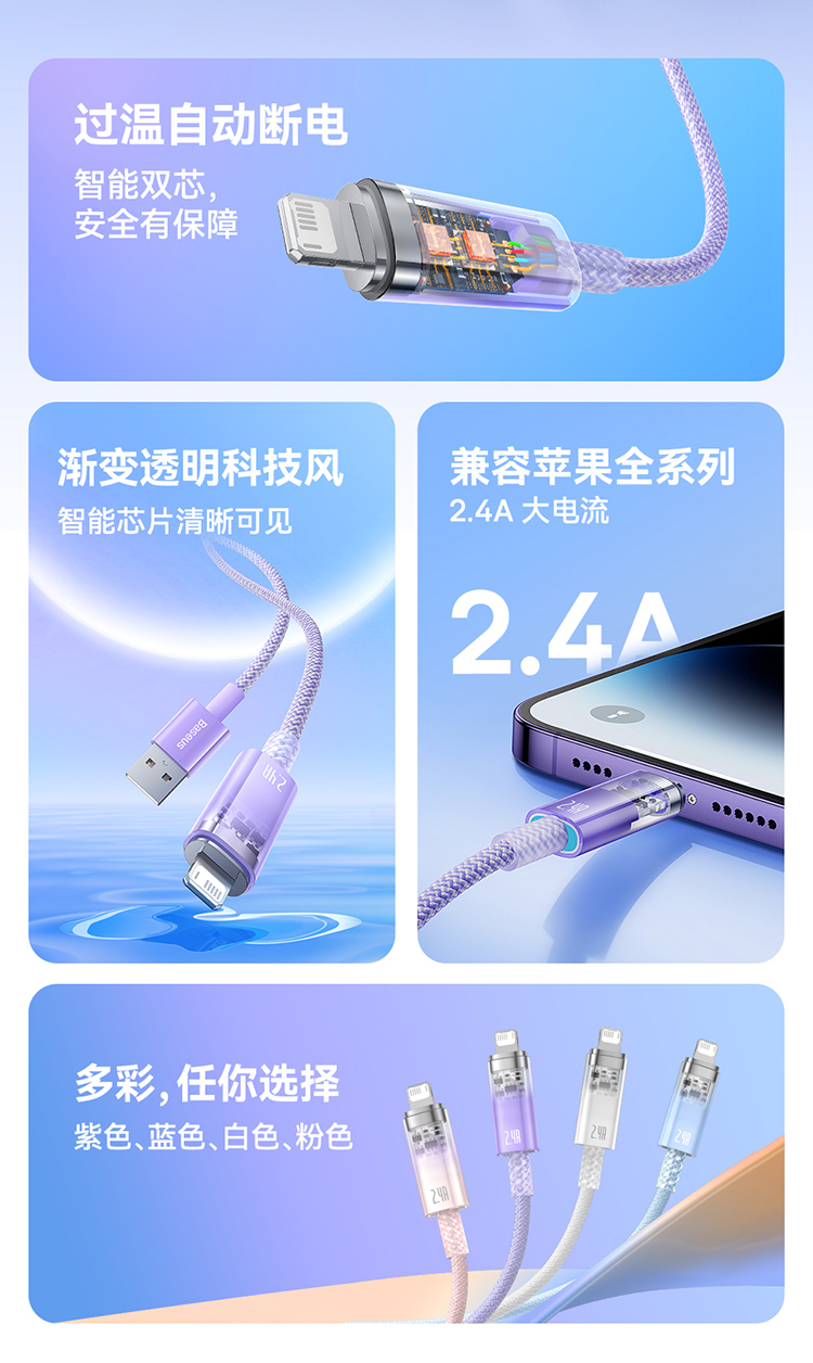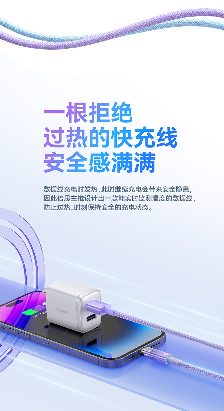 倍思 探索者系列 智能温控快充数据线USB to iPone 2.4A