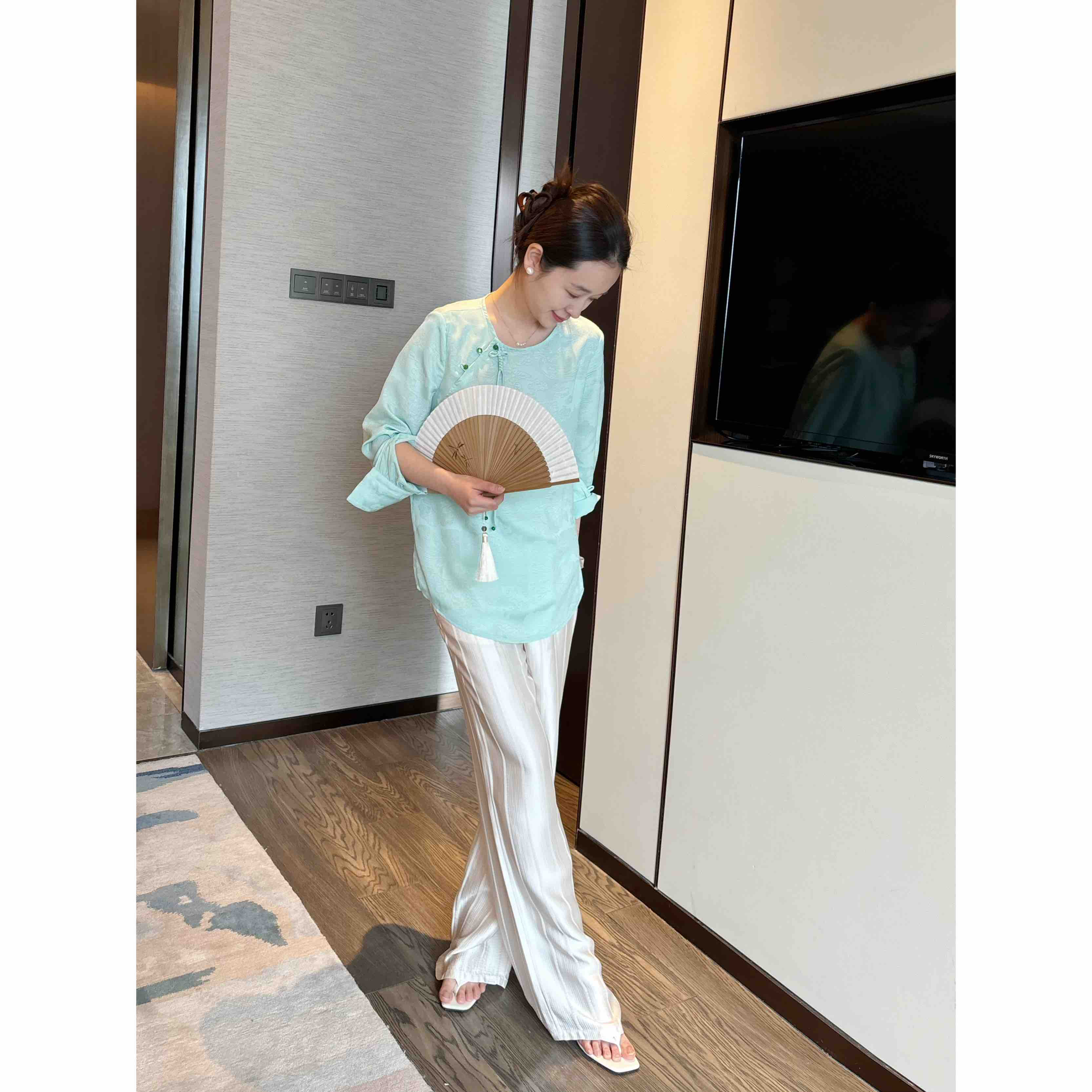 25特价 2404209 吕燕 条纹醋酸直筒 长裤