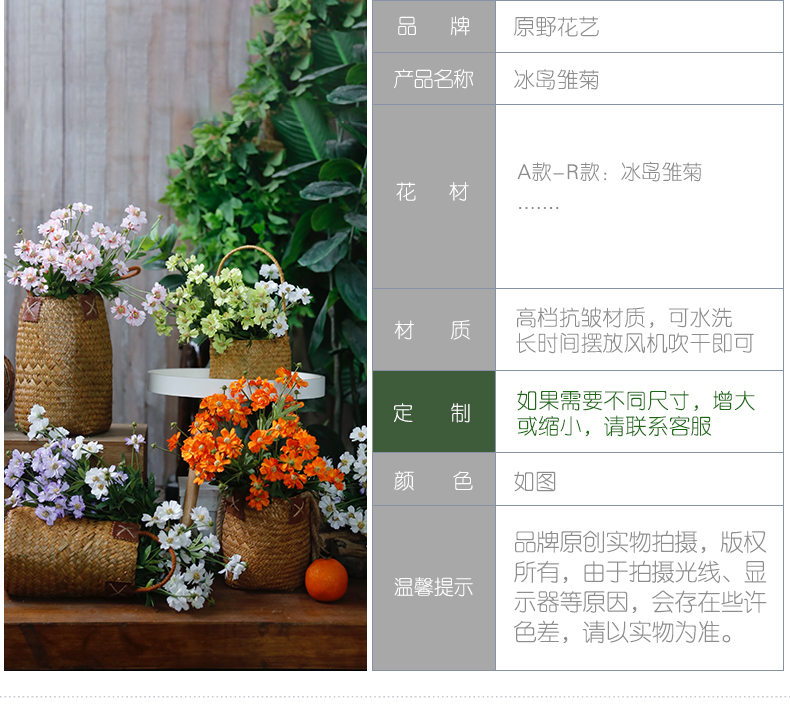 小菊高仿真花假花绢花北欧高档田园新中式酒店客厅茶几摆设装饰花