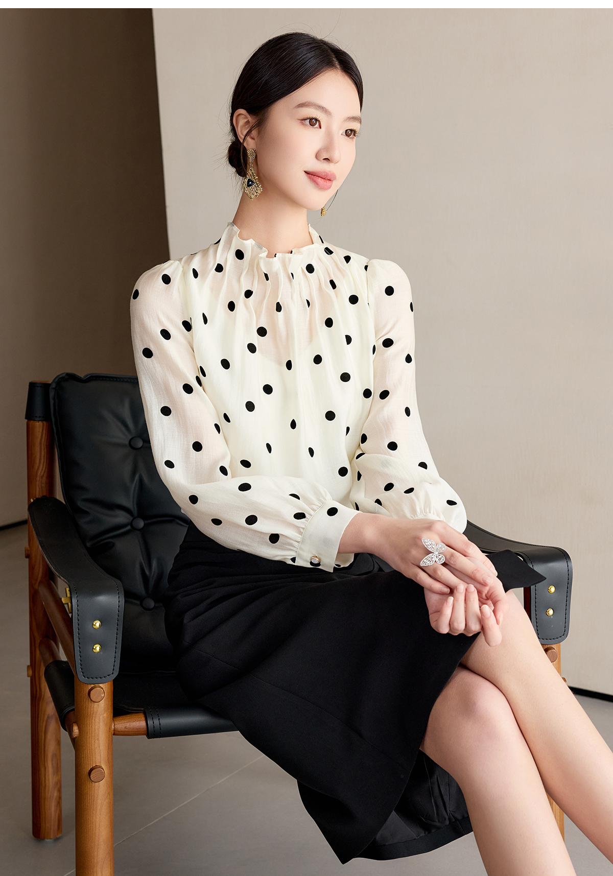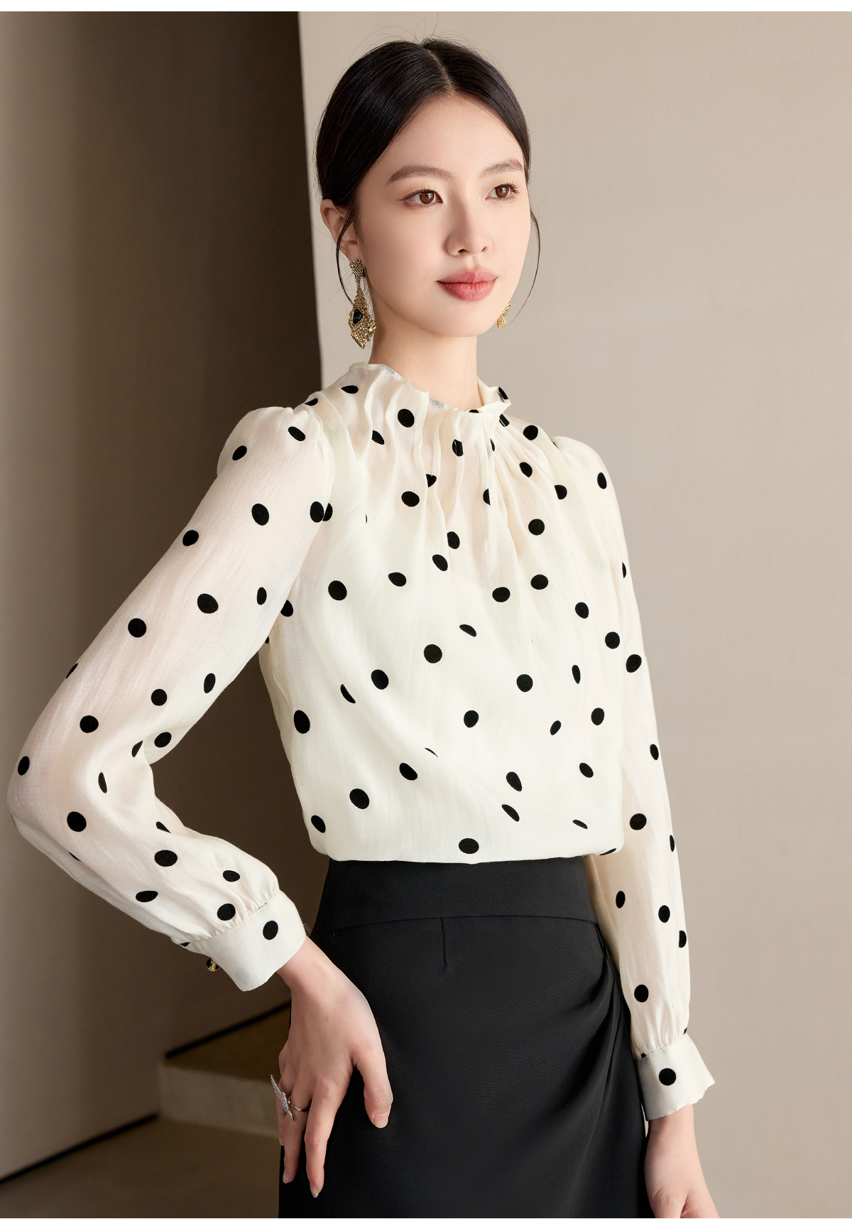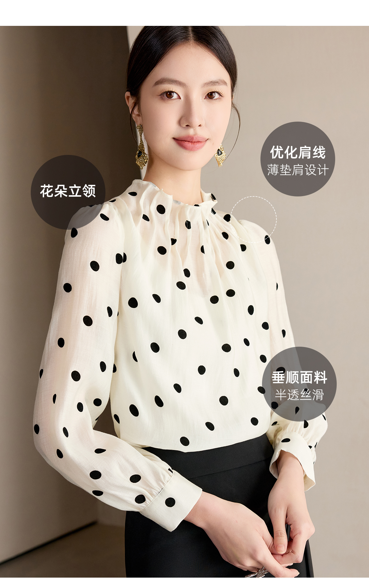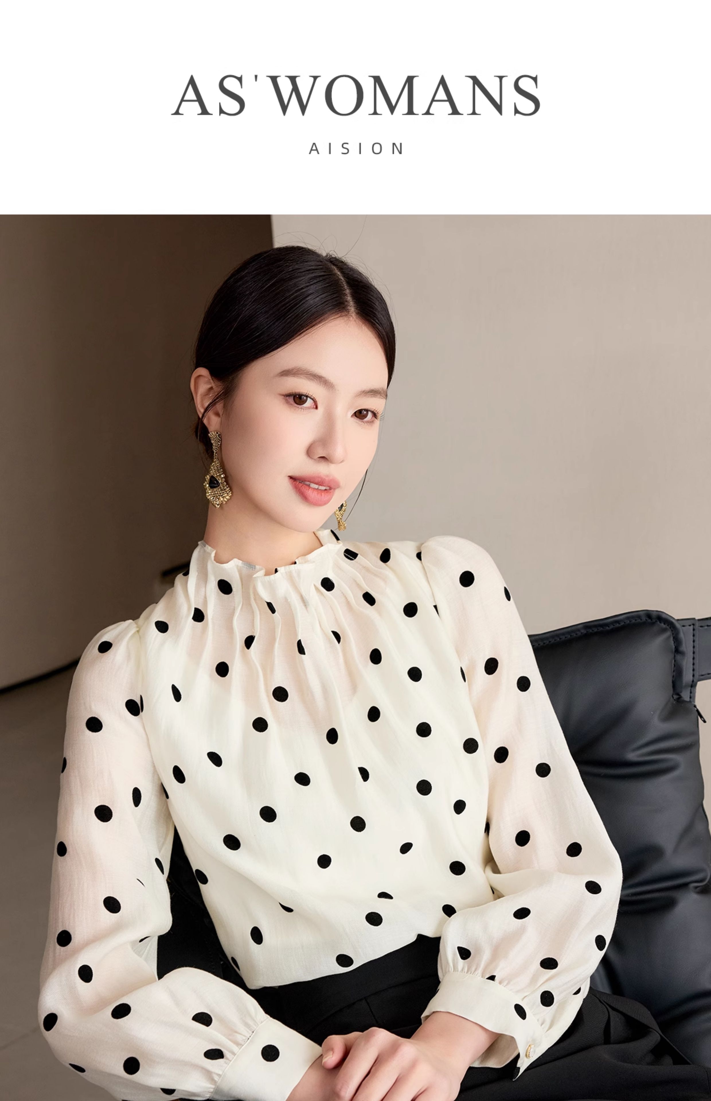 艾尚臣波点衬衫女高级感长袖防晒衬衣通勤气质职业上衣高端衬衣薄