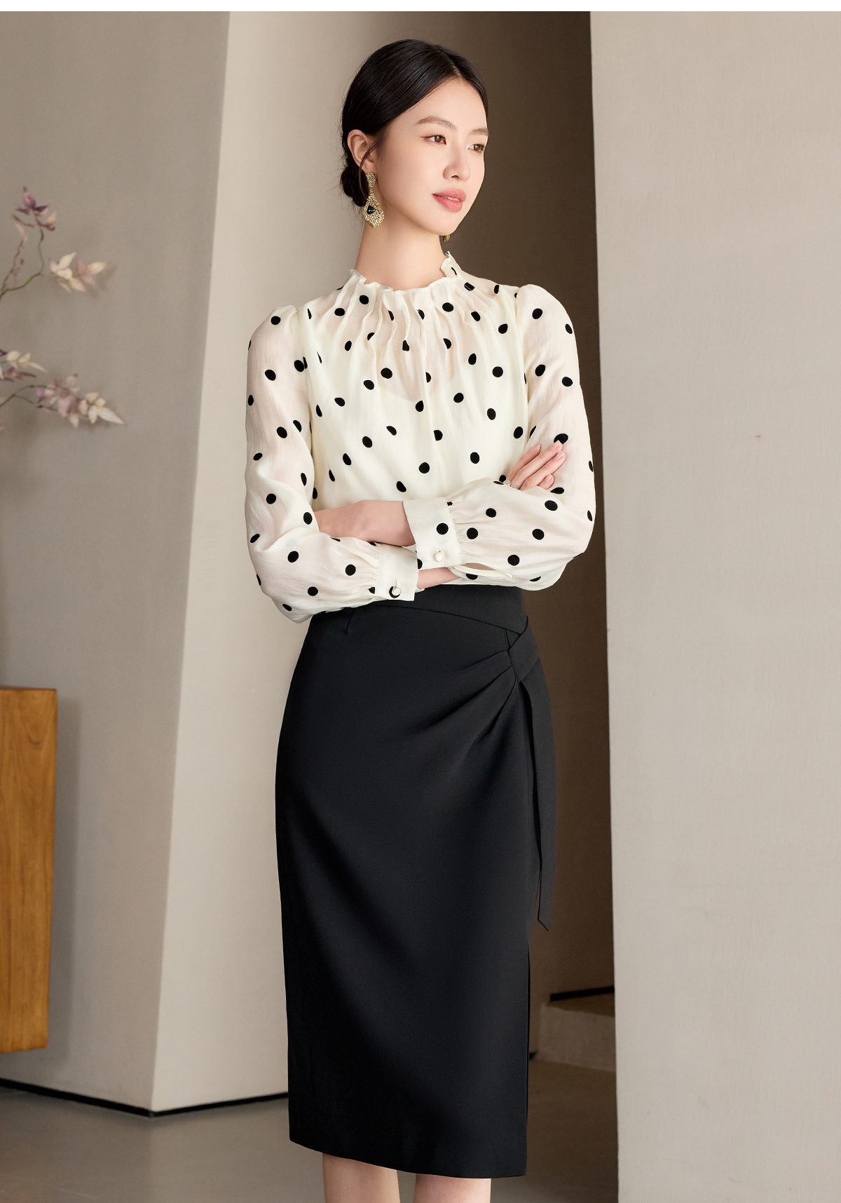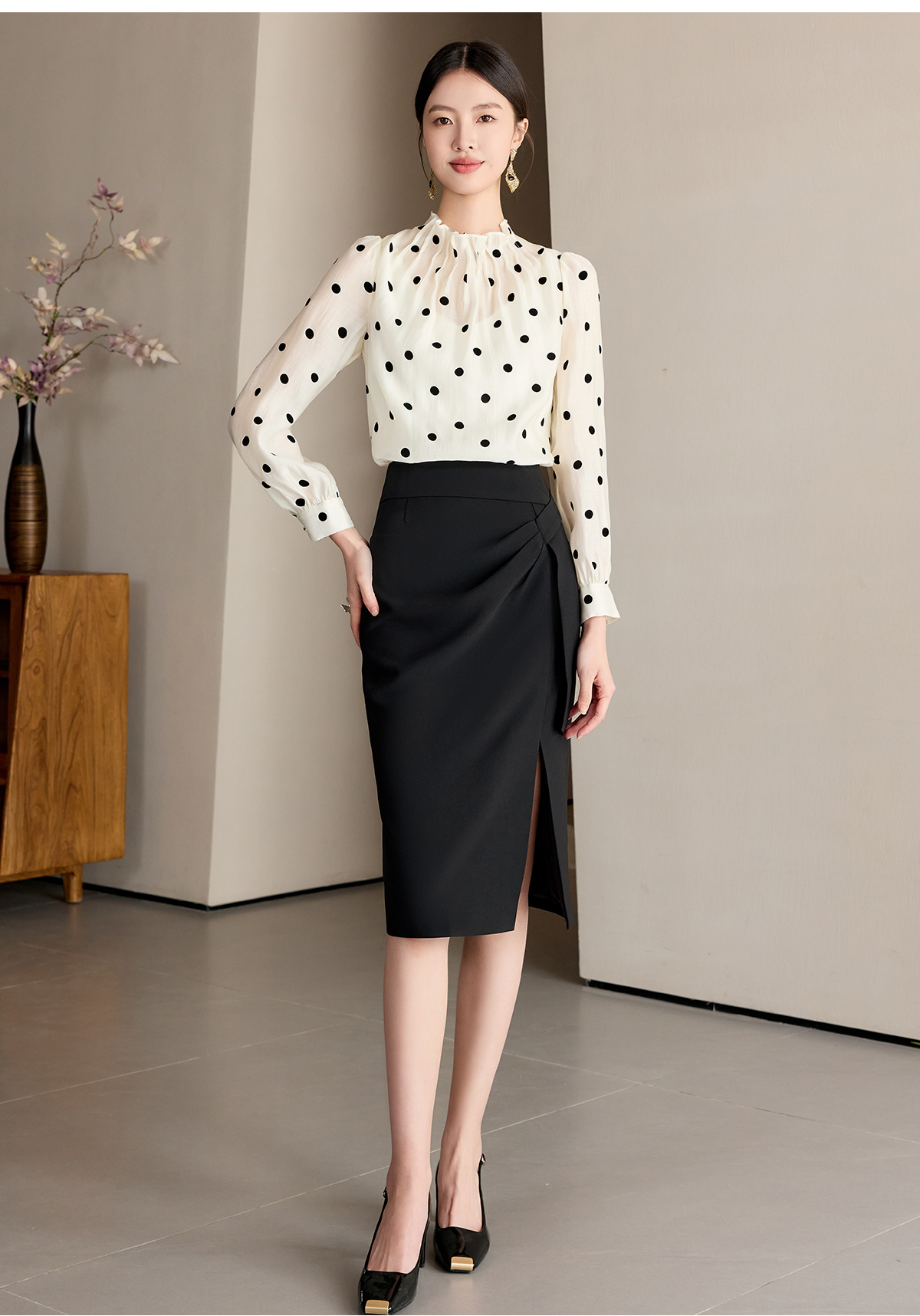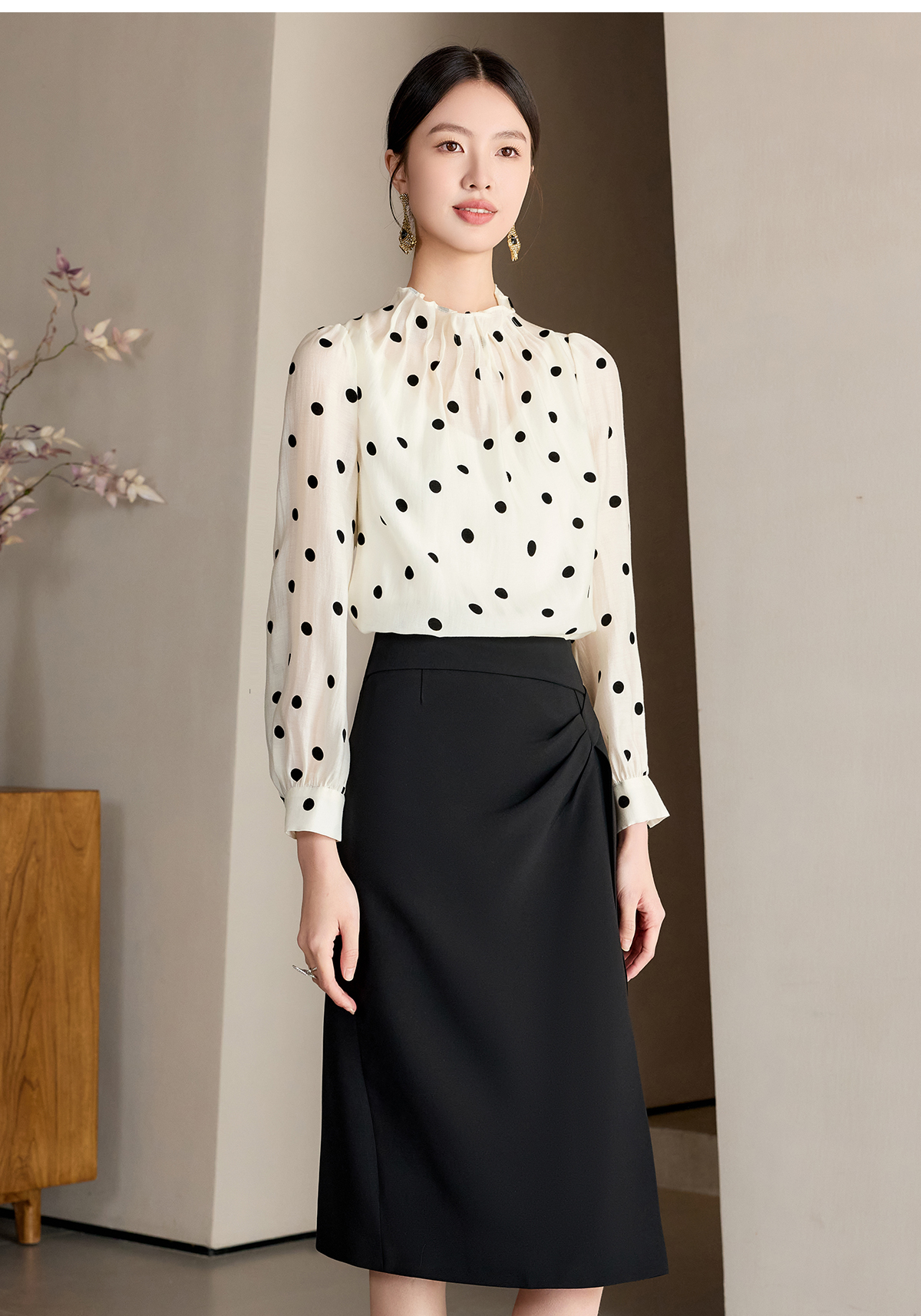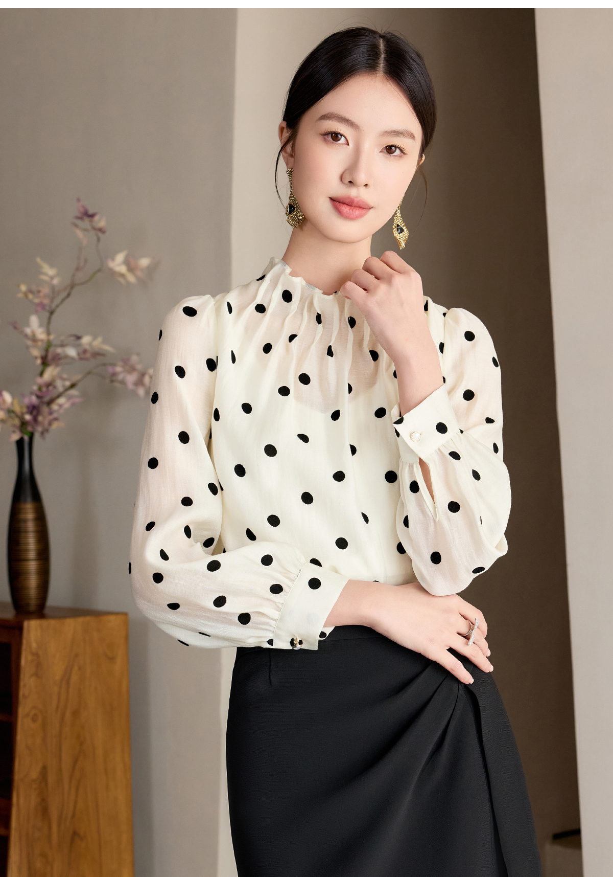 艾尚臣波点衬衫女高级感长袖防晒衬衣通勤气质职业上衣高端衬衣薄