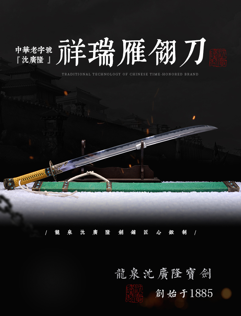 祥瑞雁翎刀 龙泉沈广隆宝剑 手工一体刀剑 未开刃