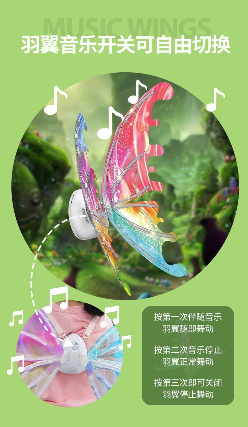 公主花仙子机械精灵翅膀森系儿童节天使灯光自动电动翅膀