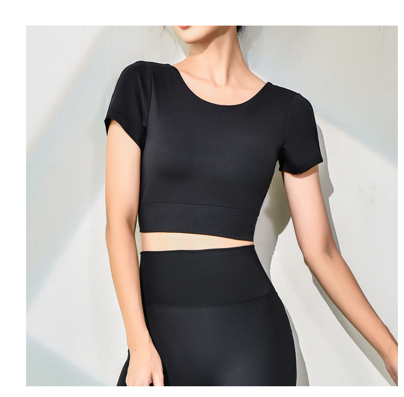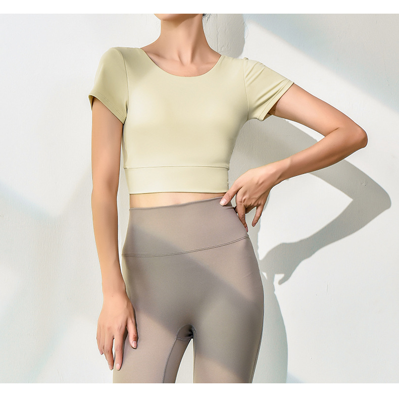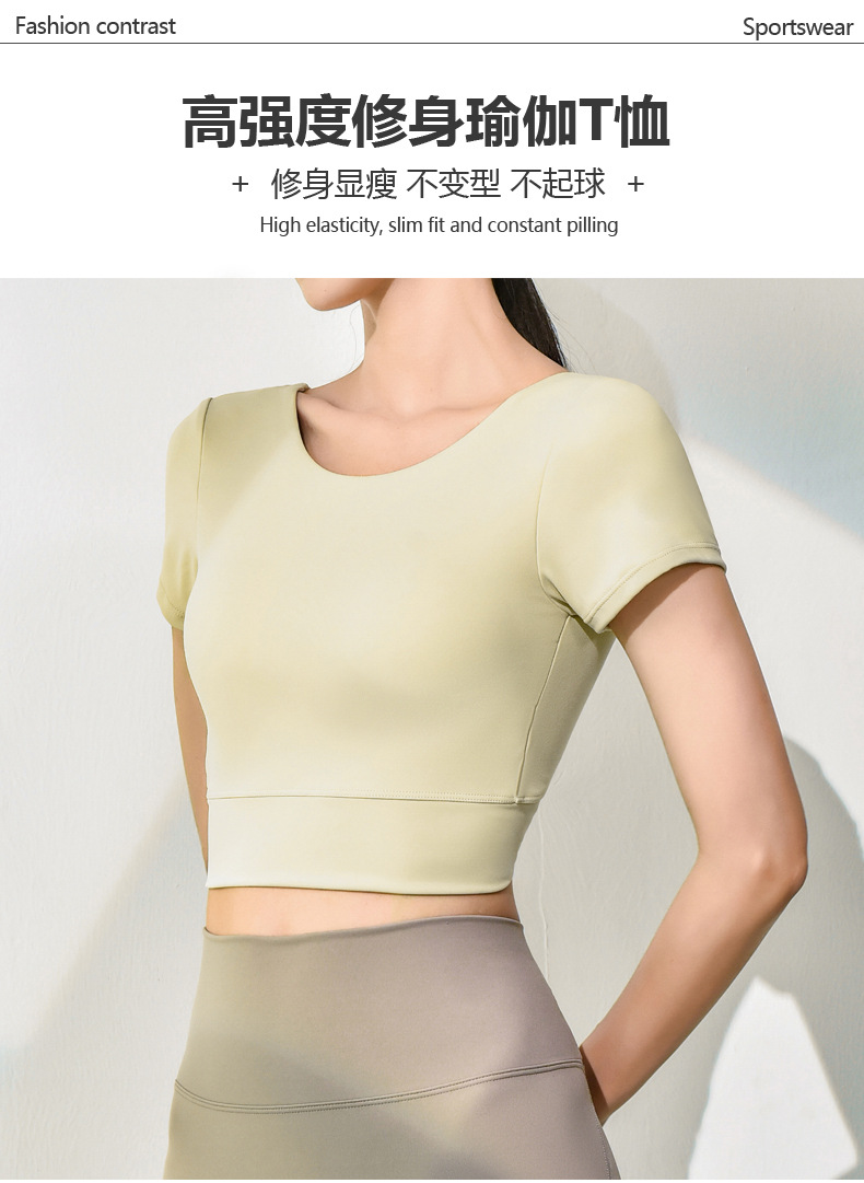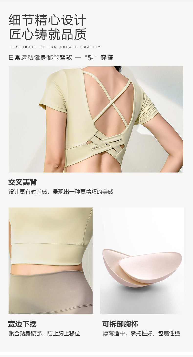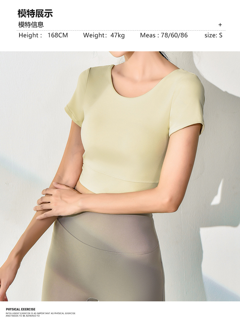 跃牌【健舞健美】系列新款美背露脐短款带胸垫瑜伽短袖8311(可拆胸垫)
