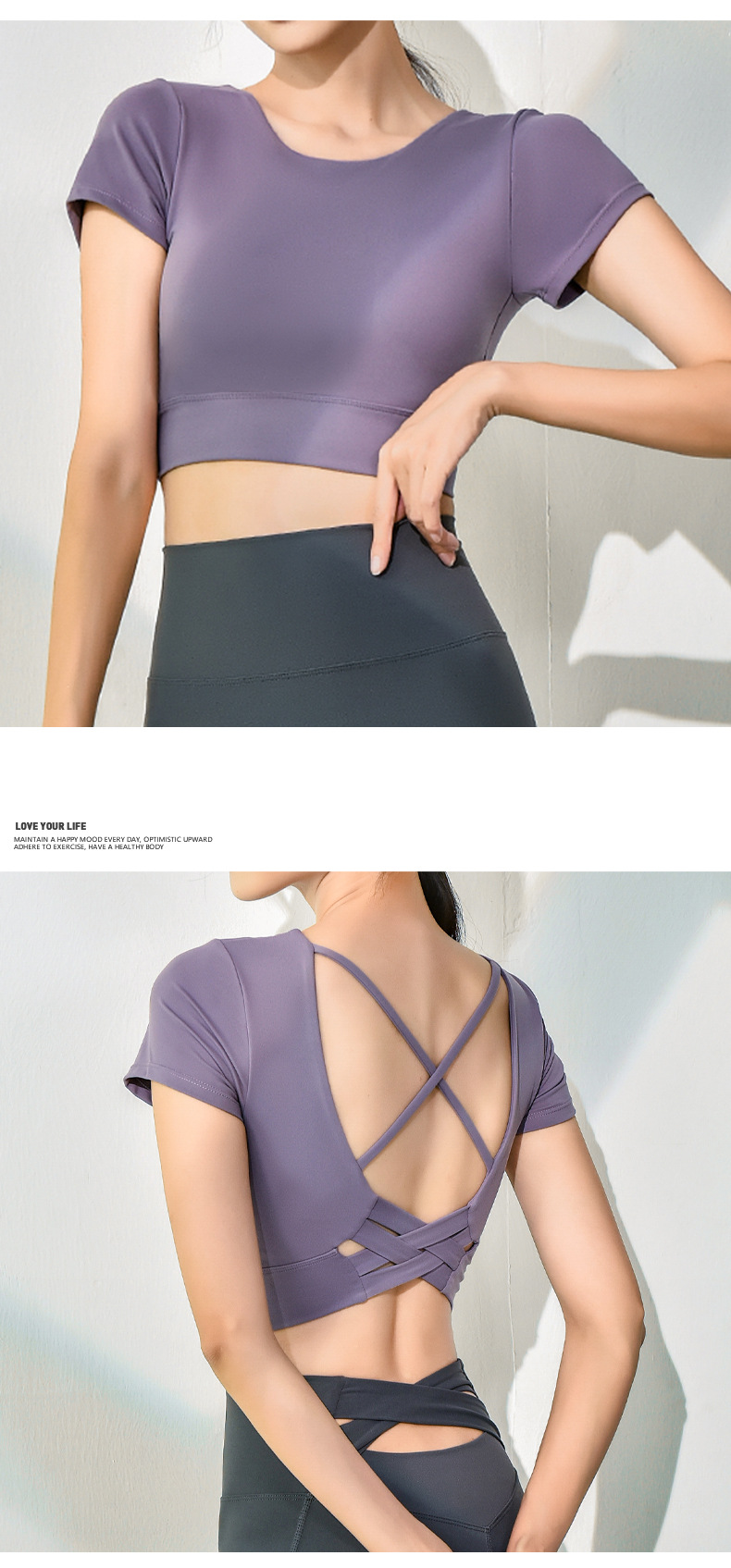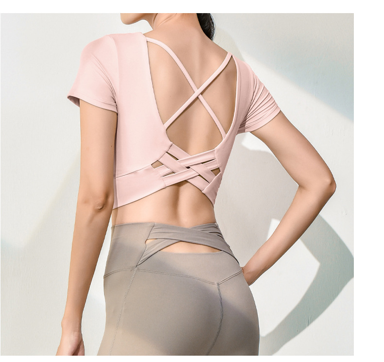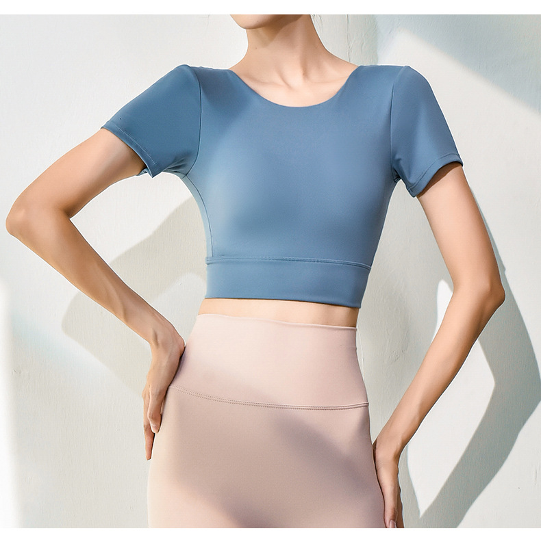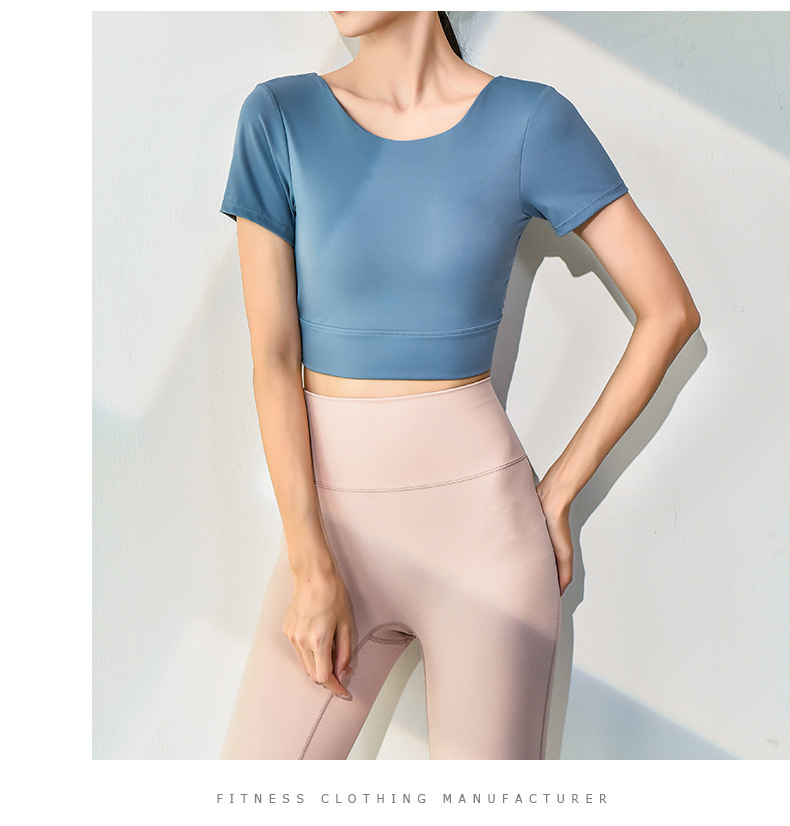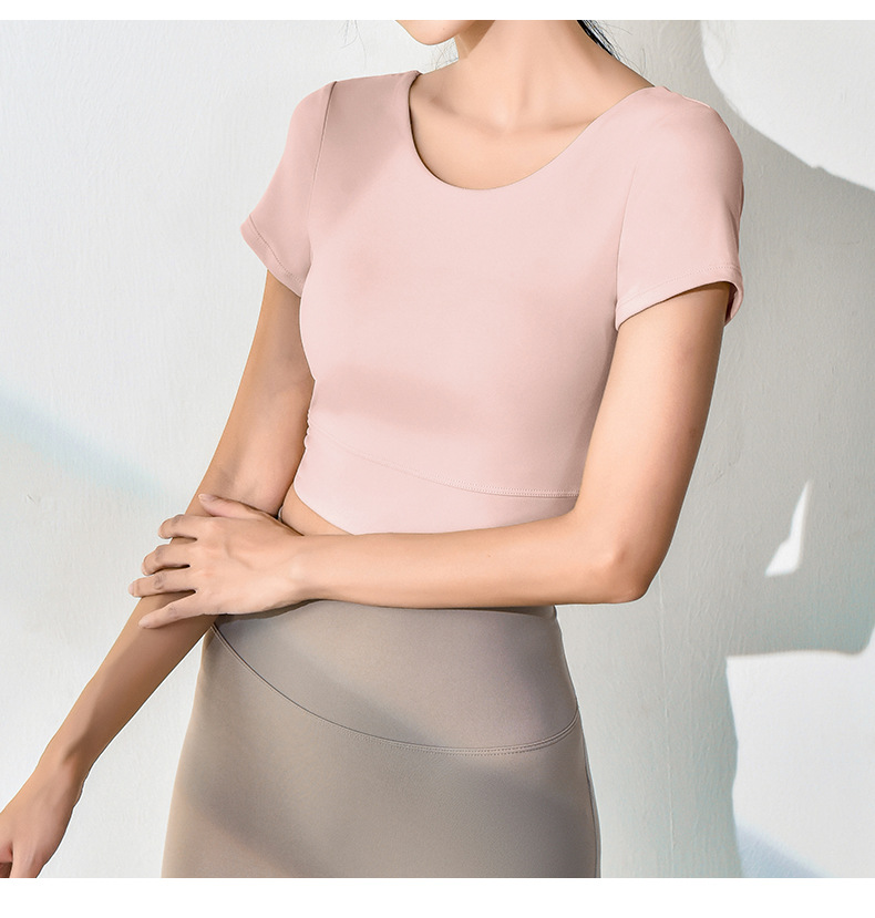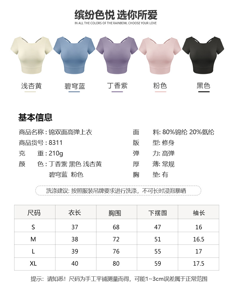 跃牌【健舞健美】系列新款美背露脐短款带胸垫瑜伽短袖8311(可拆胸垫)