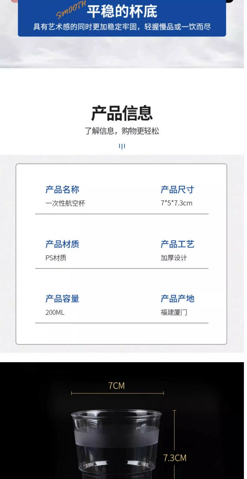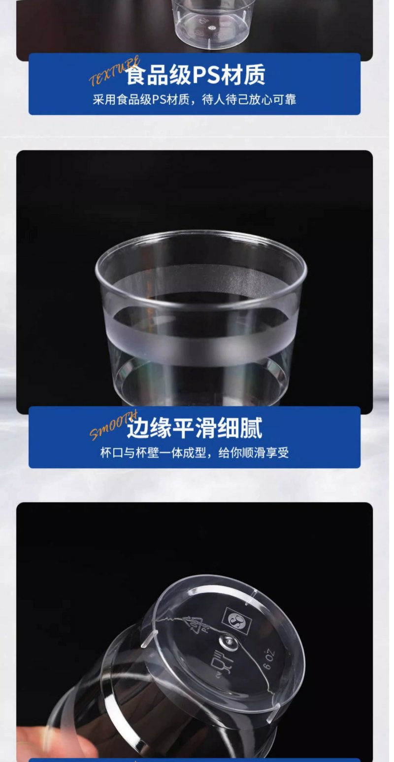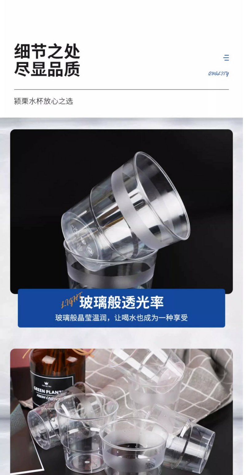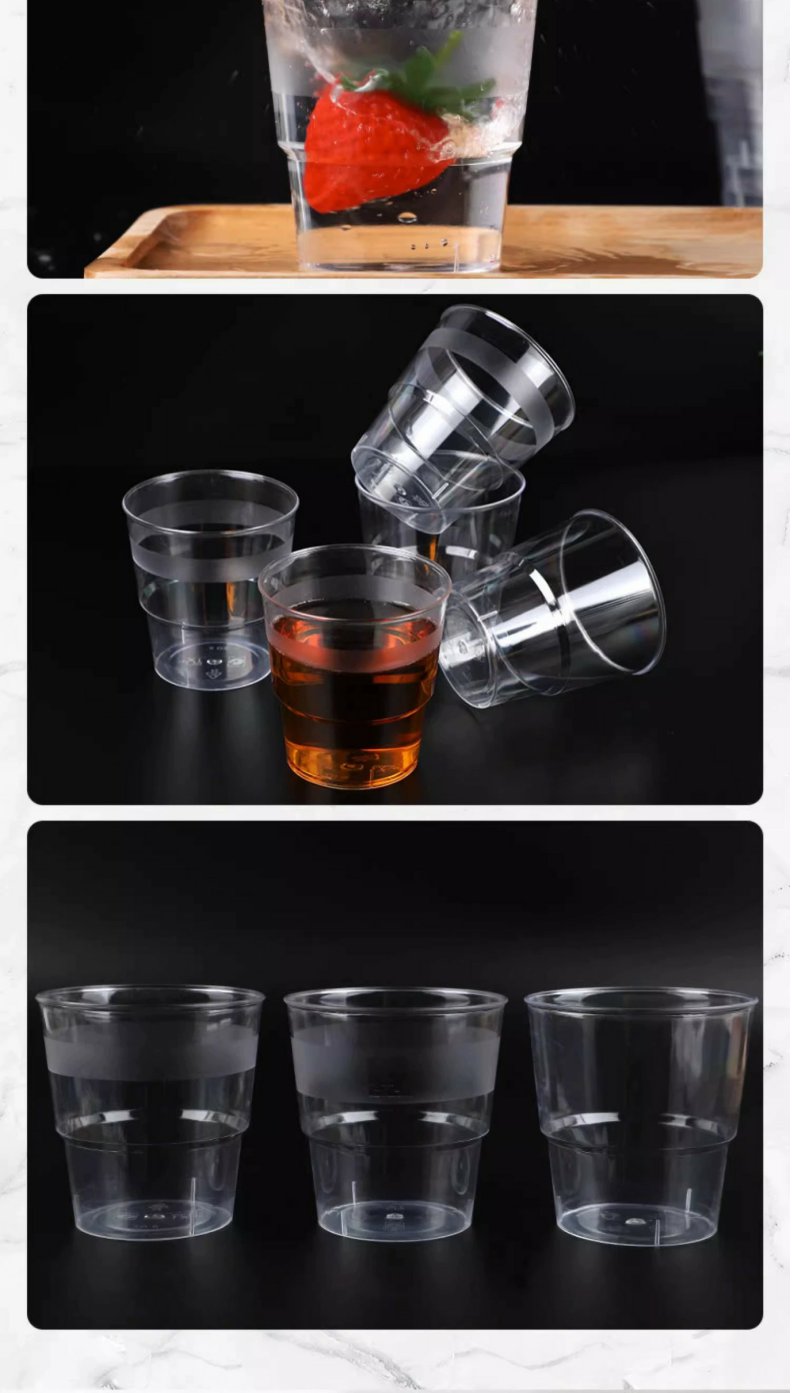 一次性杯子单个200ml加厚航空水晶杯子 20个透明塑料杯酒杯啤酒杯硬质耐高温卫生