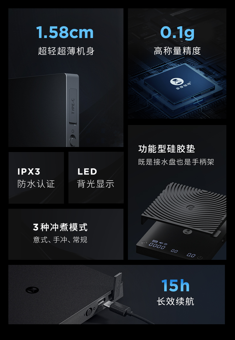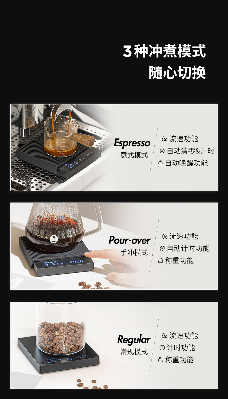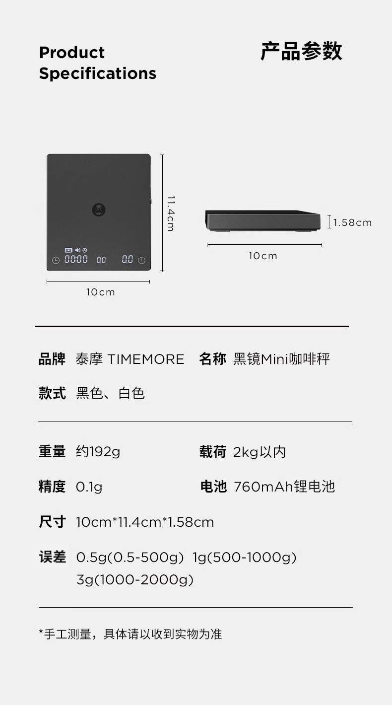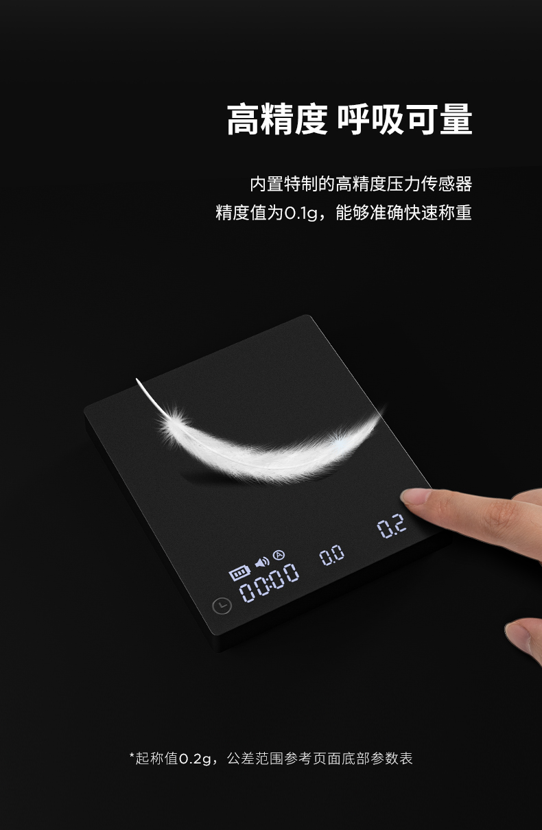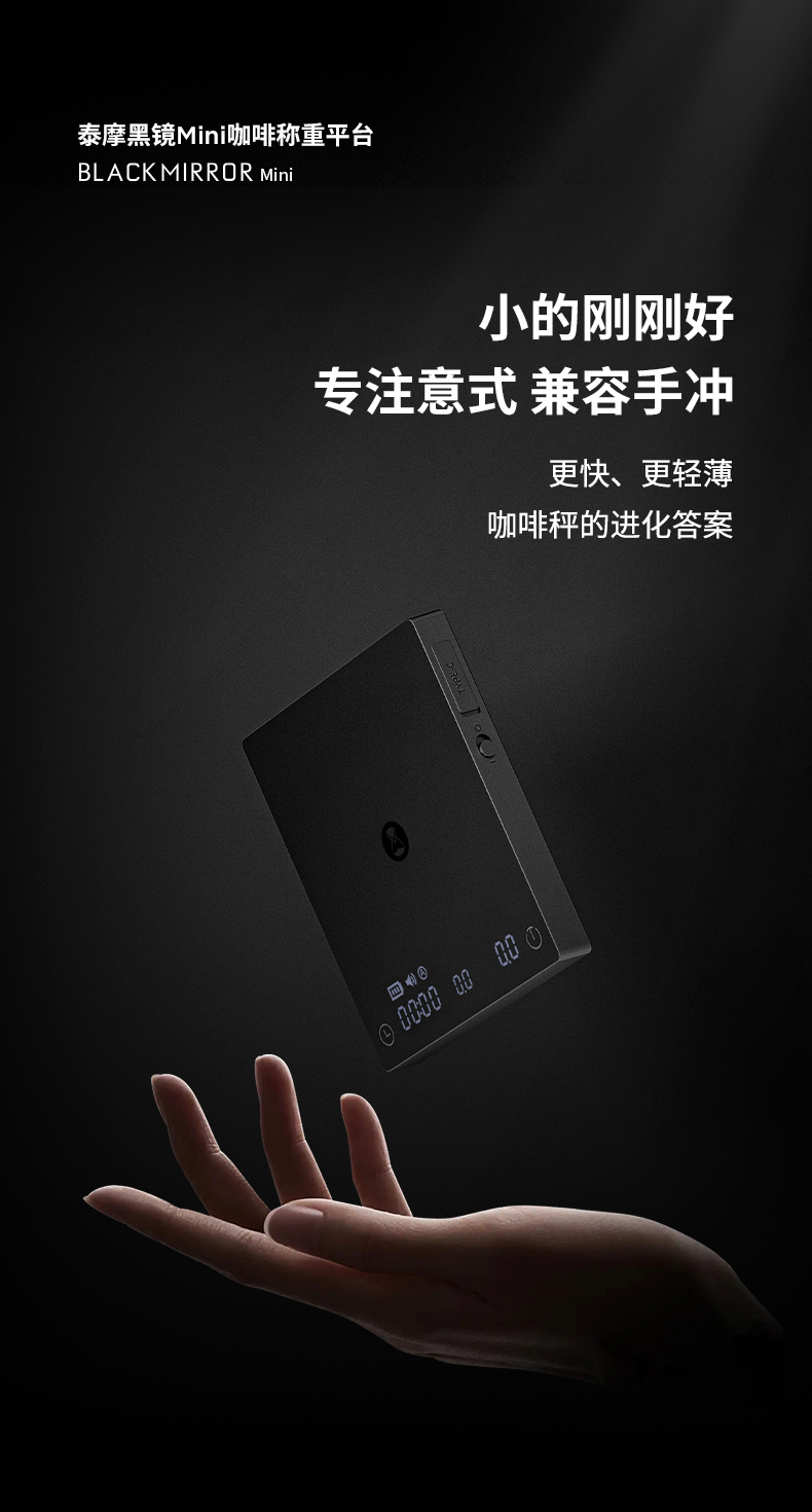 泰摩 黑镜MINI咖啡电子秤迷你智能称重 意式咖啡手冲电子称带流速