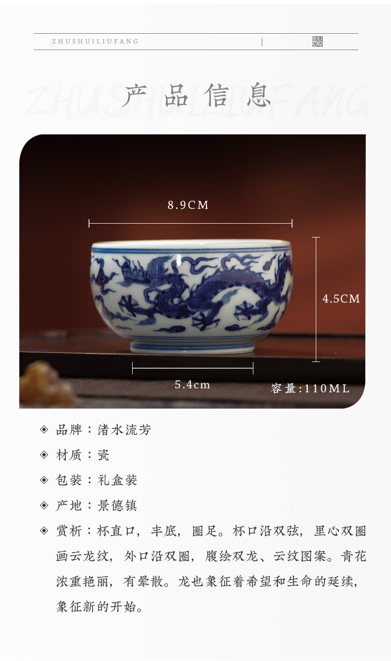 渚水流芳青花云龙纹大圆杯(缺货)