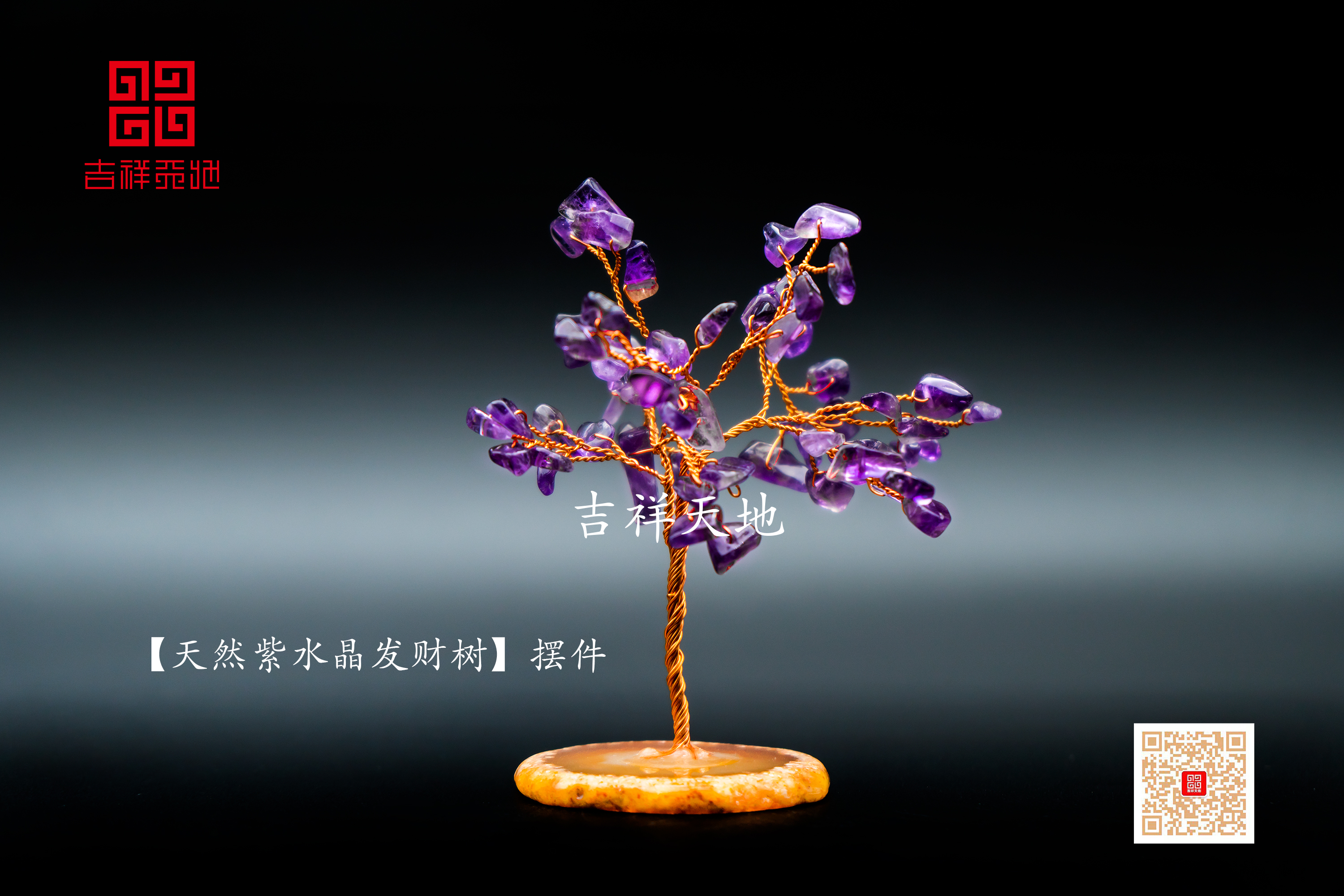 水晶发财树办公桌摆件