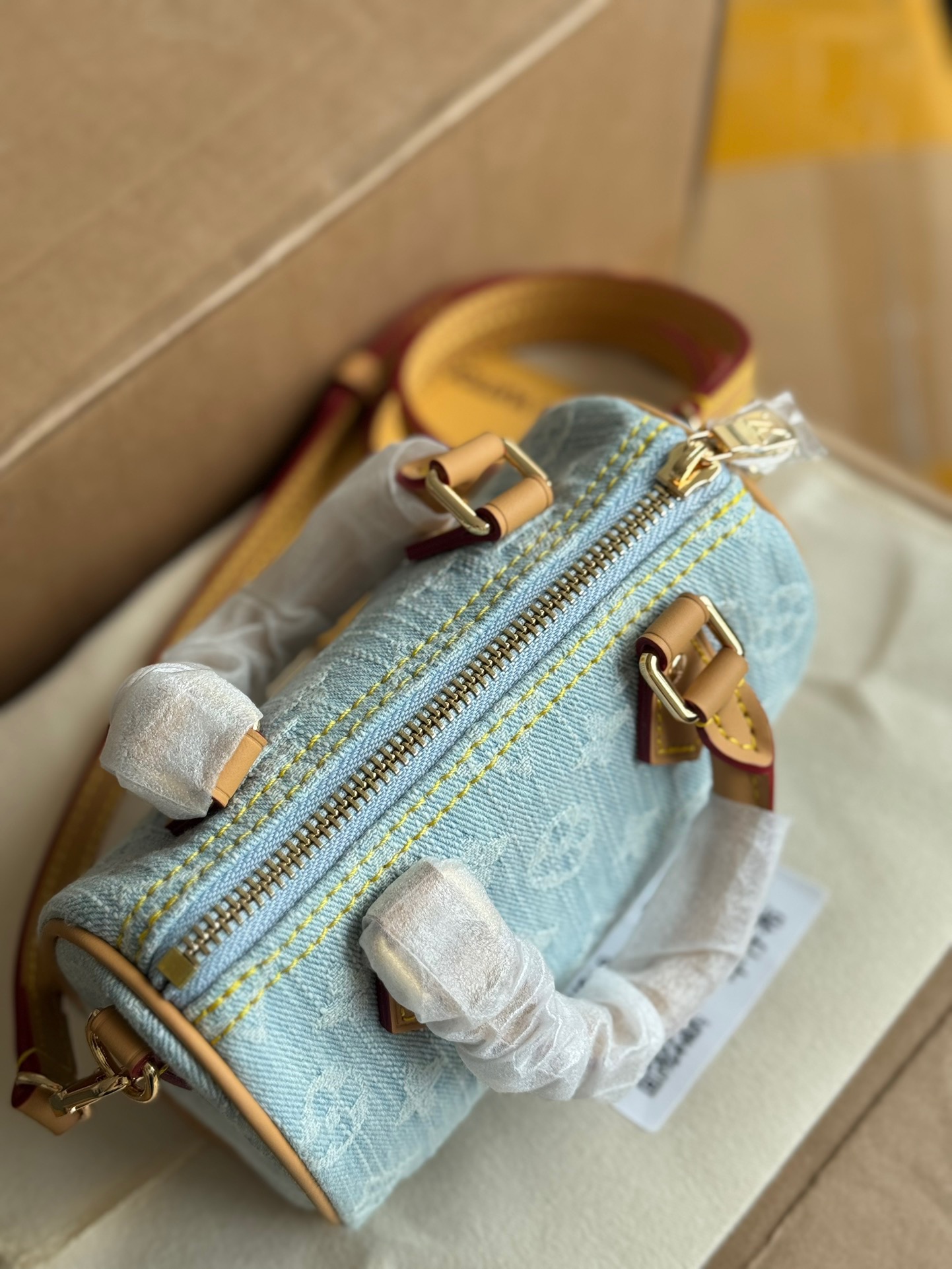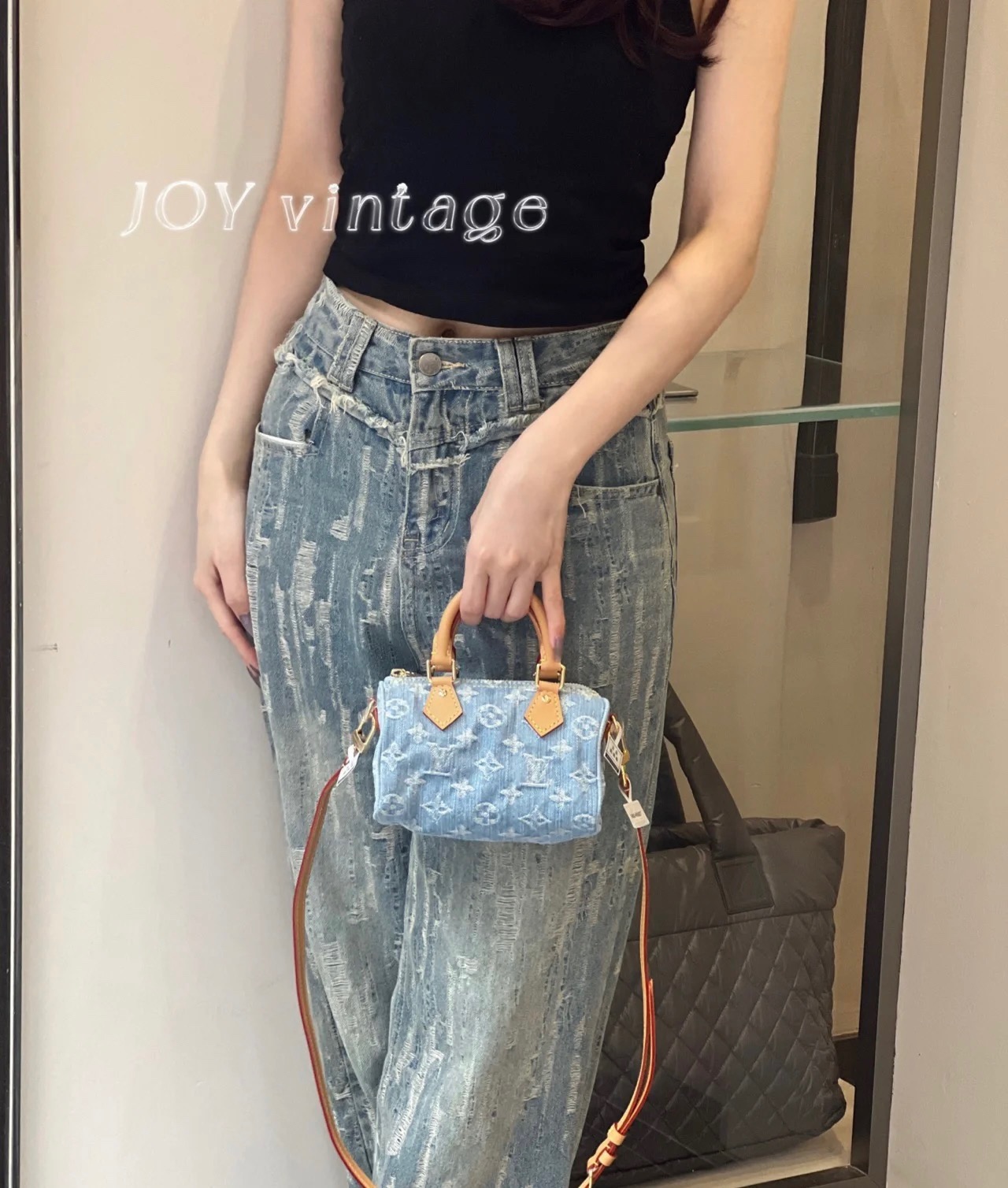 丹宁浅色牛仔不是废包可以放下手机 肩带可以调节 并且可以拆卸 上身真香即保留了的可爱 又实现了非常可观的容量