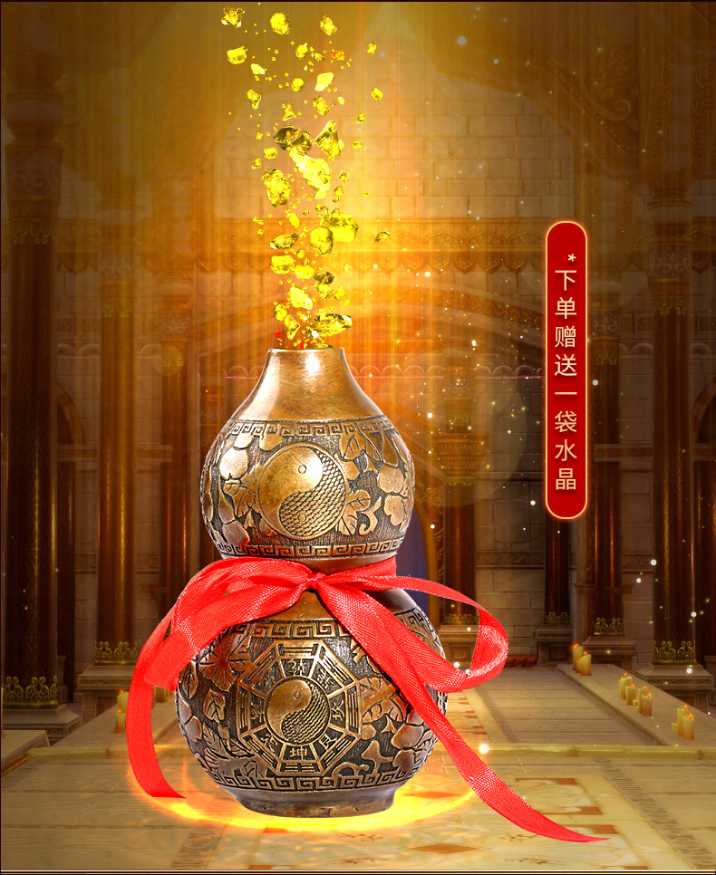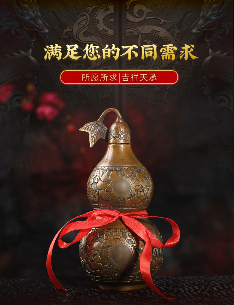 【祈愿吉品】铜葫芦摆件大门口五黄二黑福禄开口吉祥物