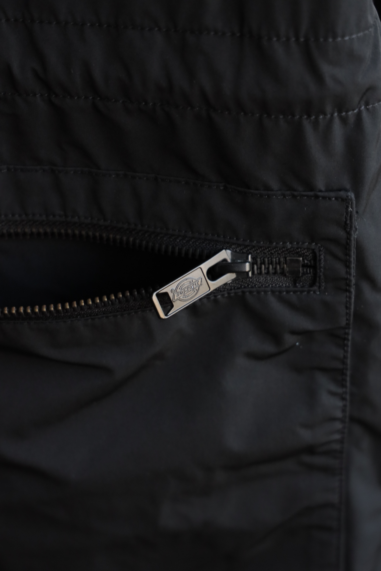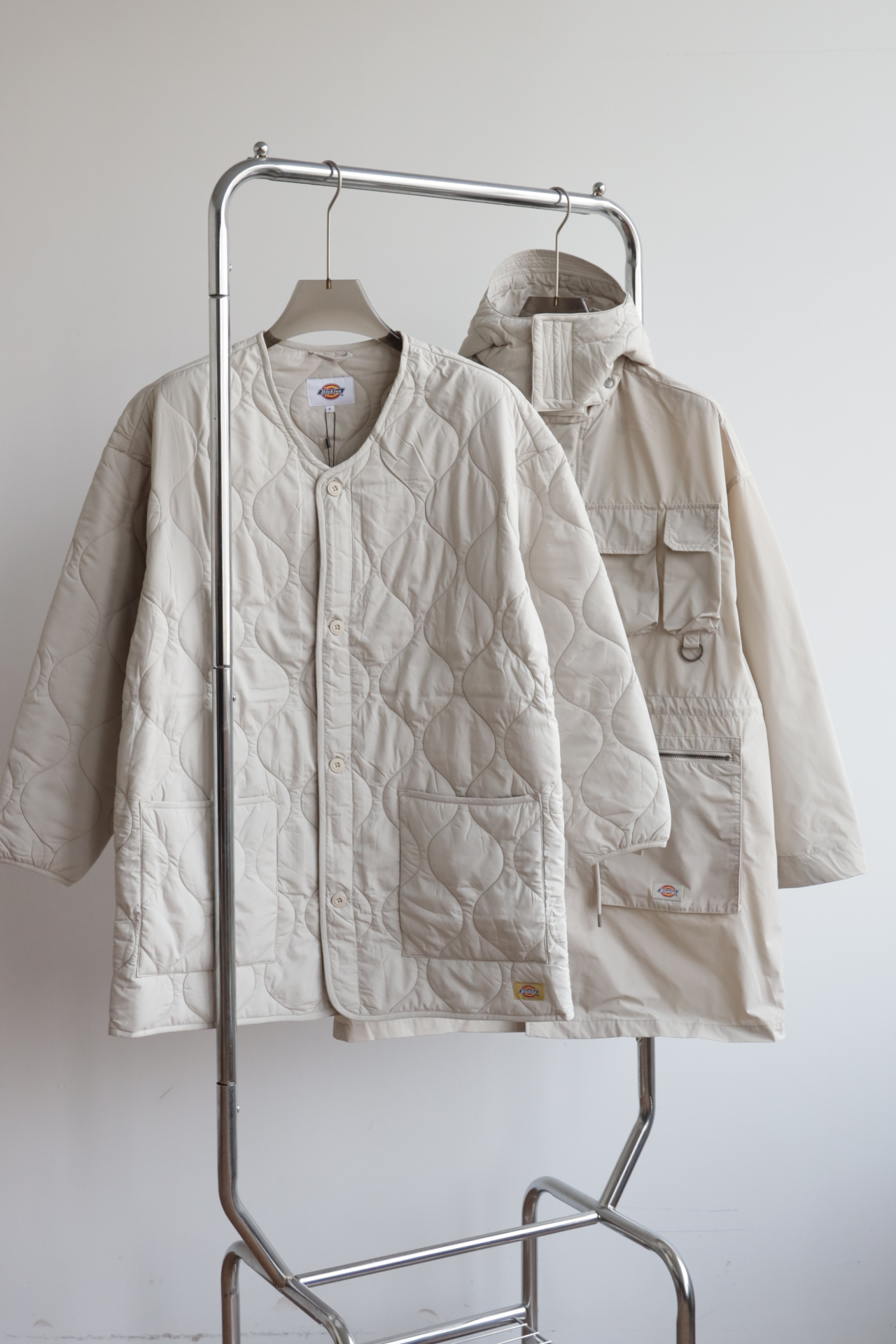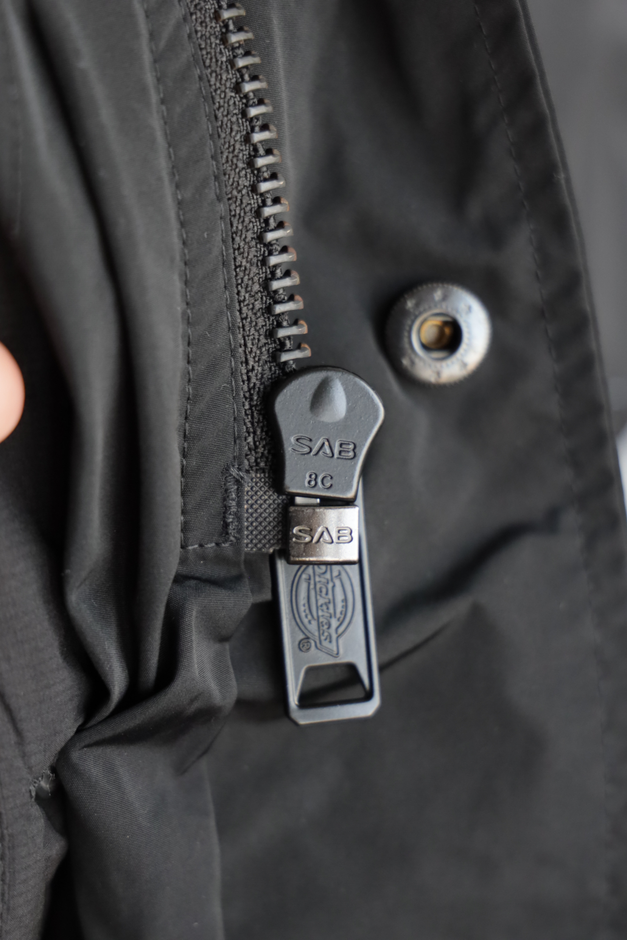 两侧大口袋设计实用,金属拉链和按扣配件,落肩袖
