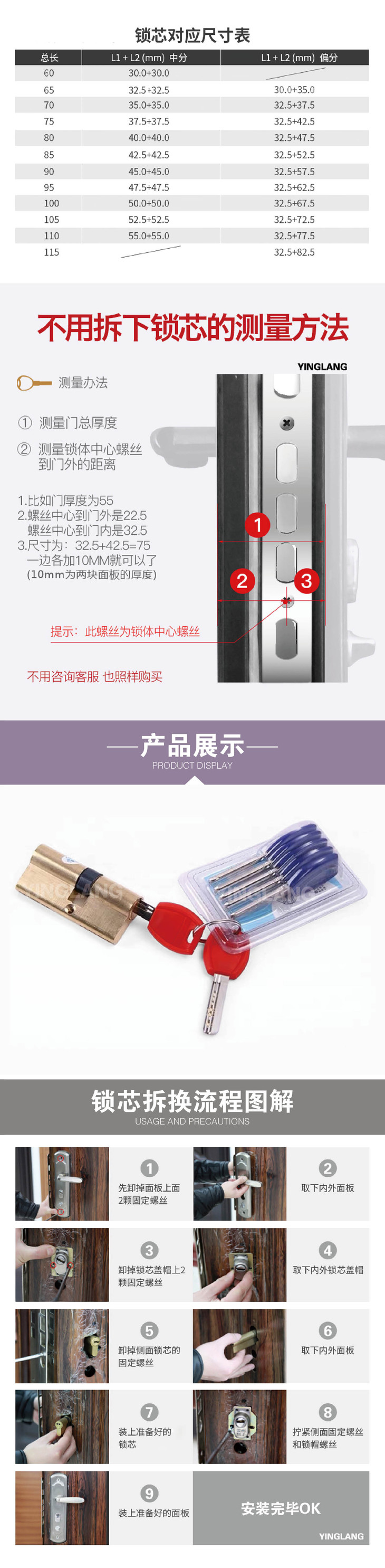 〖B418〗大柄ABC铜锁芯(90偏)