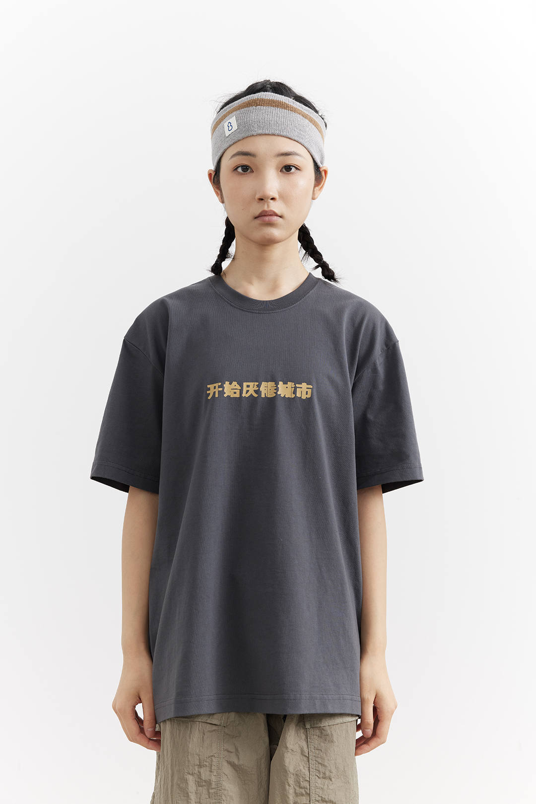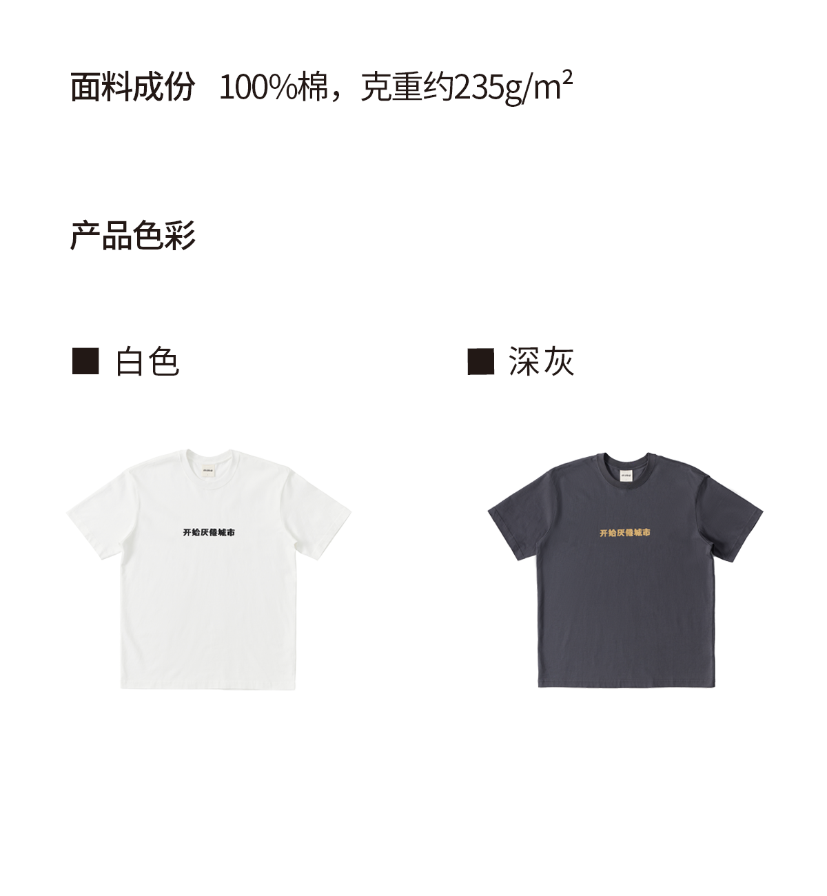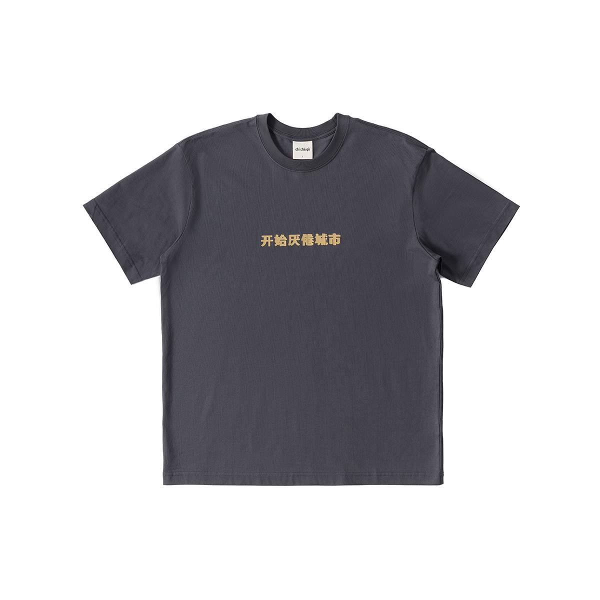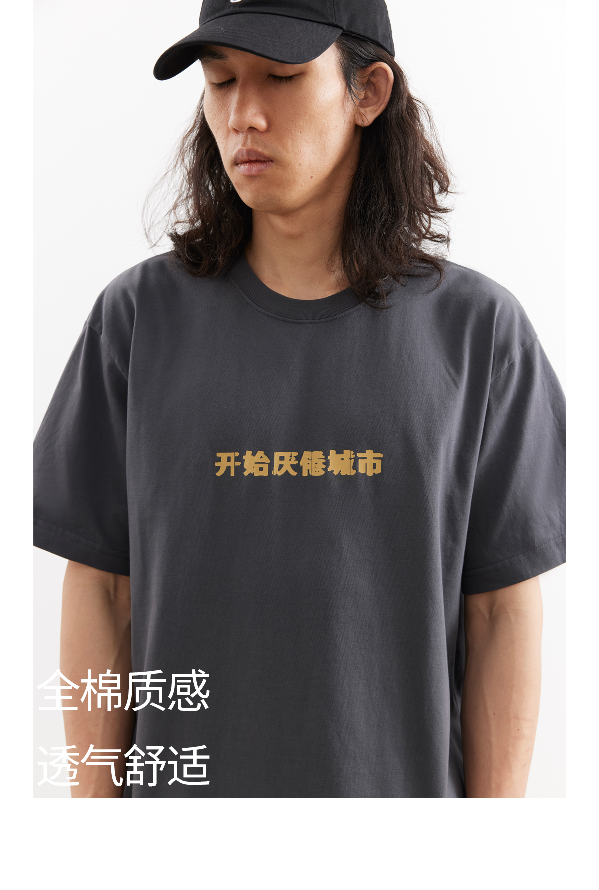 吃茶去chichaqu2025新款全棉圆领短袖T恤男女宽松印开始厌倦城市