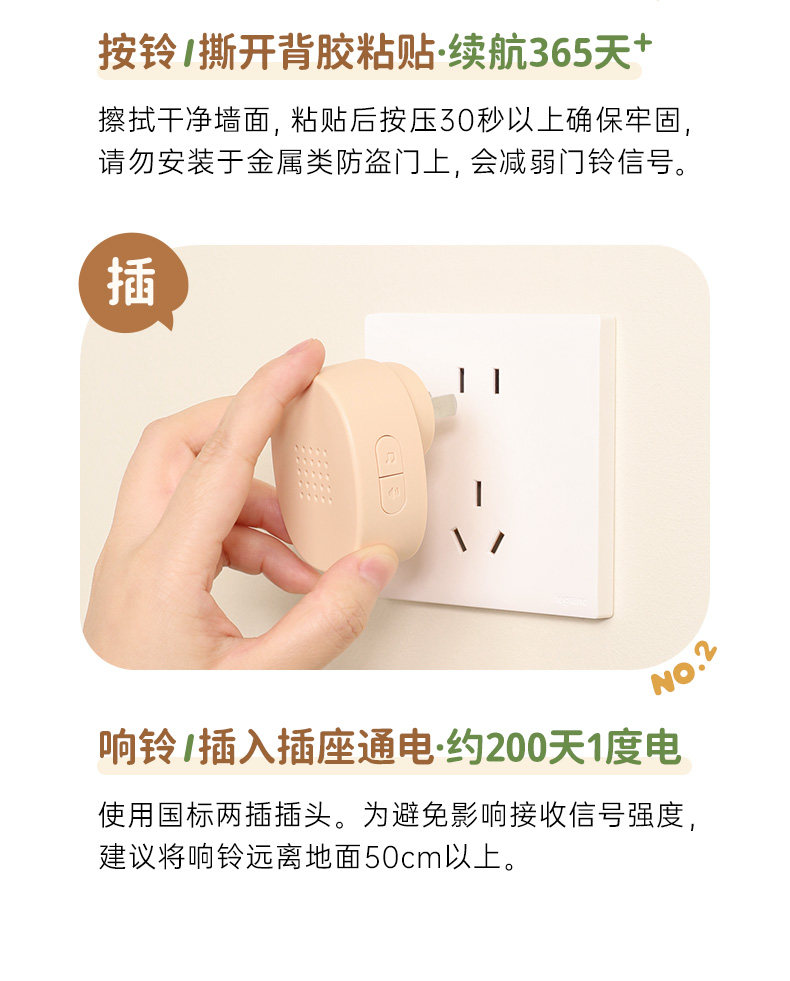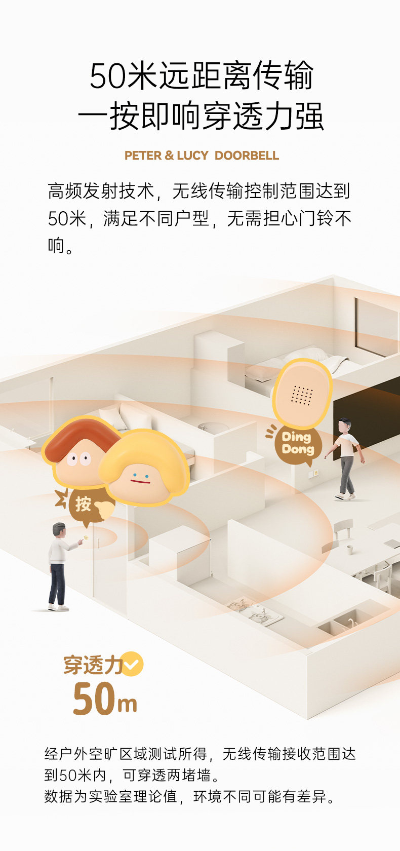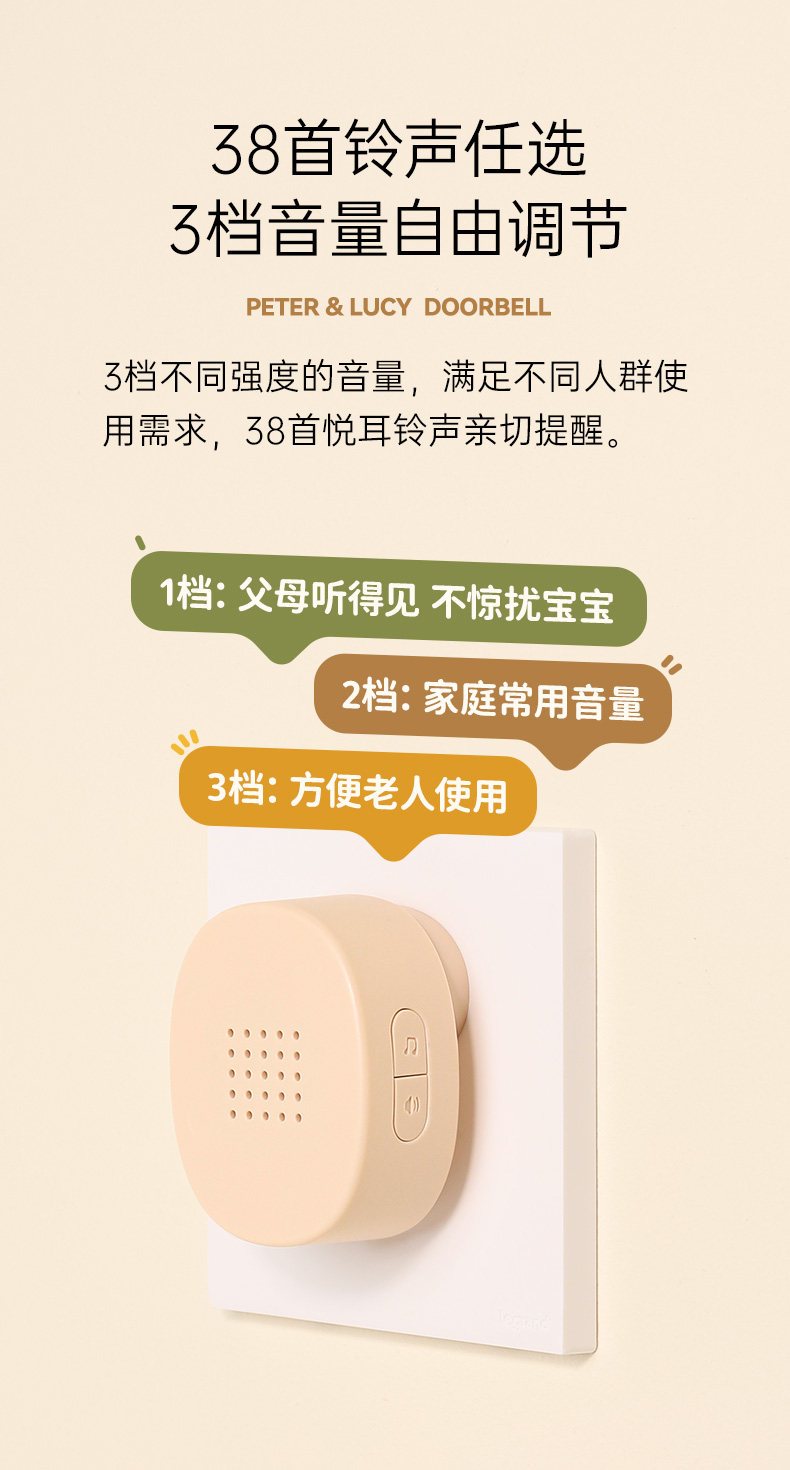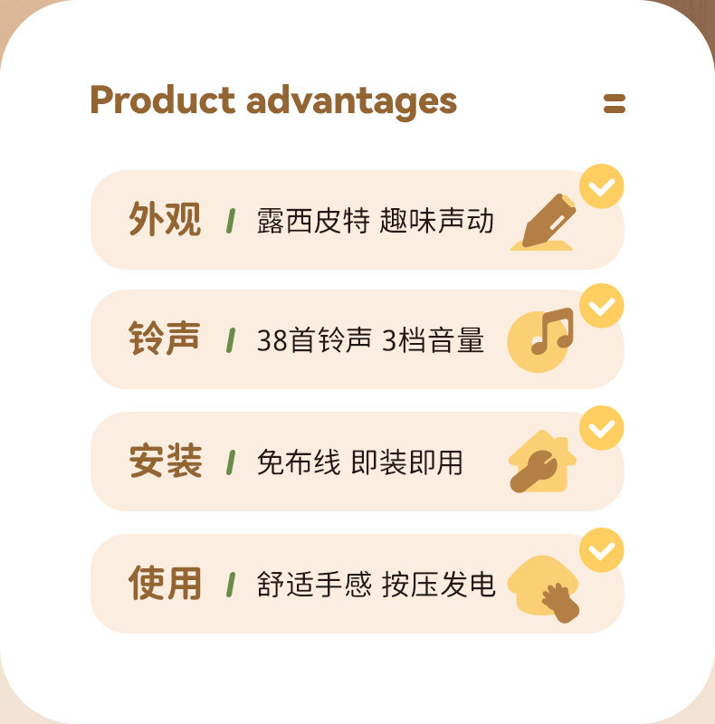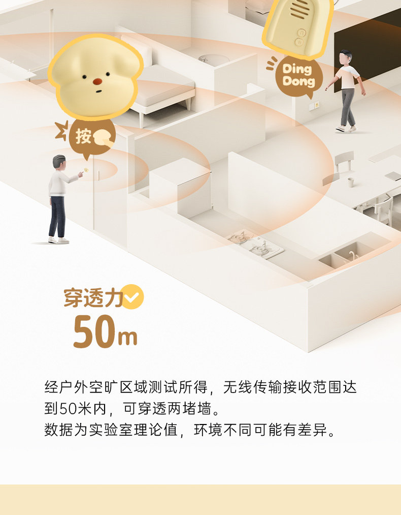 MUID电子无线家用超远距可爱门铃 老人看护呼叫器