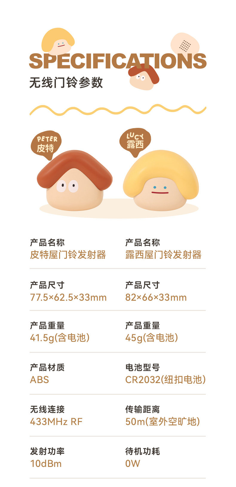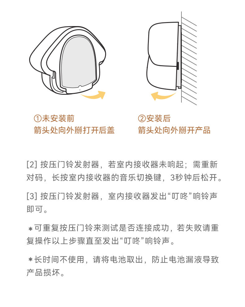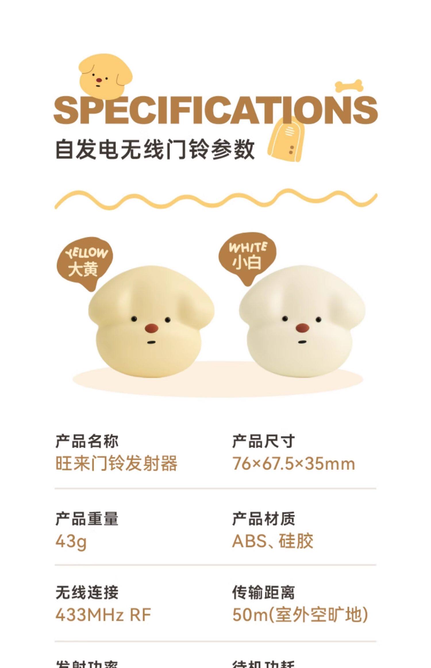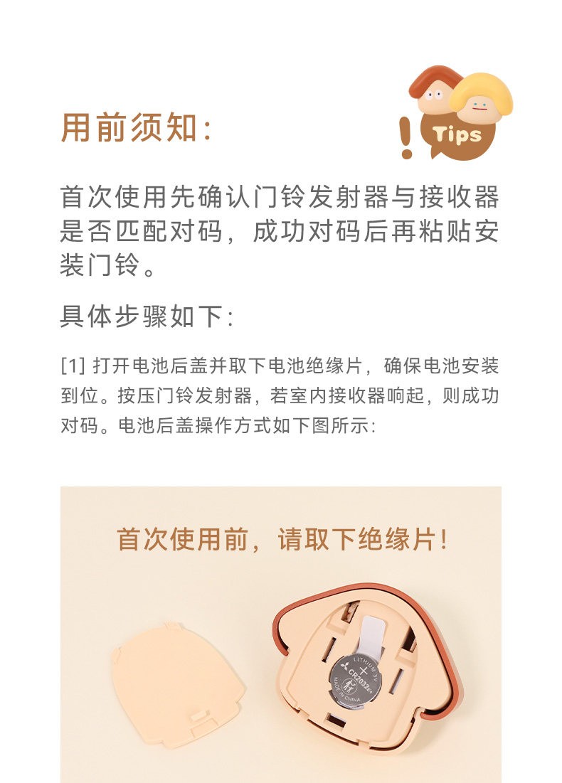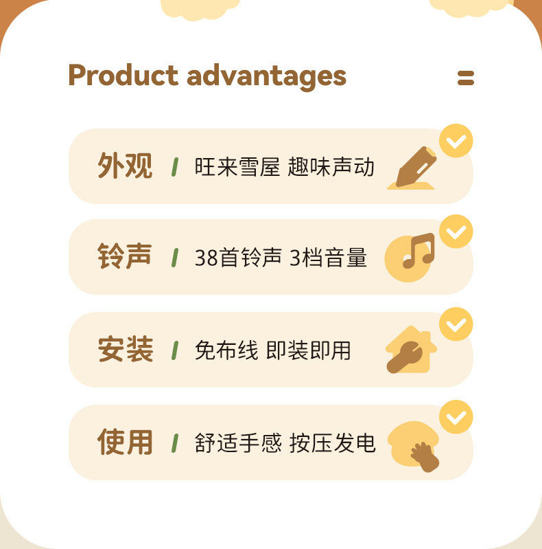 MUID电子无线家用超远距可爱门铃 老人看护呼叫器