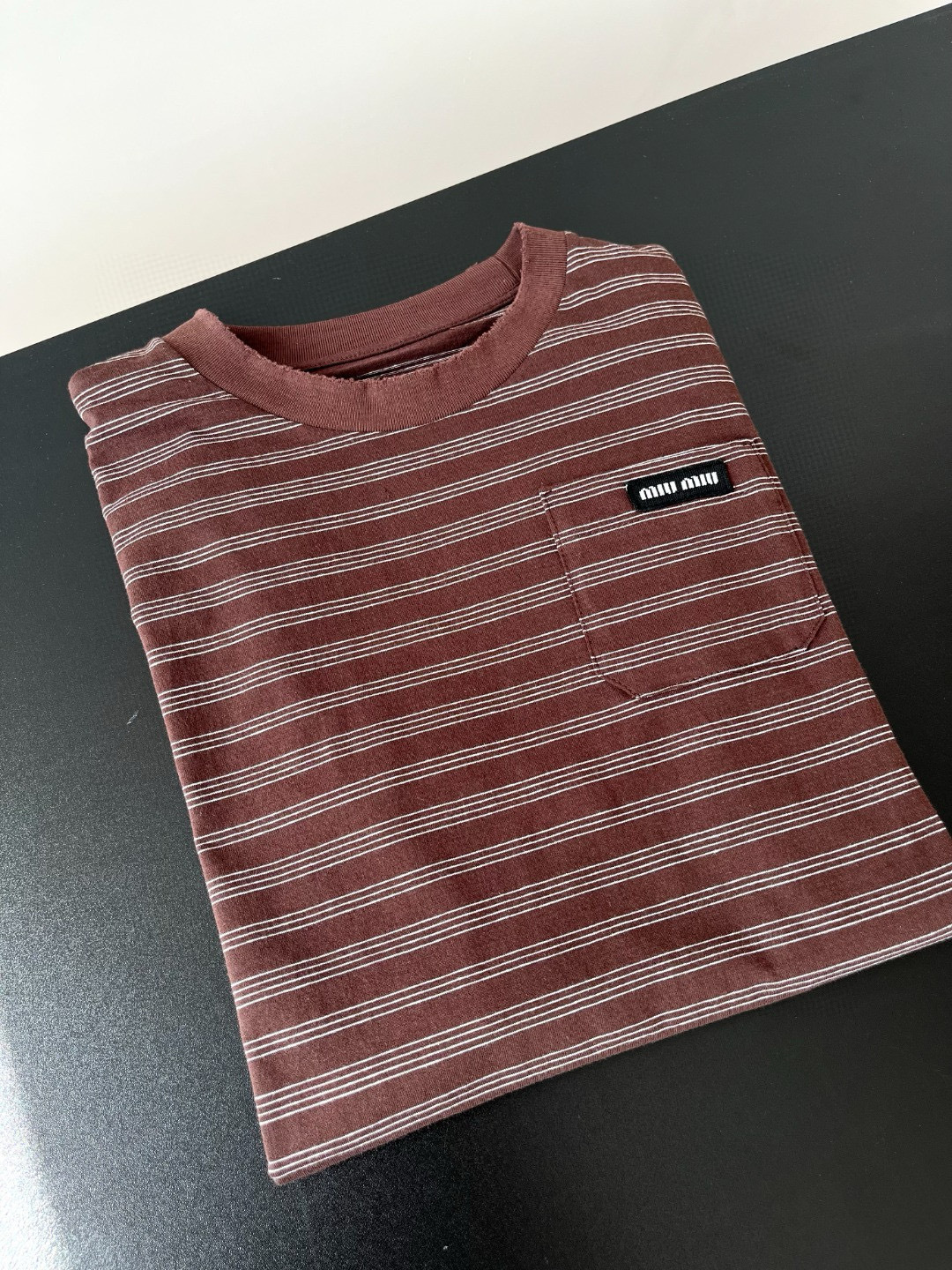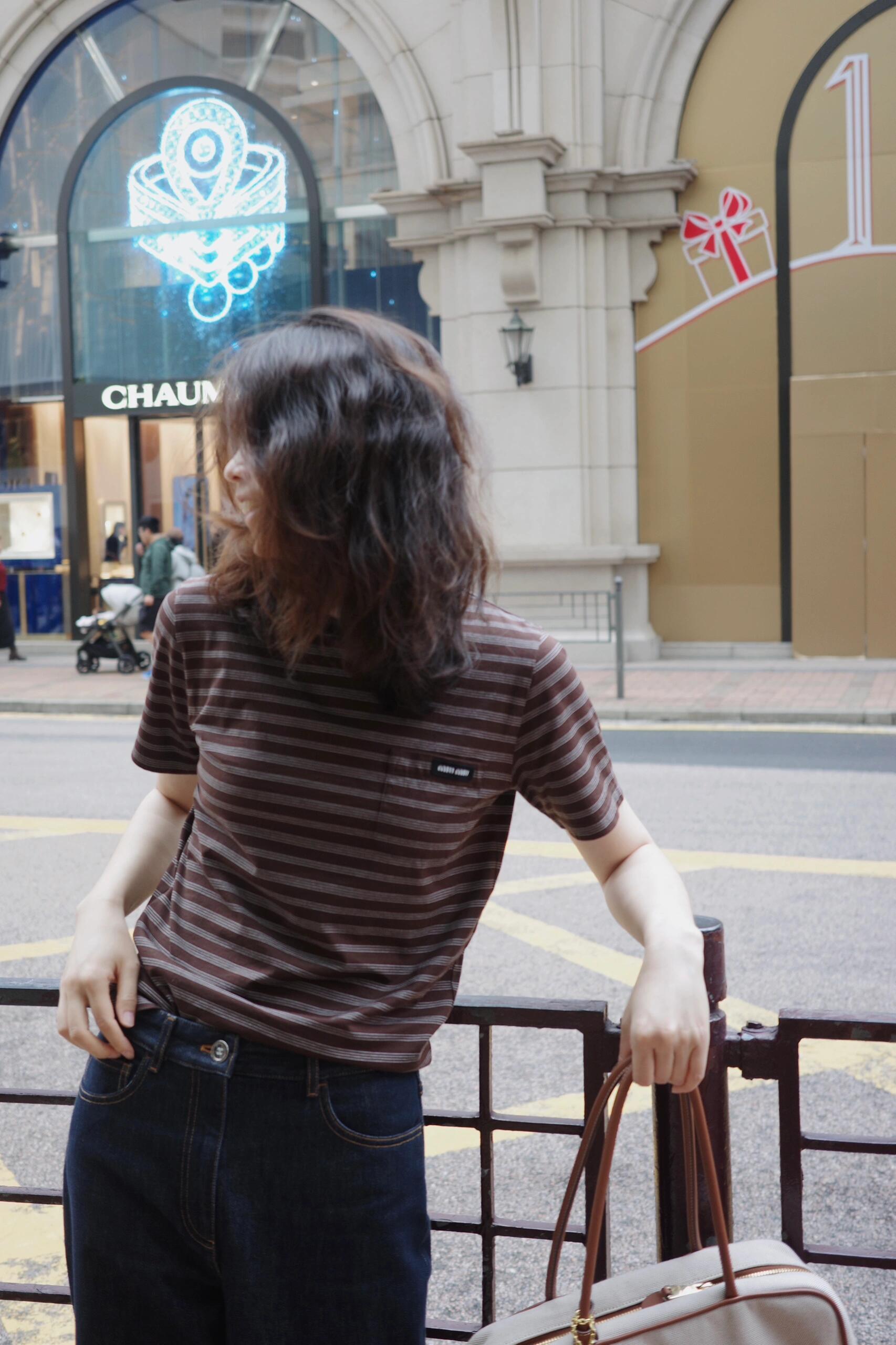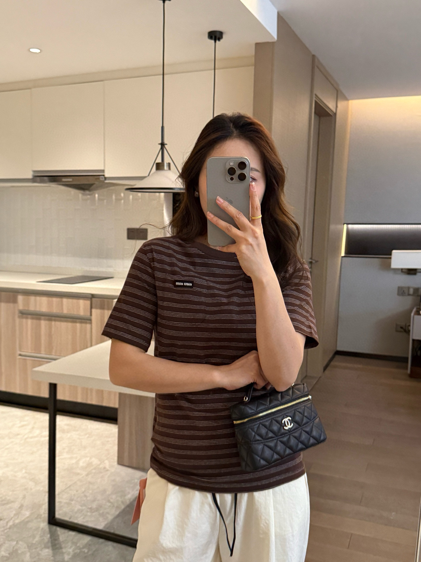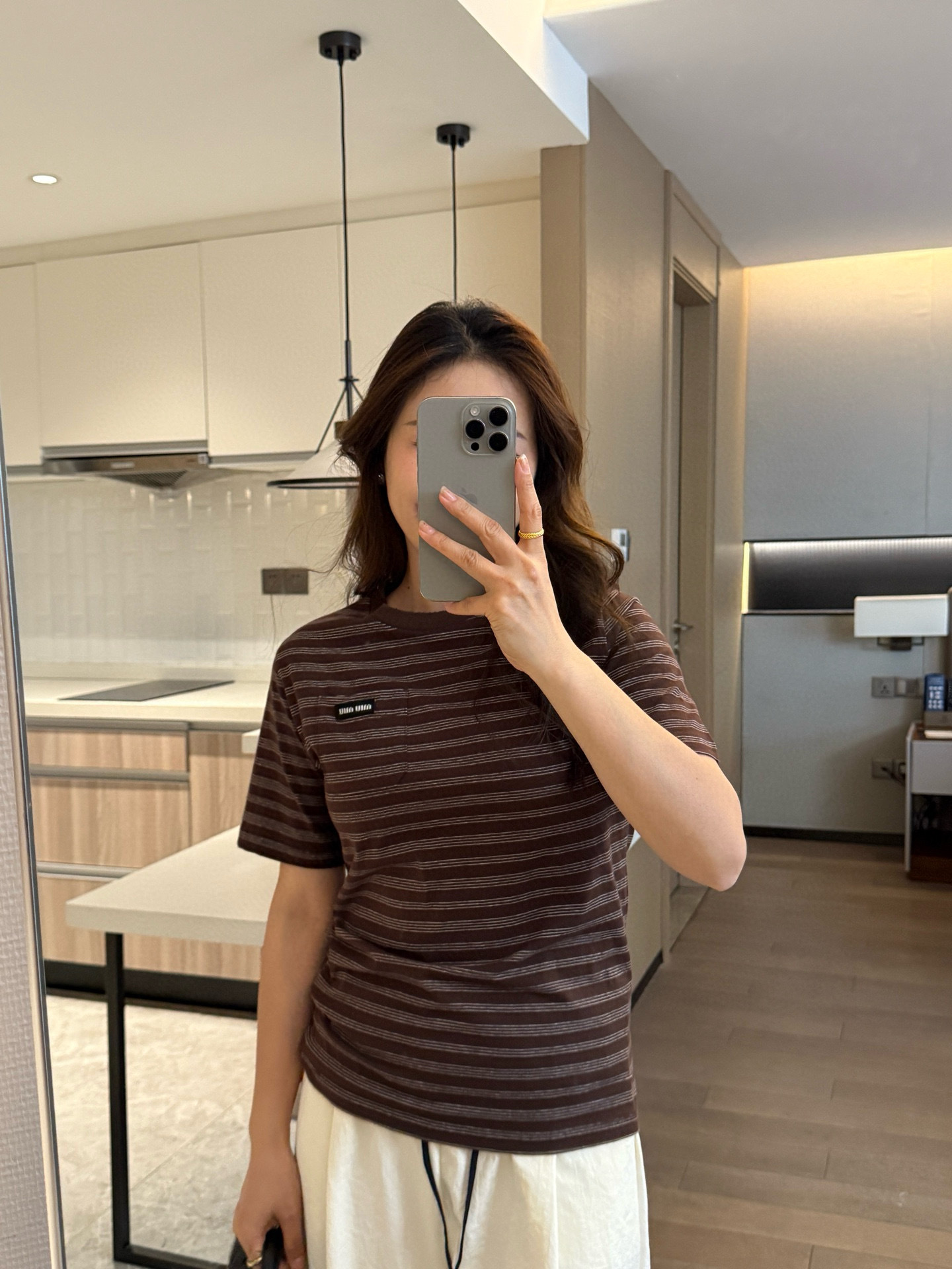 官方售价 7350!官网一模一样。经典的可可色遇上白色纤细的条纹,复古耐看又很气场!高品T,一定要自留。
