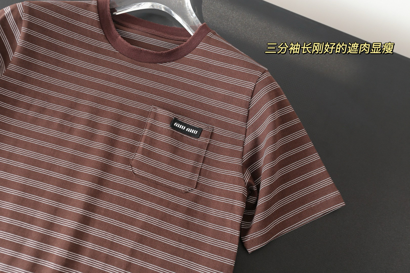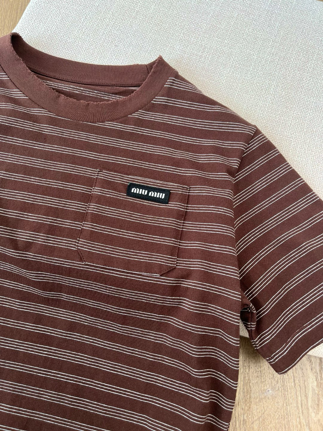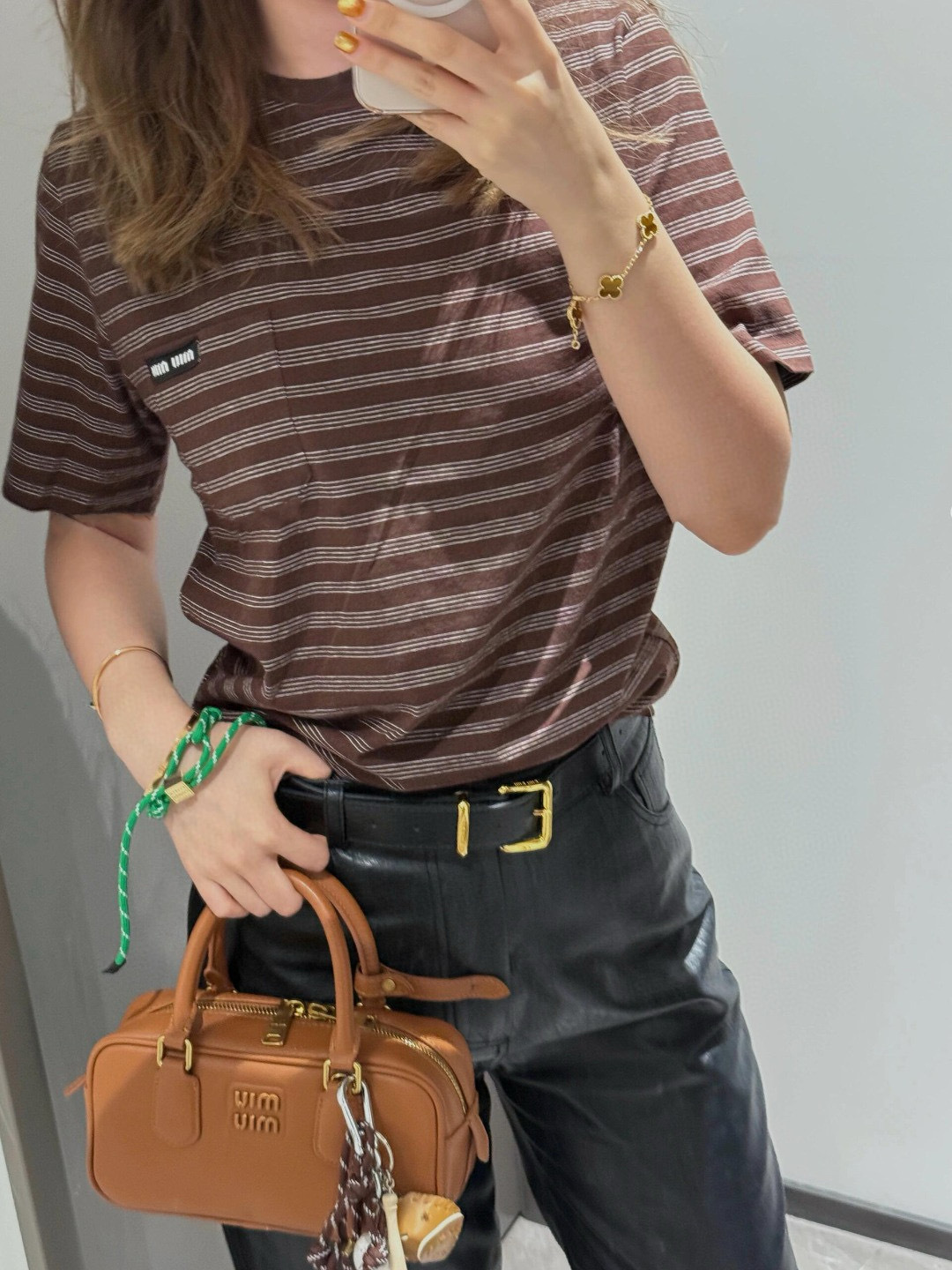 官方售价 7350!官网一模一样。经典的可可色遇上白色纤细的条纹,复古耐看又很气场!高品T,一定要自留。