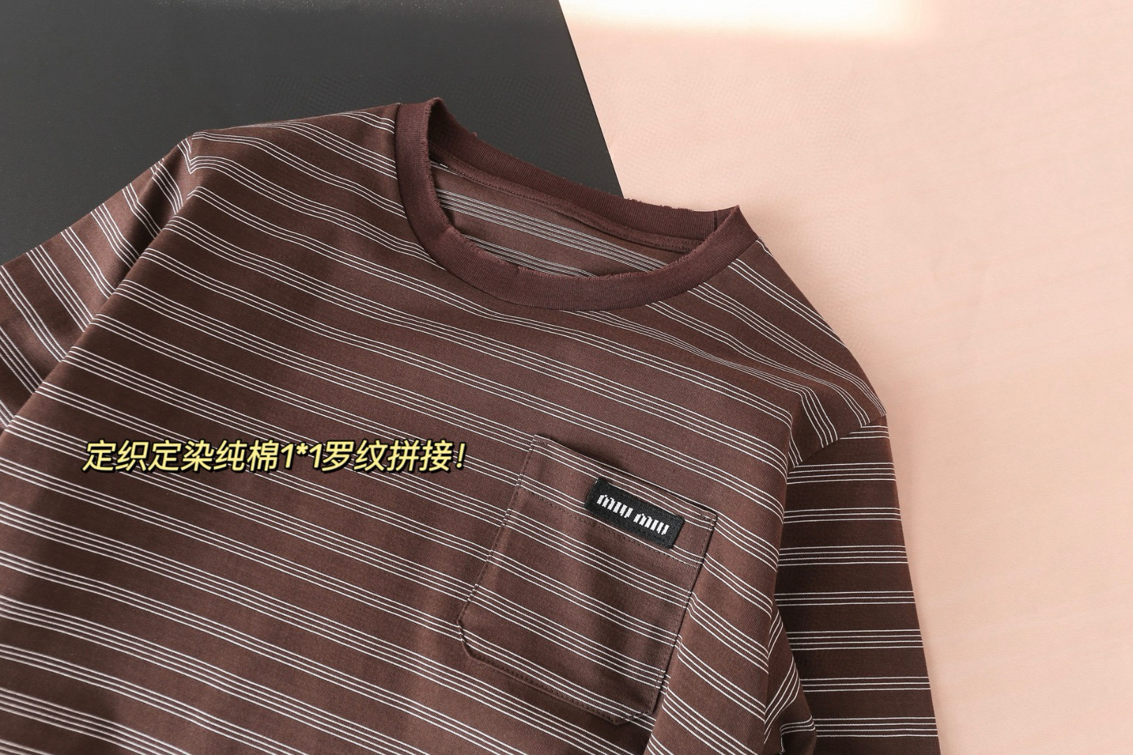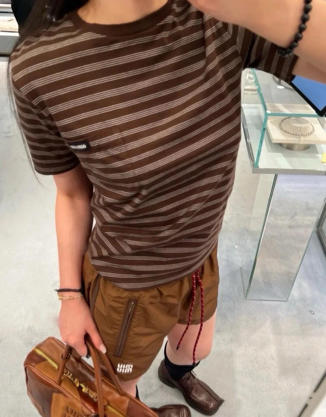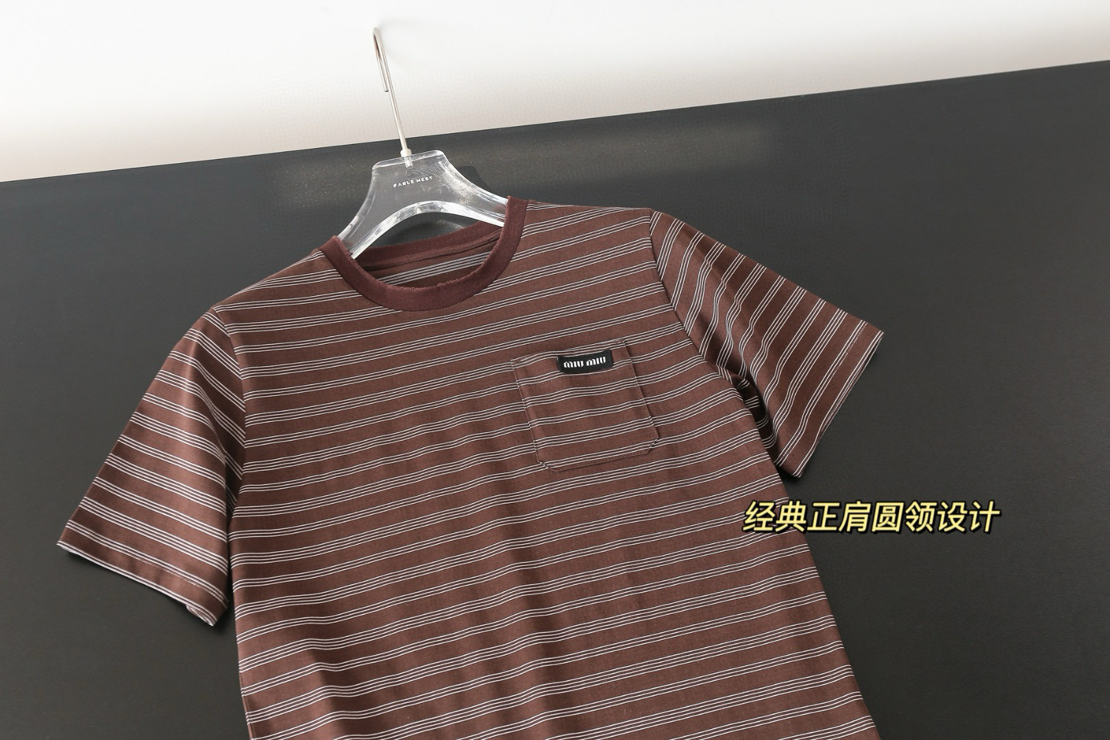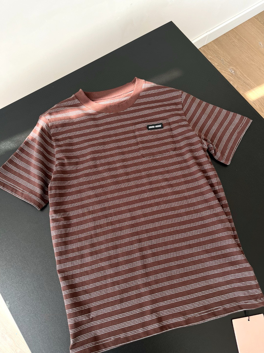 官方售价 7350!官网一模一样。经典的可可色遇上白色纤细的条纹,复古耐看又很气场!高品T,一定要自留。