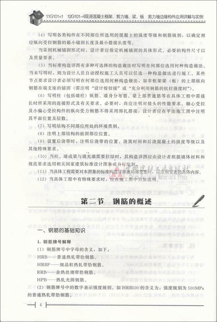 《11G101-1、12G101-4 现浇混凝土框架、剪力墙、梁、板、剪力墙边缘构件应用详解与实例》一书根据11G101-1、12G101-4系列图集进行编写,对其中的内容进行讲解,并穿插识图实例进行强化,内容具体、全面,对学习、应用11G101-1、12G101-4系列图集提供了参考,可供设计人员、施工技术人员、工程造价人员以及相关专业的大中专师生学习参考。