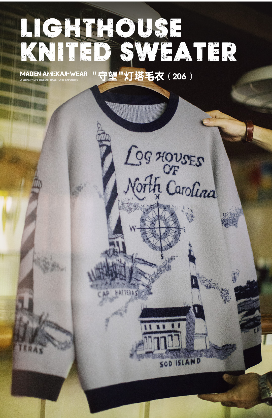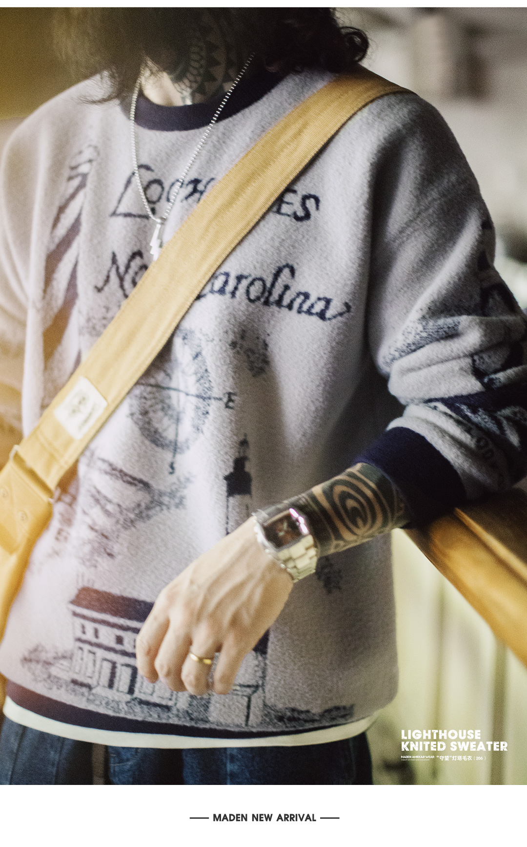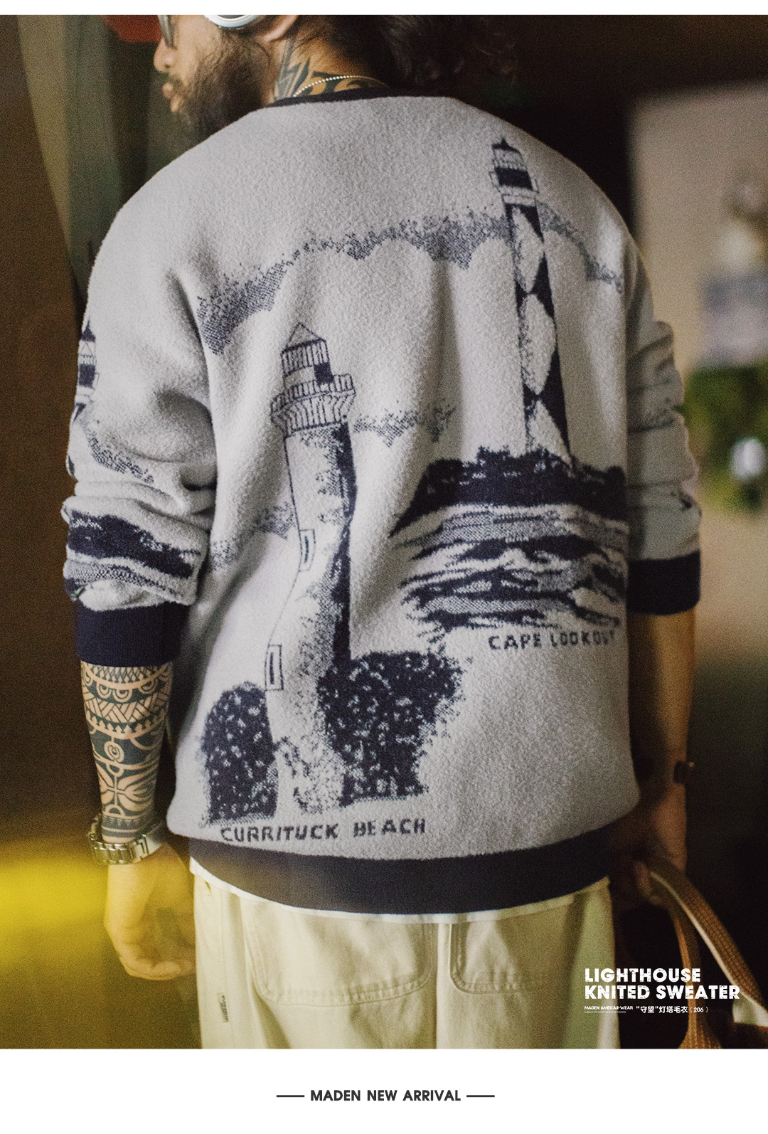 马登工装美式复古刺绣撞色毛衣保暖撞色外穿螺纹领口针织衫男秋冬