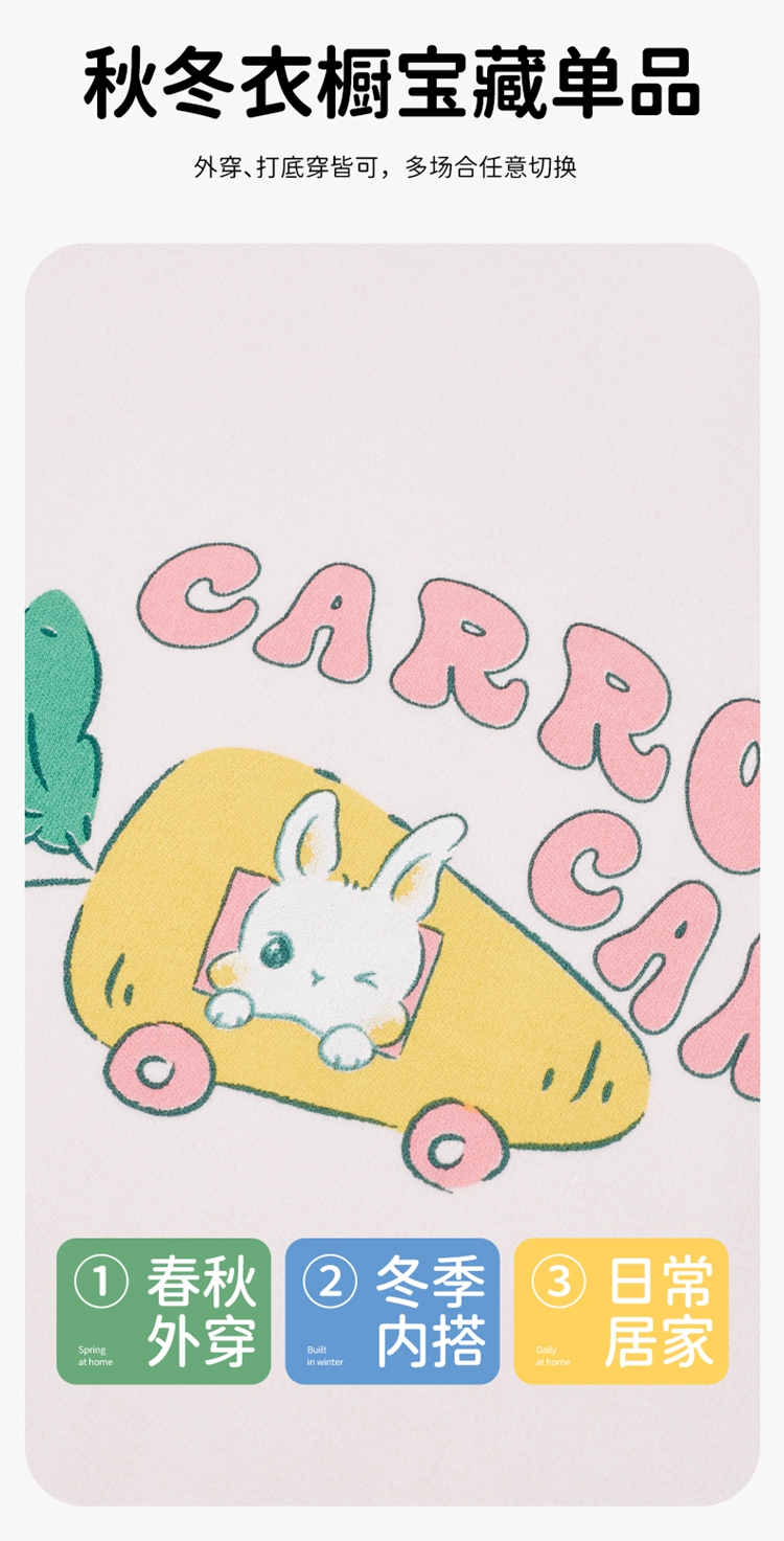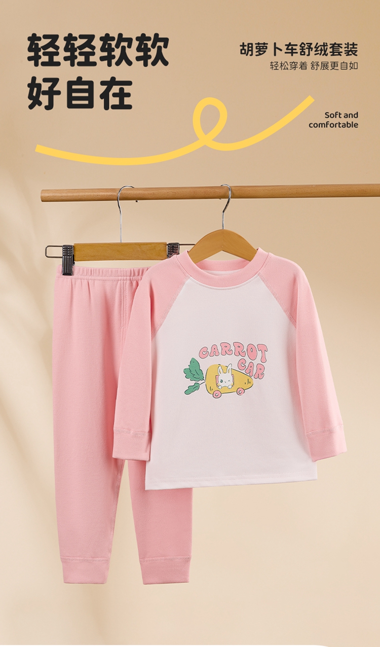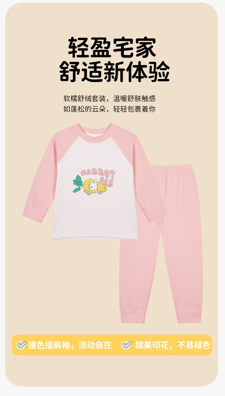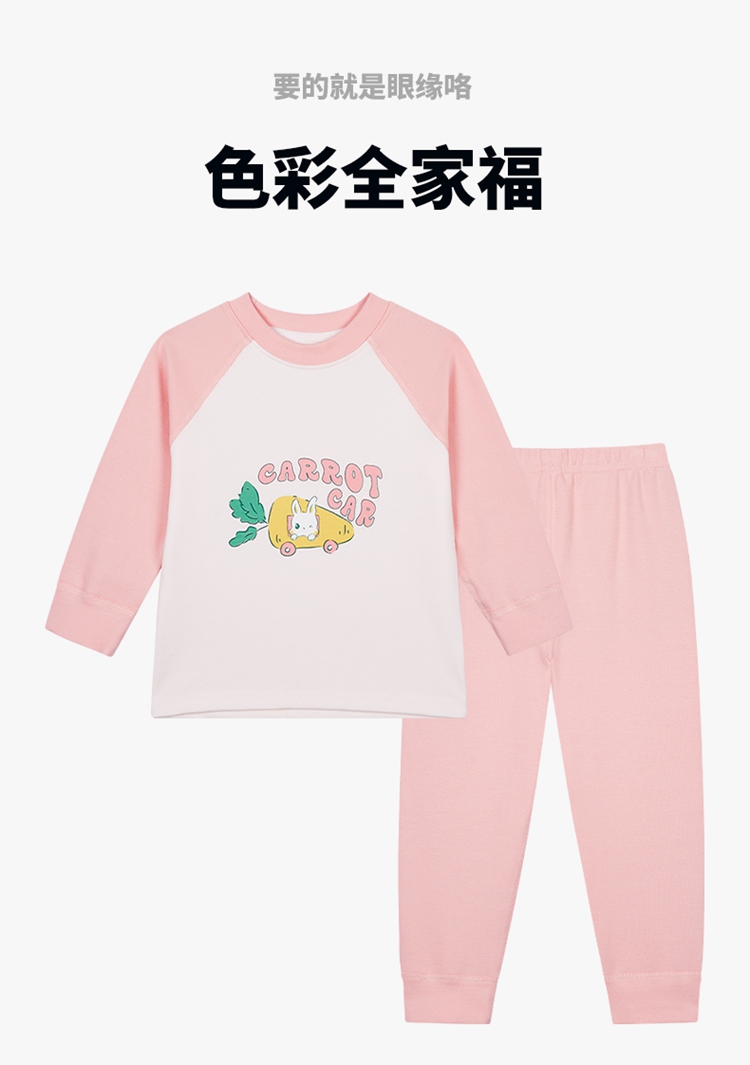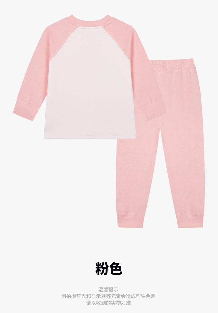贝贝怡卡通插肩袖套装女童保暖内衣秋冬儿童睡衣秋衣秋裤套装ZB3DT032
